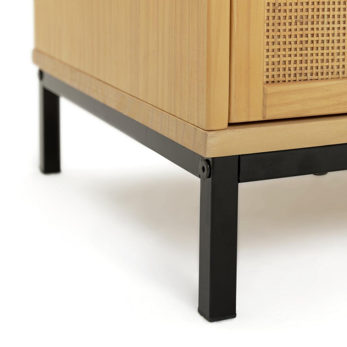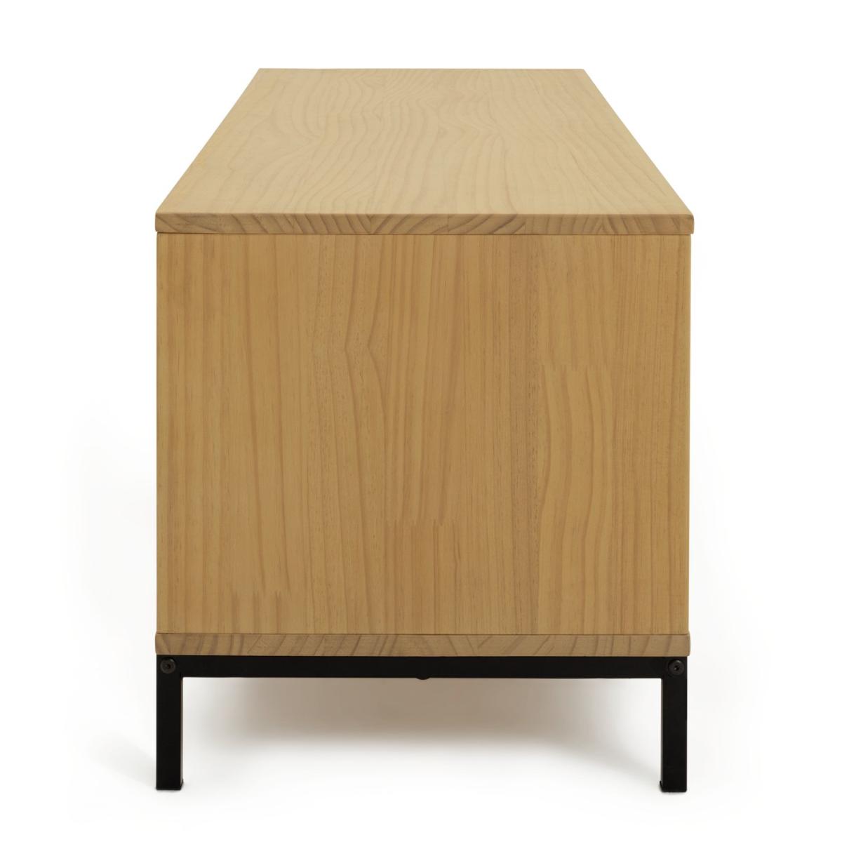 I love this pine TV unit for its clean, timeless design and versatility. It works particularly well in contemporary, Scandinavian, or even boho interiors where natural materials and understated elegance are key. The warm pine finish offers a cosy feel, while the black metal legs add a modern touch. Practical styling tips include using the open shelves for media devices or decorative baskets, and the sliding doors are perfect for hiding away clutter. Pair it with soft textiles, green plants, or textured accessories to create a relaxed, inviting space. Its neutral tone makes it a flexible piece that can adapt easily to various colour schemes and decorating styles.