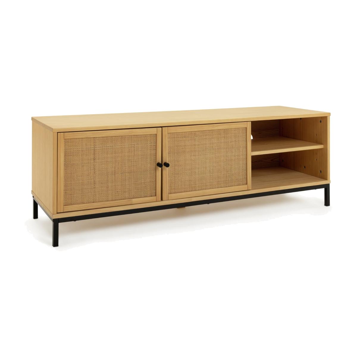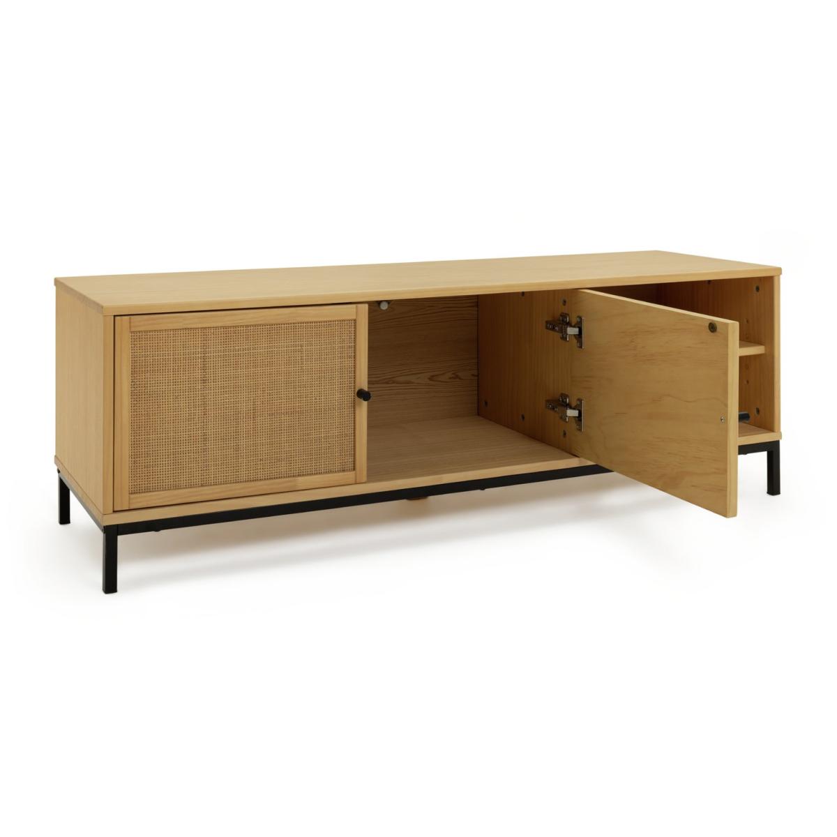 Meet Elaina, a functional TV unit where industrial design meets boho resulting in fantastic and timeless style. A warm oak coloured living room piece that houses all your media needs. Designed with 2 open shelves and cable access apertures to house all entertainment essentials. Install, put your feet up and switch on. You're ready for a fun night in.