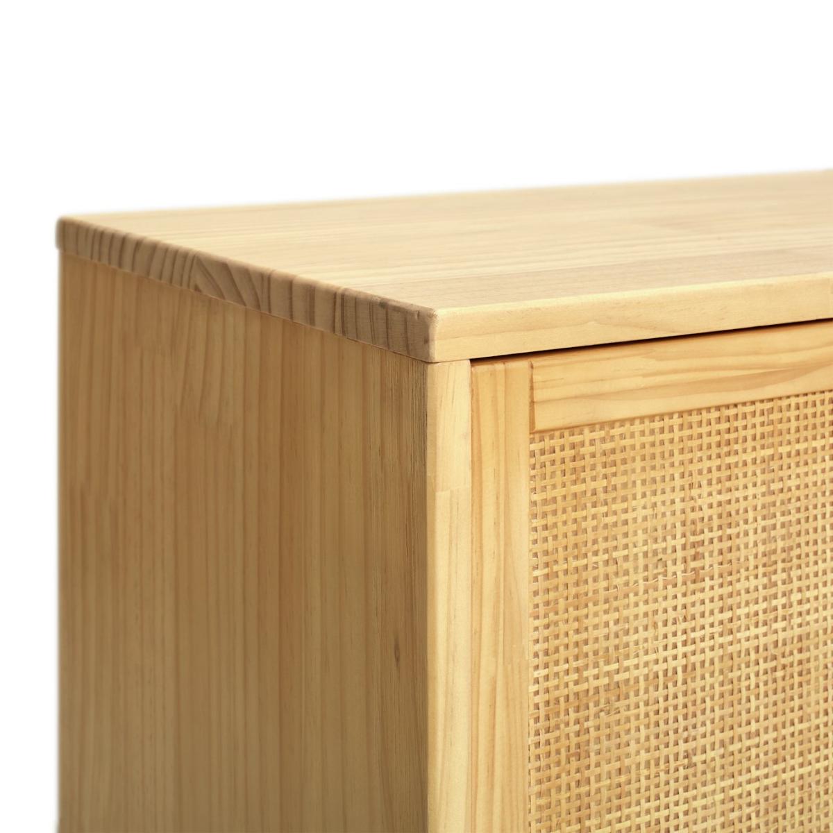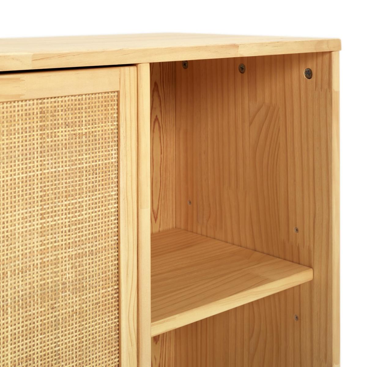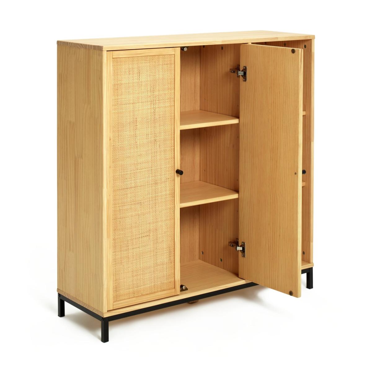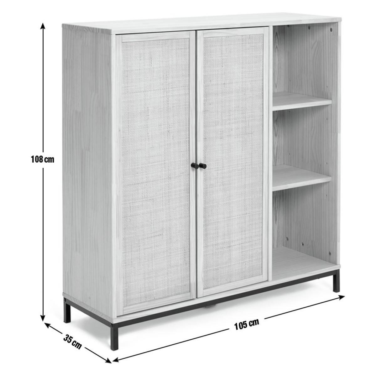 Want an eye-catching bookcase to give you storage and get you compliments? Well, meet Elaina. Industrial design meets boho, resulting in a fantastic and timeless style. This warm oak-coloured living room piece has space for your own curated library. The rattan doors open to reveal 4 adjustable shelves for all your books. The open shelves provide more book space, or an excuse to show off photos, ceramics, or a plant or two.