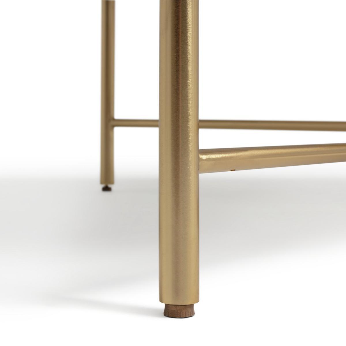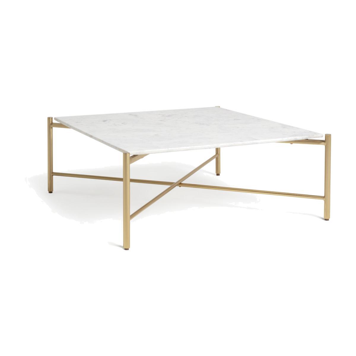 I love this coffee table because of its sleek, modern take on natural materials-combining a solid marble top with brass accents creates a sophisticated look that works well in both contemporary and transitional interiors. It’s particularly effective in minimalist or luxe-style rooms where the marble and brass make a statement without overpowering the space. For styling tips, consider layering with books, a small plant, or decorative objects that pick up on the brass detail to add warmth and personality. Due to its sturdy marble surface, it’s best suited for low-traffic areas or spaces where you can incorporate gentle styling to protect the surface.