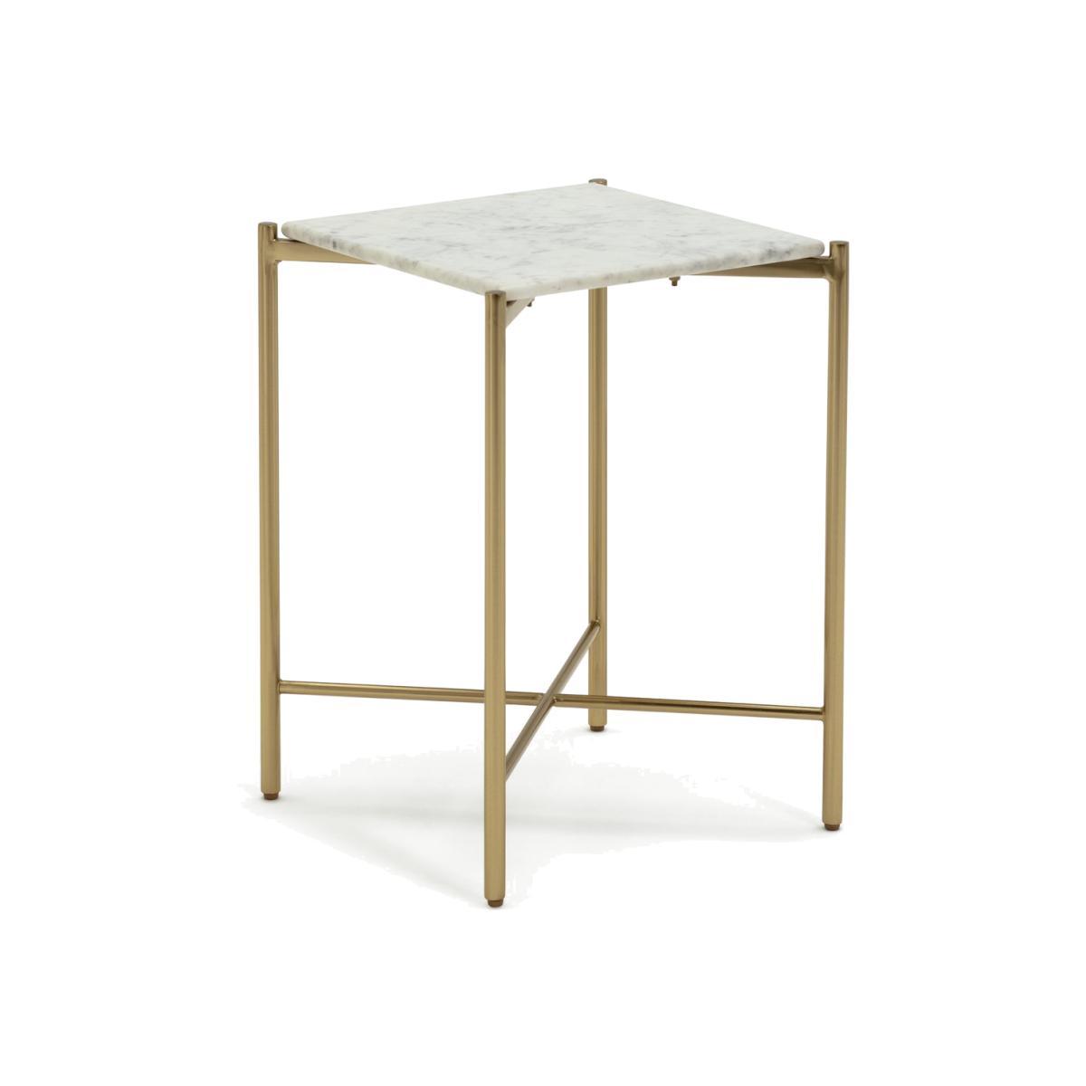 The Habitat Elba Solid Marble Side Table brings a touch of effortless elegance to spice up your space. The solid marble finish captures the natural beauty of the real thing, without the high maintenance. Combined with brass metal pipe legs, it has a modern up-cycled style that's bang on trend. Put it against a statement colour wall for an instant wow-factor. Or add a pop of glamour to a more classic neutral aesthetic. So stylish, so smooth.