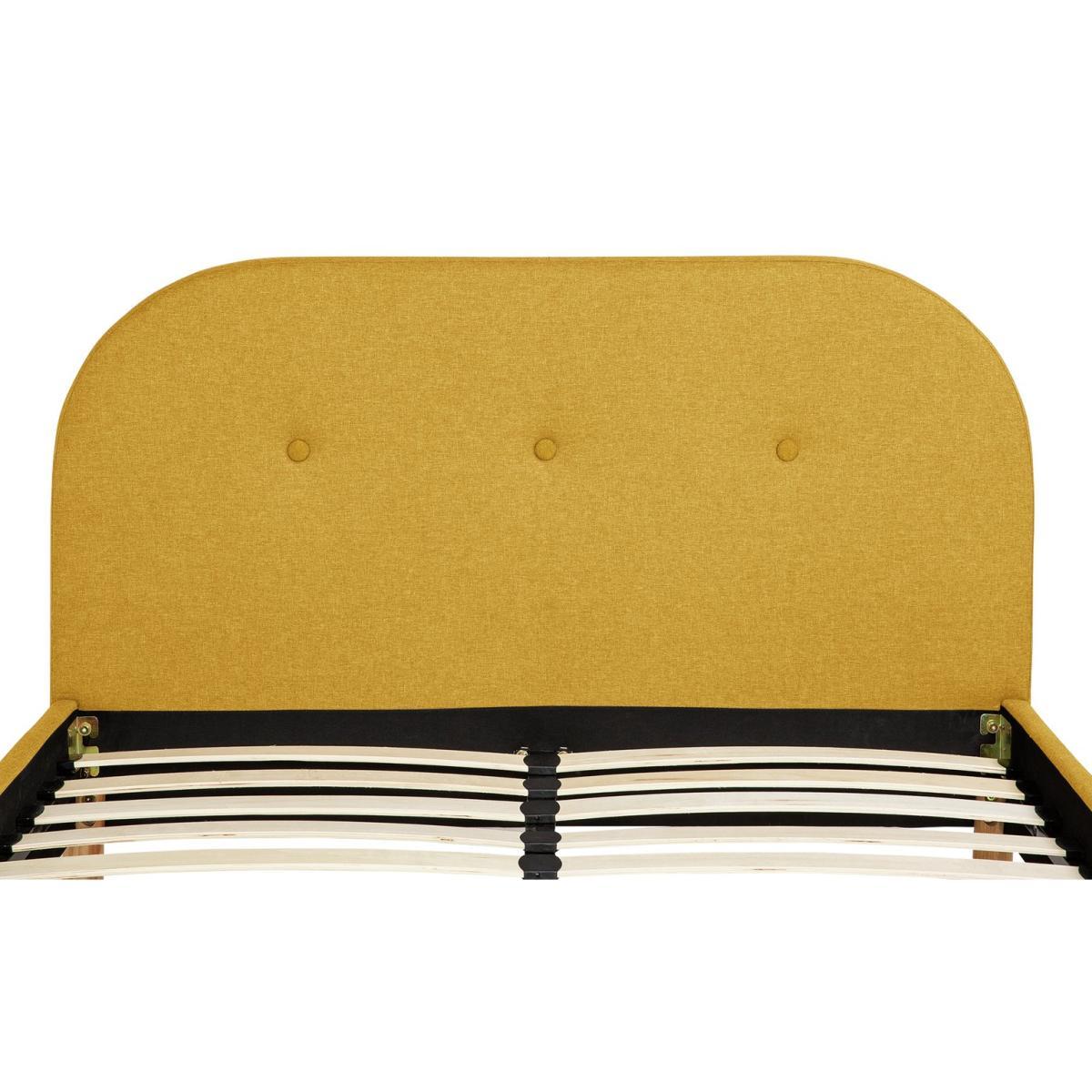 Instant refresh. In on-trend mustard, Elin instantly injects a fresh dose of cool your bedroom. The matching upholstered frame gives it a continuous look that also creates a sense of space. Ideal for small rooms and it's built to last. With its solid wood frame and wooden slats, Elin will be around for a while. Good thing, because you're about to fall in love.