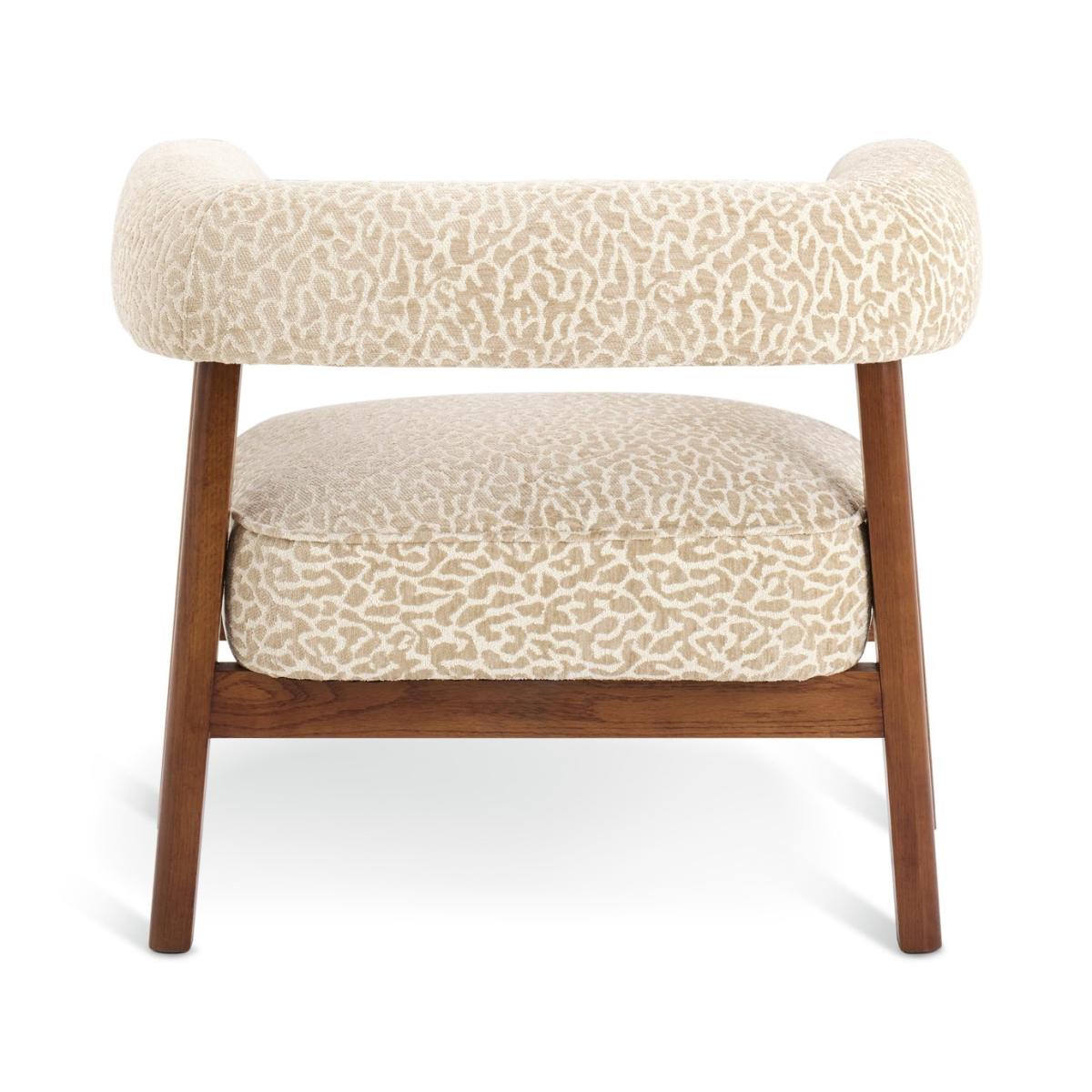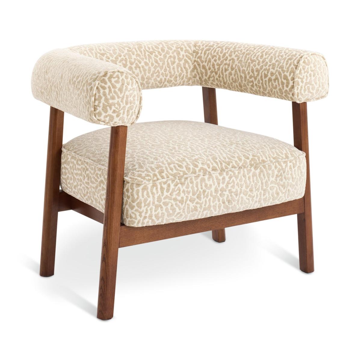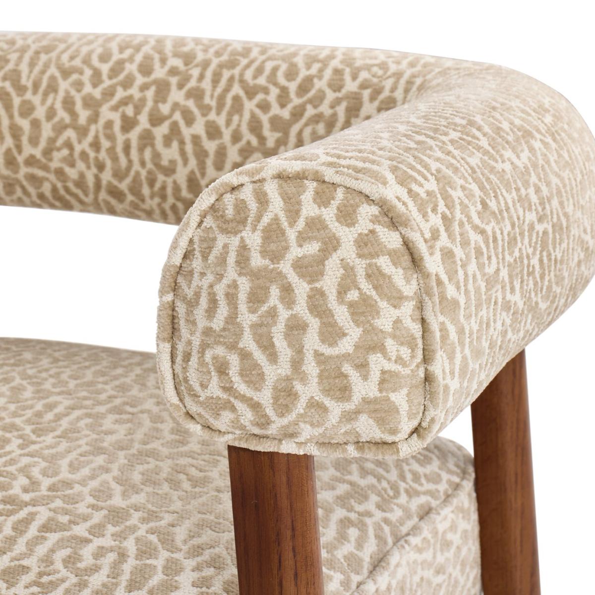 A new wild take on a classic mid-century design. Wrap around comfort and strong looks are the keynotes of this handsome armchair. The softly sweeping elevated cushioned back. The lightness of the leopard print woven fabric against the stained solid oak frame. Elio is freshly contemporary with its roots in retro. Part of the Elio collection. Material: Made from 100% polyester. Wooden feet. Fixed seat with foam filling. Fixed cushion(s) with foam filling. Dimensions: Size H67.5, W84, D63cm. Floor to seat height: 44cm. Depth of seat: 53cm. Width of seating area between arms: 66cm. Height of arm rest: 67cm. Weight: 20kg. Packaged dimensions: Package size H43, W85, D43cm. General information: Wipe clean or lightly vacuum. Self-assembly. Maximum individual user weight 130kg. Manufacturer's 2 Year (1 year fabric) guarantee.