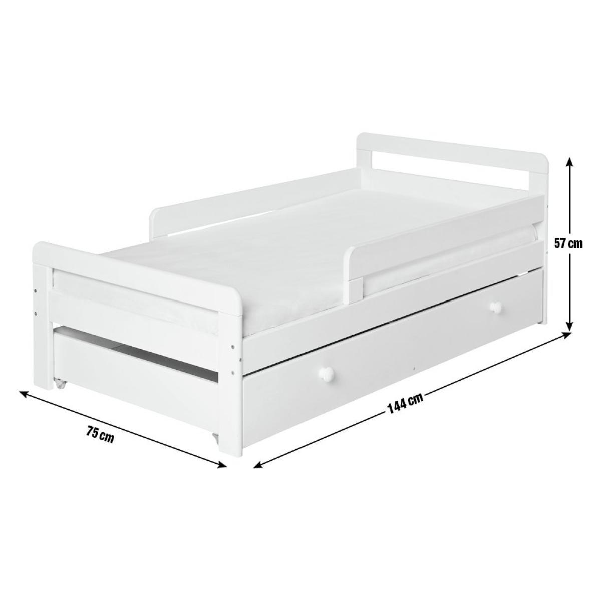 So, now's the time to make the move from cot to big bed? The Ellis toddler bed with storage is an ideal choice. With its extra long guard rails, your little one will sleep safely and securely, while still having that new "big" feeling of independence. Close to the floor they can climb into bed themselves. Made from solid wood, the Ellis toddler bed is sturdy and easy to build.