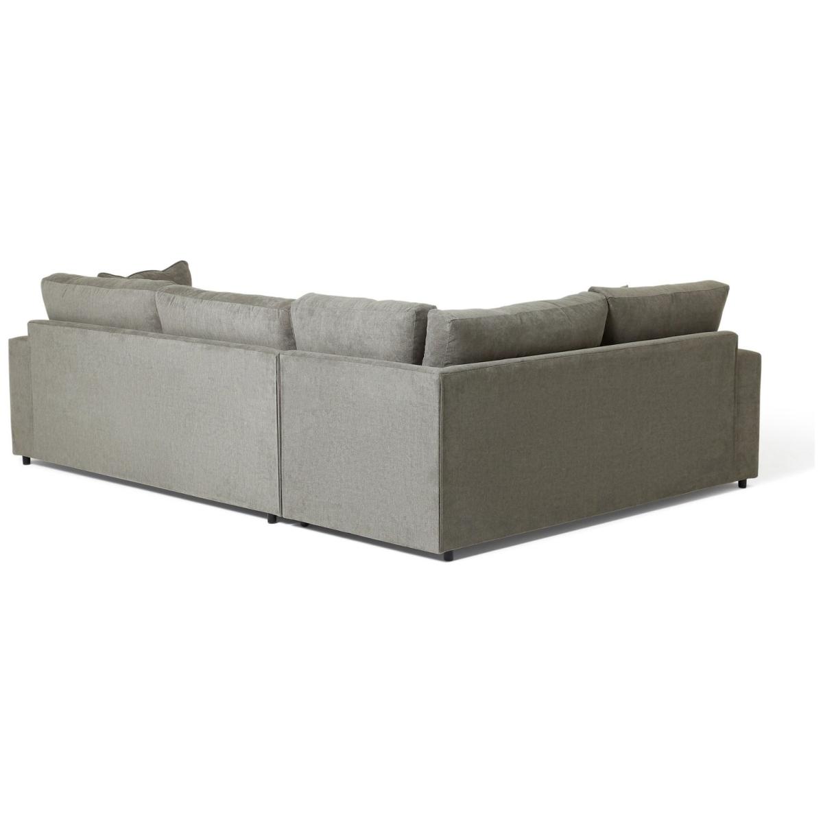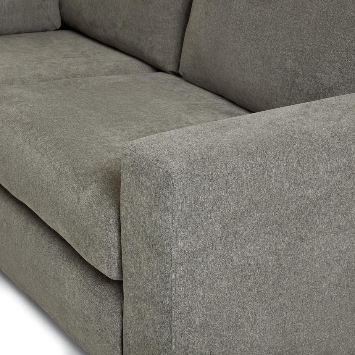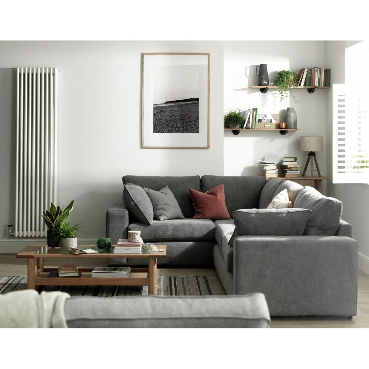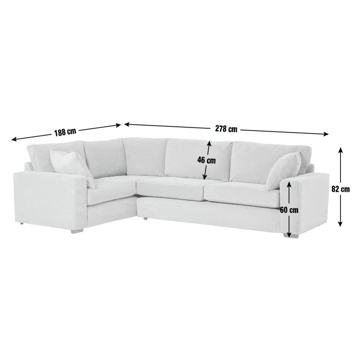 Climb on, cuddle up and chill out. Comfort and style get equal attention on our beautiful grey corner sofa. Boasting generous wide arms, removable foam-filled cushions and a streamlined design, this attractive sofa brings a contemporary flair to your space. Finished off with scatter cushions and solid wood feet, it's simple yet irresistible. Part of the Elmdon collection. Left hand corner. Material: Flat weave fabric - 100% polyester. Wooden and plastic feet. Medium firm seat cushions. Removable seats with foam and fibre filling. Removable cushion(s) with fibre filling. Free fabric swatch available on this line. Dimensions: Size H82, longer width 278, shorter width 188,. Floor to seat height: 45cm. Depth of seat: 53cm. Height of seat back: 46cm. Shorter seating area width between arms: 168cm. Longer seating area width between arms: 226cm. Height of arm rest: 60cm. Overall weight 86kg. Professional clean only. Plump cushions regularly to maintain shape. Minimal assembly - just add feet. Maximum individual user weight 110kg. Packaged dimensions: Package size H65, W196, D88cm. Second package size H65, W192, D88cm. General information: Manufacturer's 2 year guarantee. FSC certified meaning the materials used for this product are responsibly sourced.
