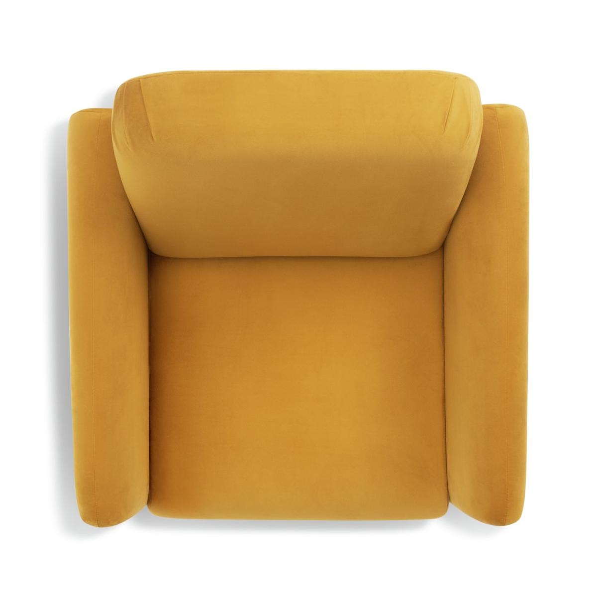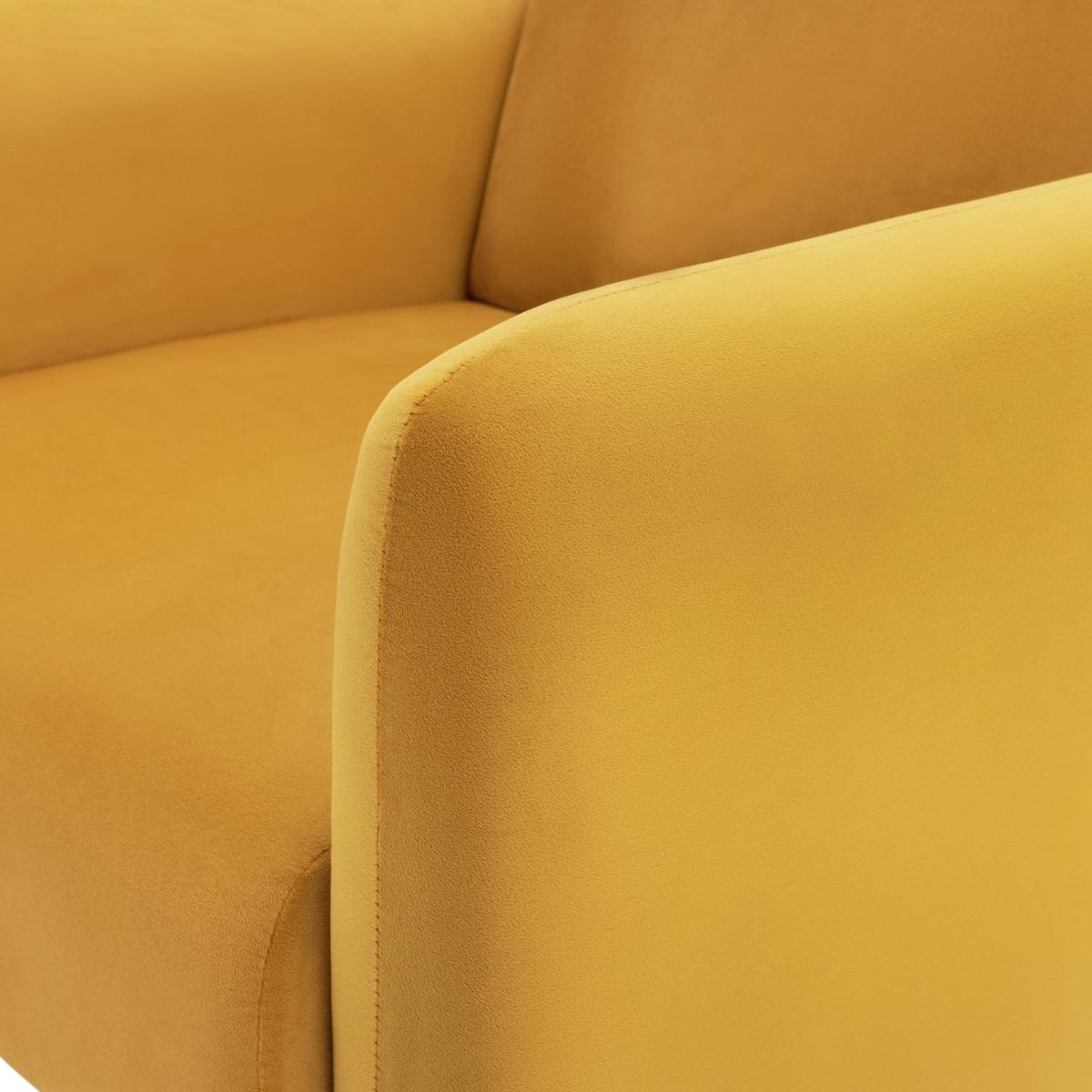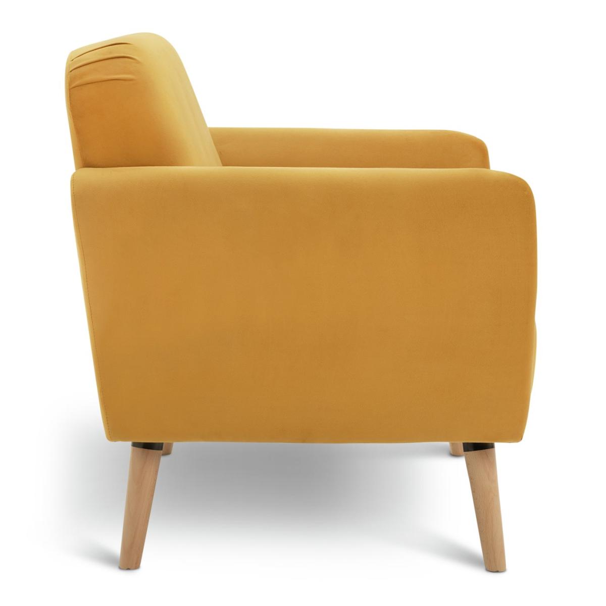 Elsie is the total package when it comes to Scandi-style comfort. A deep cushioned seat, plump padded back and armrests. Splayed wooden legs complete the look. Upholstered in a warm mustard velvet, it adds a pop of contemporary colour to a room. And this chair arrives in one box. So that's easy. Part of the Elsie collection. Material: Made from 100% polyester. Wooden feet. Fixed seat with foam fibre wrap filling. Fixed cushion(s) with foam fibre wrap filling. Free fabric swatch available on this line. Dimensions: Size H80, W76, D72cm. Floor to seat height: 44cm. Depth of seat: 48cm. Height of seat back: 36cm. Width of seating area between arms: 76cm. Weight 44kg. Professional clean only. Plump cushions regularly to maintain shape. Self-assembly. Maximum individual user weight 120kg. Packaged dimensions: Package size H44, W77, D72cm. FSC certified meaning the materials used for this product are responsibly sourced. General information: We are excited to be welcoming some of our favourite HOME products into the Habitat range. Your product may arrive in Habitat or HOME packaging. Manufacturer's 2 year guarantee.