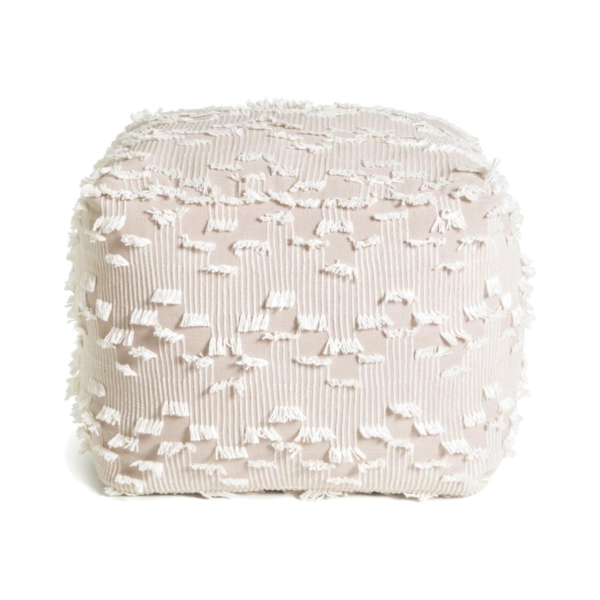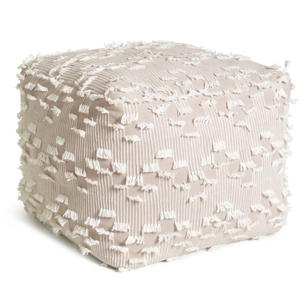 I love this pouffe for its textured, embroidered detailing, which adds subtle interest without overwhelming a space. It works particularly well in Mediterranean-inspired or boho interiors, where natural materials and earthy tones dominate, but it can also provide a fresh contrast in more contemporary settings. Practical styling tips include using it as a versatile footrest or extra seating in the living room, or even as a side table by topping it with a tray. Its neutral colour makes it easy to incorporate into various colour schemes, and its chunky, embroidered design lends a relaxed, tactile quality that elevates even casual spaces.