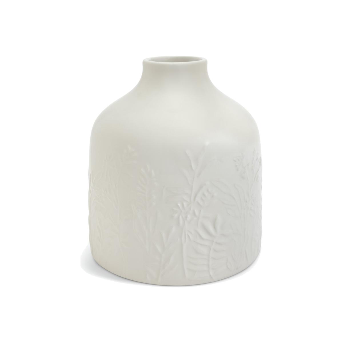 Our curvaceous ceramic vase is a picture of calm elegance. Handmade in Portugal, it's subtly embossed with ferns and flowers for a tactile, opulent finish. Dress with a few springs of foliage or let it shine solo. Size H22.5, W18, D18cm. Diameter 35cm.