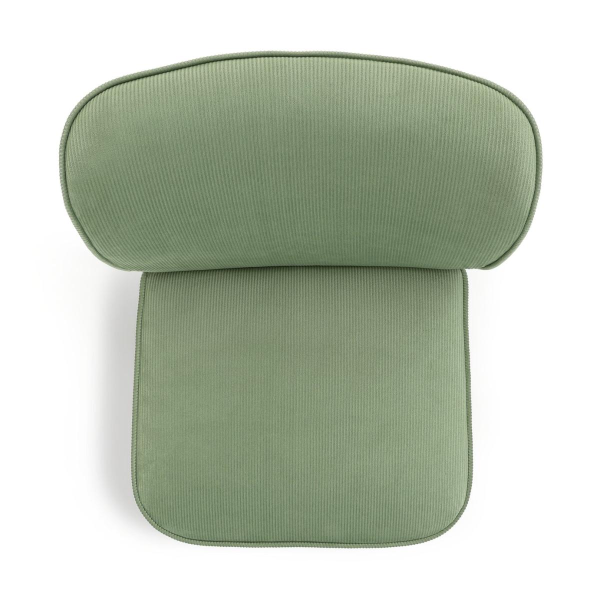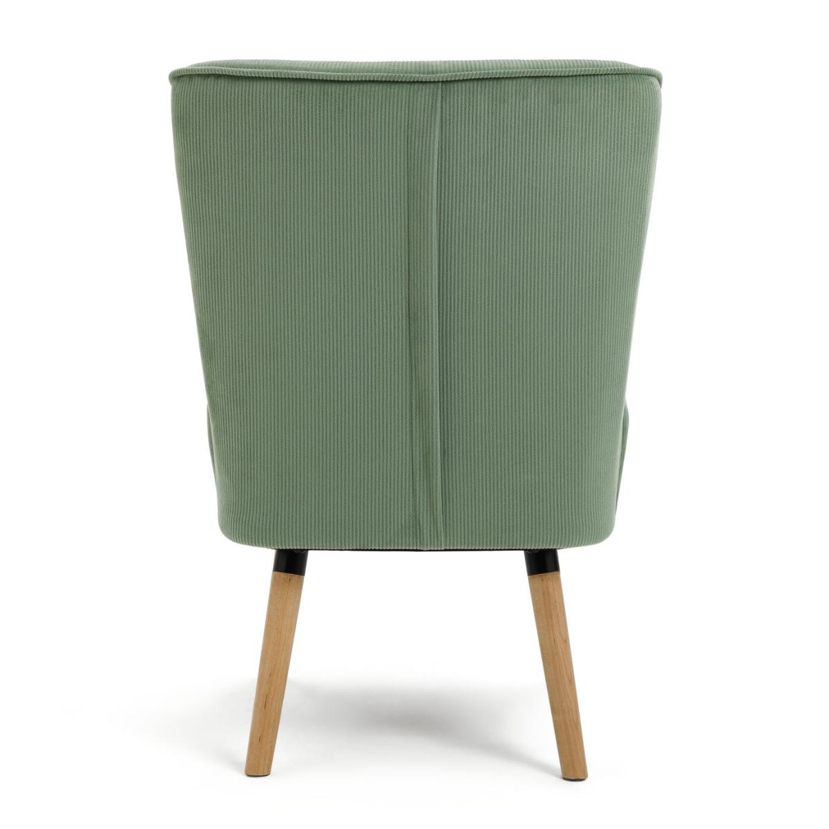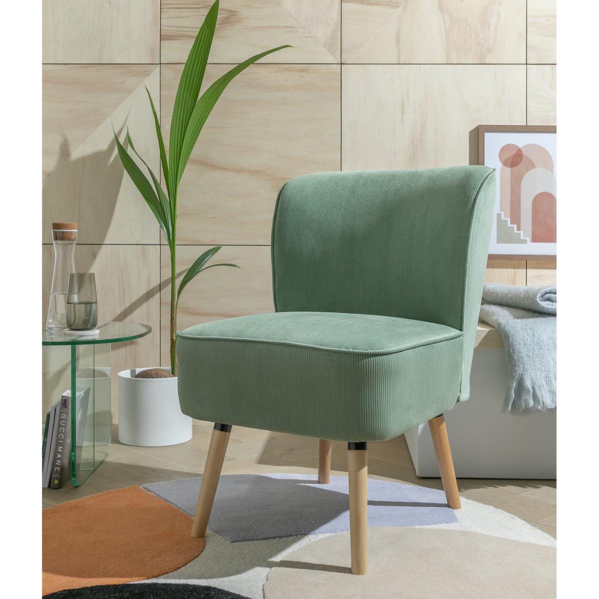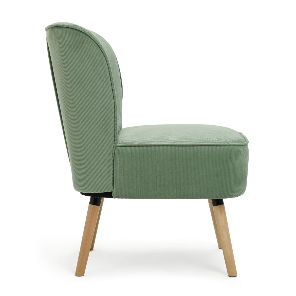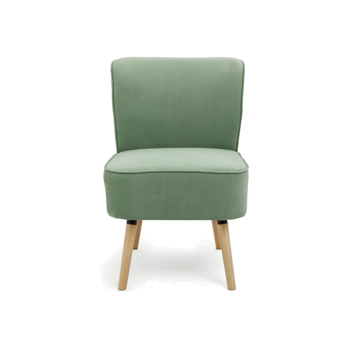 Cool, contemporary and compact. Lovely little Eppy is known for its good looks and high comfort. Accent piece or reading chair, it's a winner in any room. The deep cushioned seat and curvy padded back are upholstered in a mint green fabric. Piping detail and splayed 2-tone wooden legs add to its appeal. Can't decide where to show off Eppy? It's light enough to move around, so share the love.