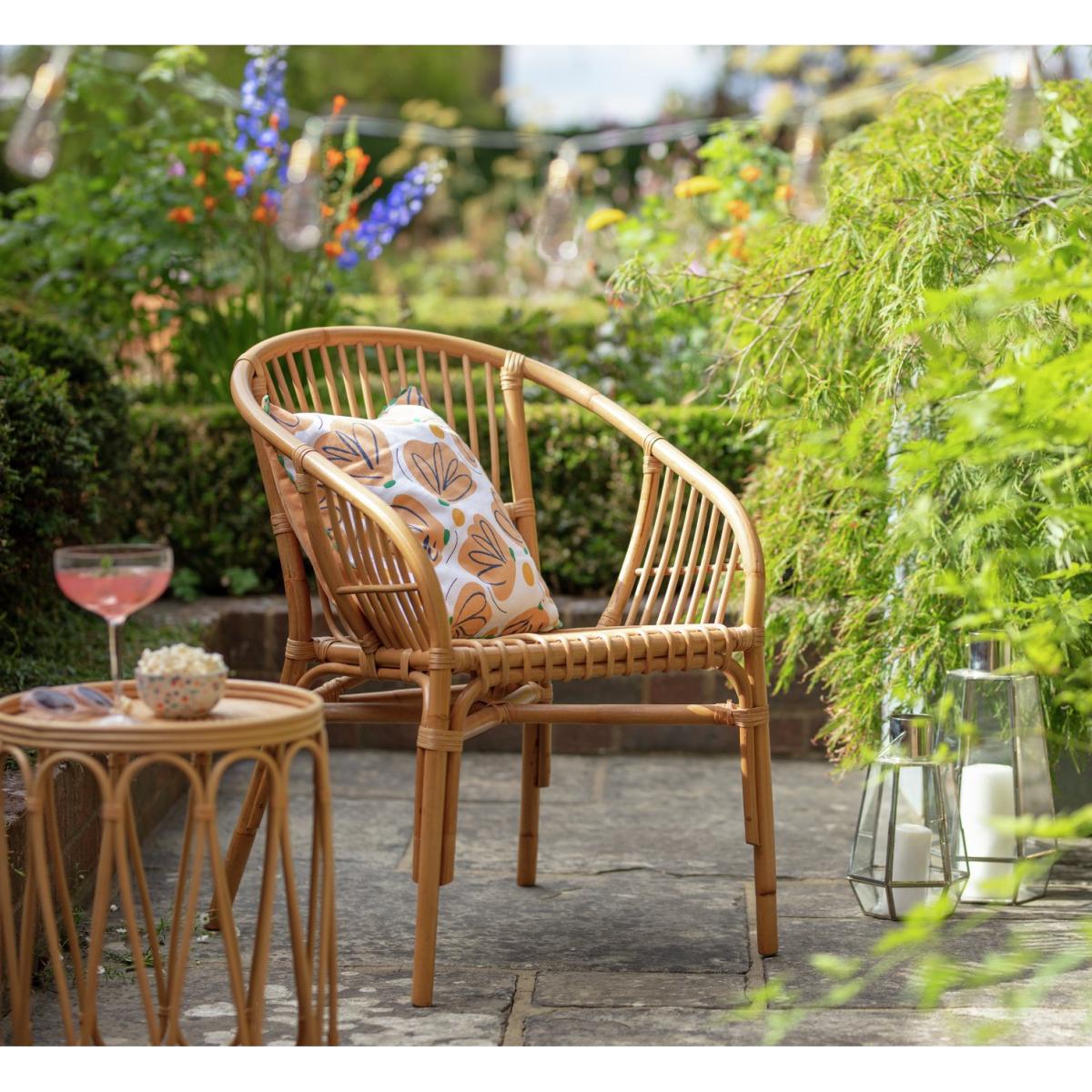 I love this garden chair’s natural rattan effect, which makes it a versatile choice for both contemporary and traditional outdoor settings. Its airy, rounded silhouette and neutral tone work well in relaxed, coastal-inspired gardens or covered patios with a neutral colour palette. It’s a great option for layering with cushions or throws to add comfort and a personalised touch. Practical styling tips include pairing it with a small side table for outdoor tea or a cosy corner with other rattan or wooden furniture to create an inviting outdoor lounge. Its natural finish means it also integrates effortlessly into indoor or semi-indoor spaces, like sunrooms or conservatories, offering a seamless transition from inside to outside.