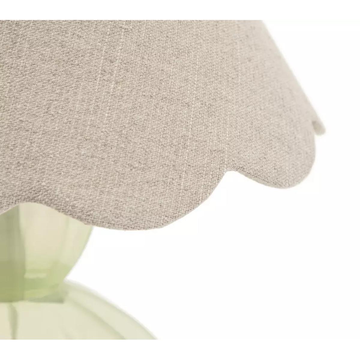 Lights out. Retro on. With its distinctive curvy silhouette, our Estella table lamp is every bit the beauty. Crafted from glorious green glass, it adds character to any bedside table. And the linen scalloped shade is cute as can be. A match made in heaven.