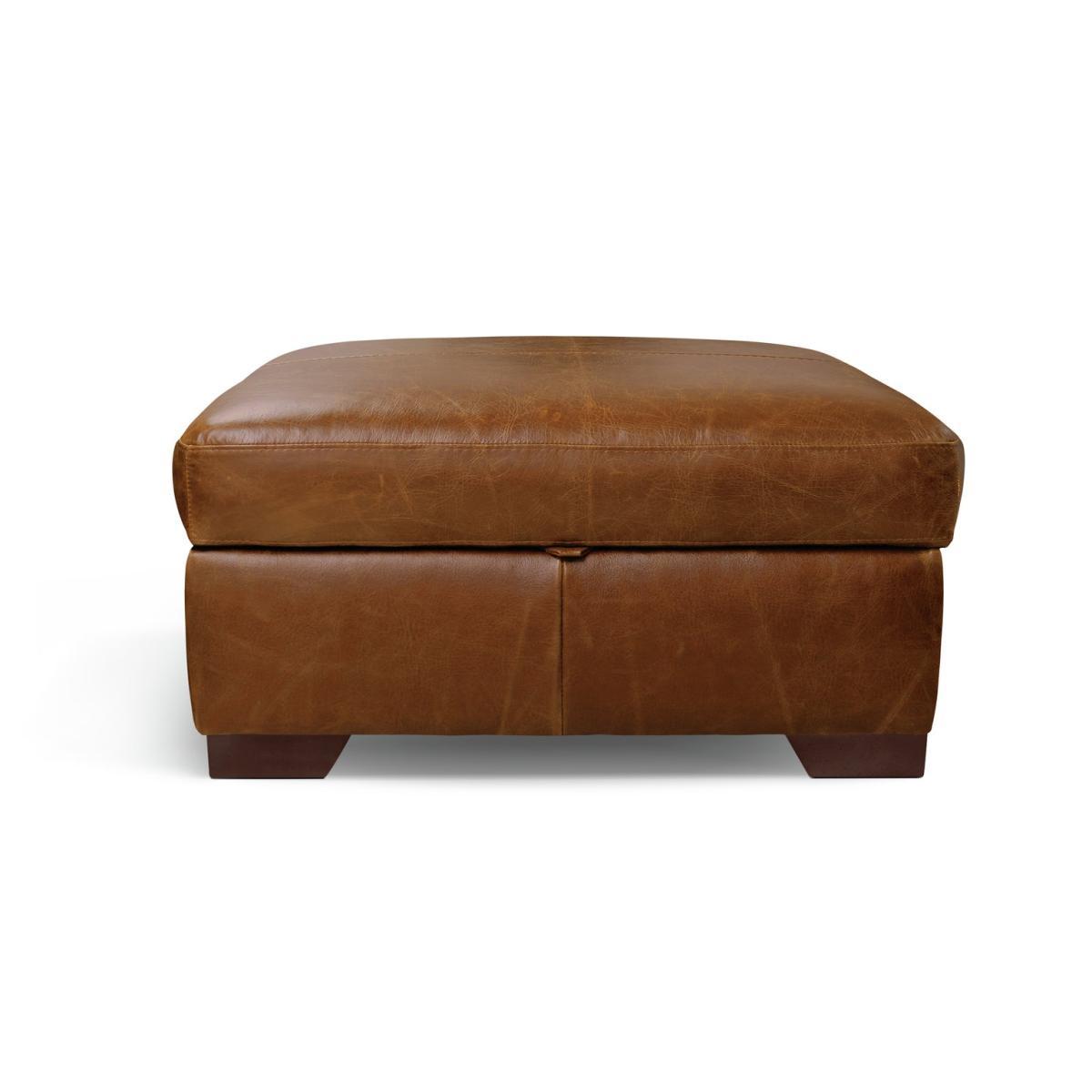 Contemporary character. The Habitat Eton leather footstool brings subtle style and sophistication to your living space. Useful as an extra seat or to put your feet up, this versatile piece also provides handy storage space. Simply open the top to store magazines, spare cushions and family board games. A multifunctional marvel.