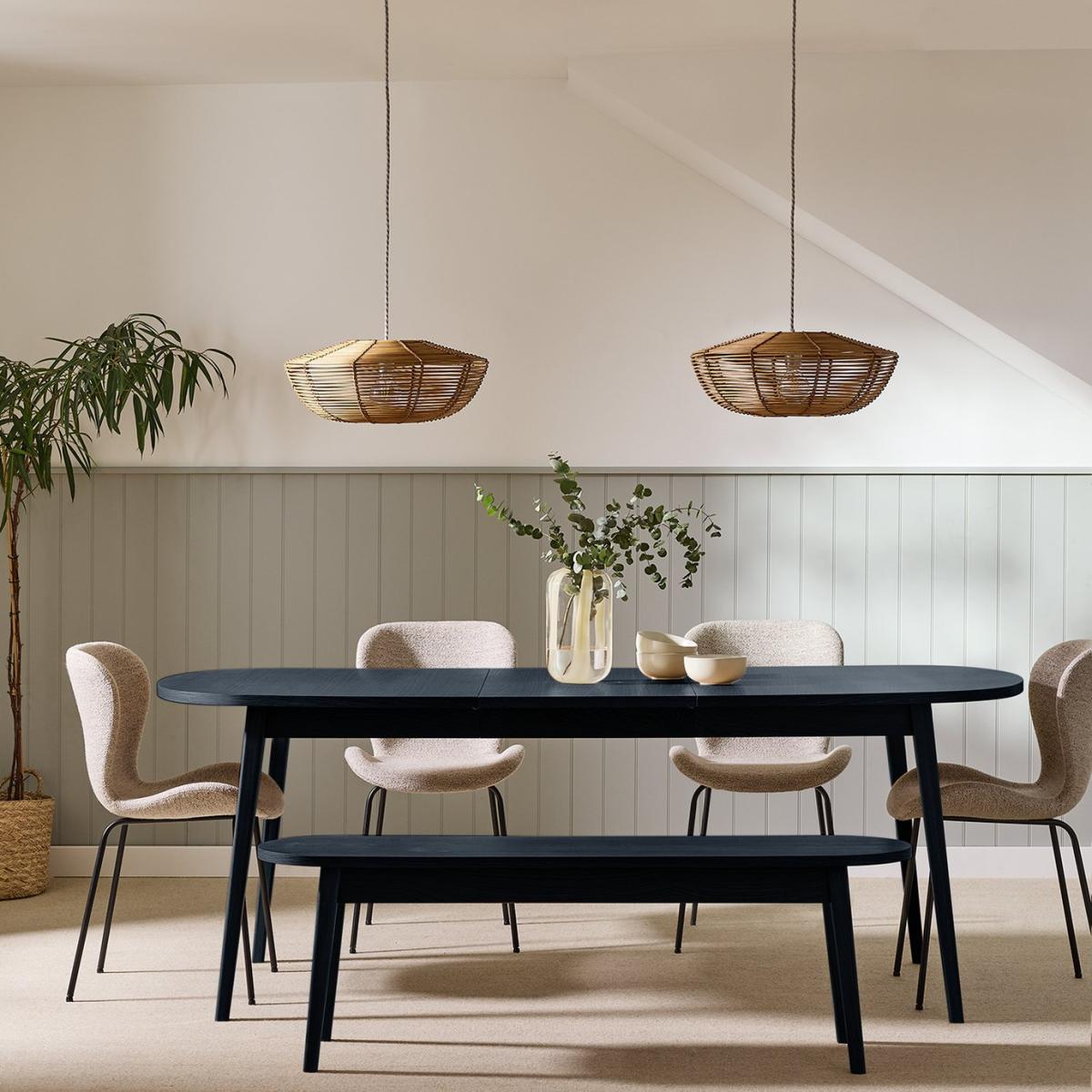 The Etta 6-8 seater extending dining table has a gently rounded, veneered top and elegant, tapered legs in solid oak. A compact, slightly feminine design, the Etta table is perfect for smaller living spaces and has a simple extension mechanism. Exclusive to Habitat, the Etta table is made in Estonia and has a matte lacquer finish to protect its surface. Part of the Etta collection. Table: Table size: H75, L160, W90cm. Internal size between table legs L151, W58cm. Size of table extended: L215cm. Integral table extension. Removable table extension. Centre leaf extension type. Real wood veneer table with solid wood legs. Wood veneer table top finish. Self-assembly - 2 people recommended. Weight of table 58kg. Package Dimensions: Table packaging size: H12.5, W170.5, D101cm. General information: Manufacturer's 1 year guarantee.