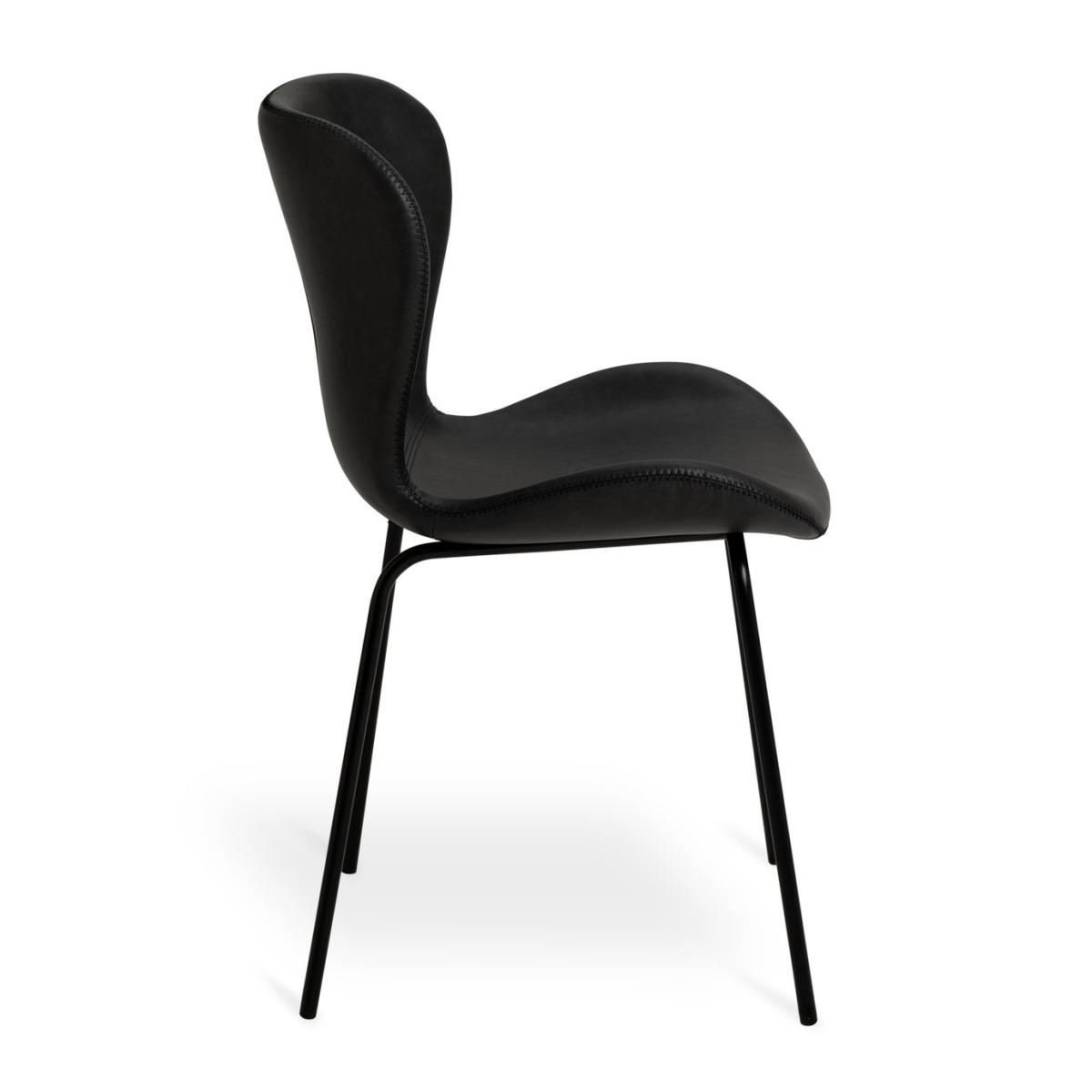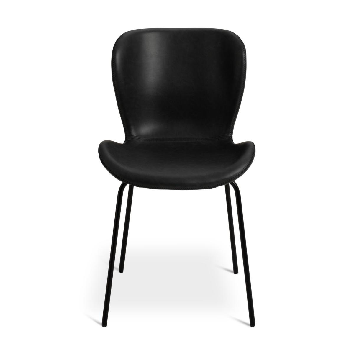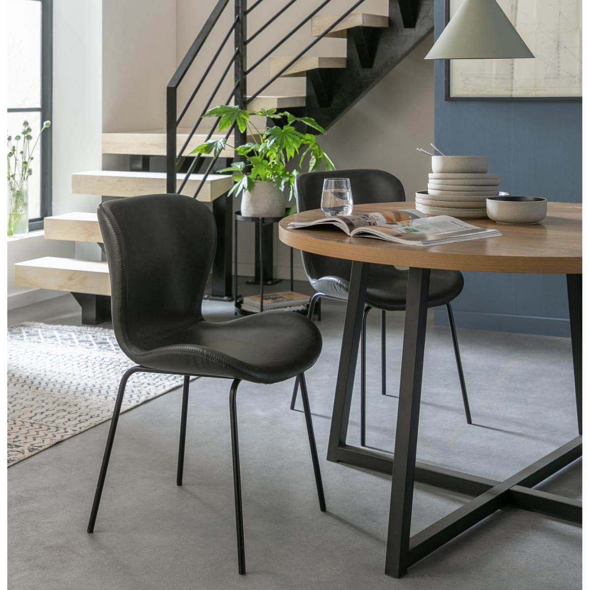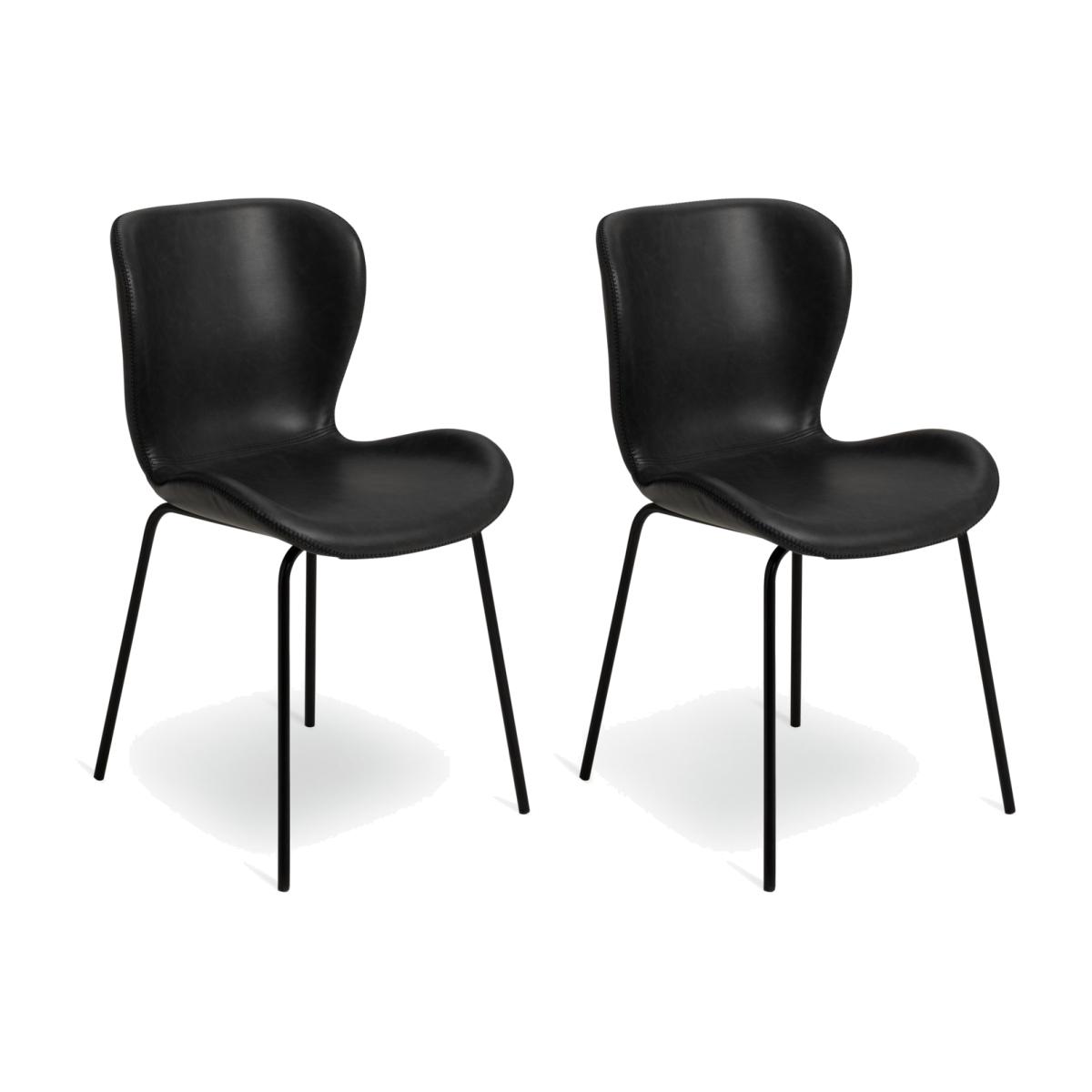Perfectly curved. That's our pair of Etta chairs. With gently scooped backs and shapely seats, this design is made for pleasurable dining. Upholstered in black faux leather with black legs, you've got the perfect mix of comfort and style. Change up your dining room looks. Pop a set of Etta chairs around the table. Magic. Part of the Etta collection. Chair: 2 chairs supplied. Size H82.5, W48, D55cm. Seat height 46.5cm. Metal frame with metal legs. Faux leather seat pad. Self-assembly - 2 people recommended. Max user weight per chair 110kg. Individual chair weight 10.7kg. Wipe clean or lightly vacuum. Package Dimensions: Chair package size: H52, W67, D49cm. General information: We are excited to be welcoming some of our favourite HOME products into the Habitat range. Your product may arrive in Habitat or HOME packaging. Manufacturer's 2 year guarantee.