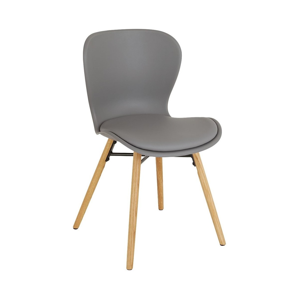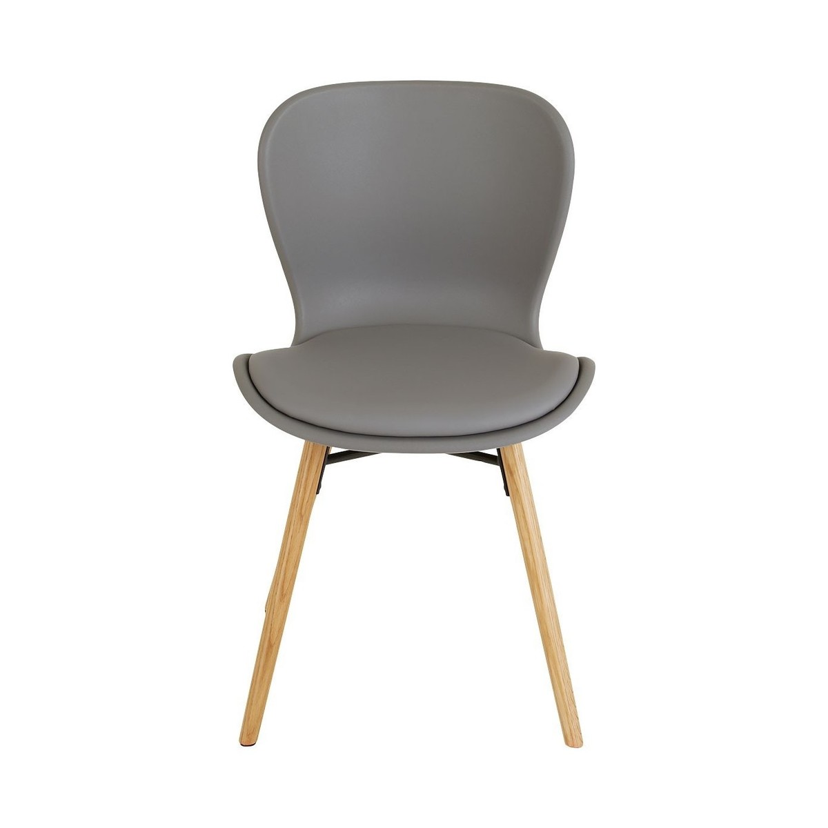 The Etta grey plastic and faux leather dining chair with wooden legs has a slightly scooped seat with a curved back and rounded edges for comfort. The dining chair is the perfect complement to the Etta extending dining table. The Etta range includes a sideboard and bench, and the chairs are available in a wide choice of colours, materials and finishes.