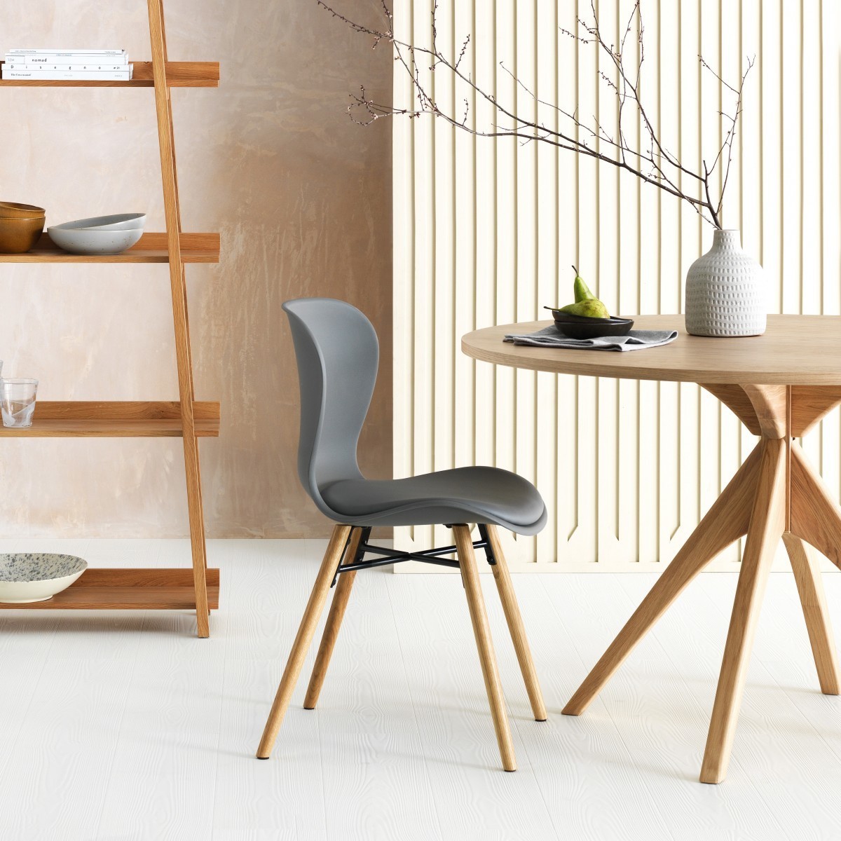 I really like this grey plastic dining chair for its sleek, minimalist look and practicality. It works particularly well in modern and contemporary interiors, especially in Scandinavian-inspired spaces where simplicity and functionality are key. The neutral grey makes it versatile-pair it with wood-toned tables for a warm, balanced feel or with bold colours for a more eclectic look. Practical styling tips include mixing and matching with different chair designs for an eclectic vibe, or dressing it up with colourful seat cushions for added comfort and a touch of personality. Its lightweight nature also makes it easy to move around, making it perfect for everyday dining or casual gatherings.