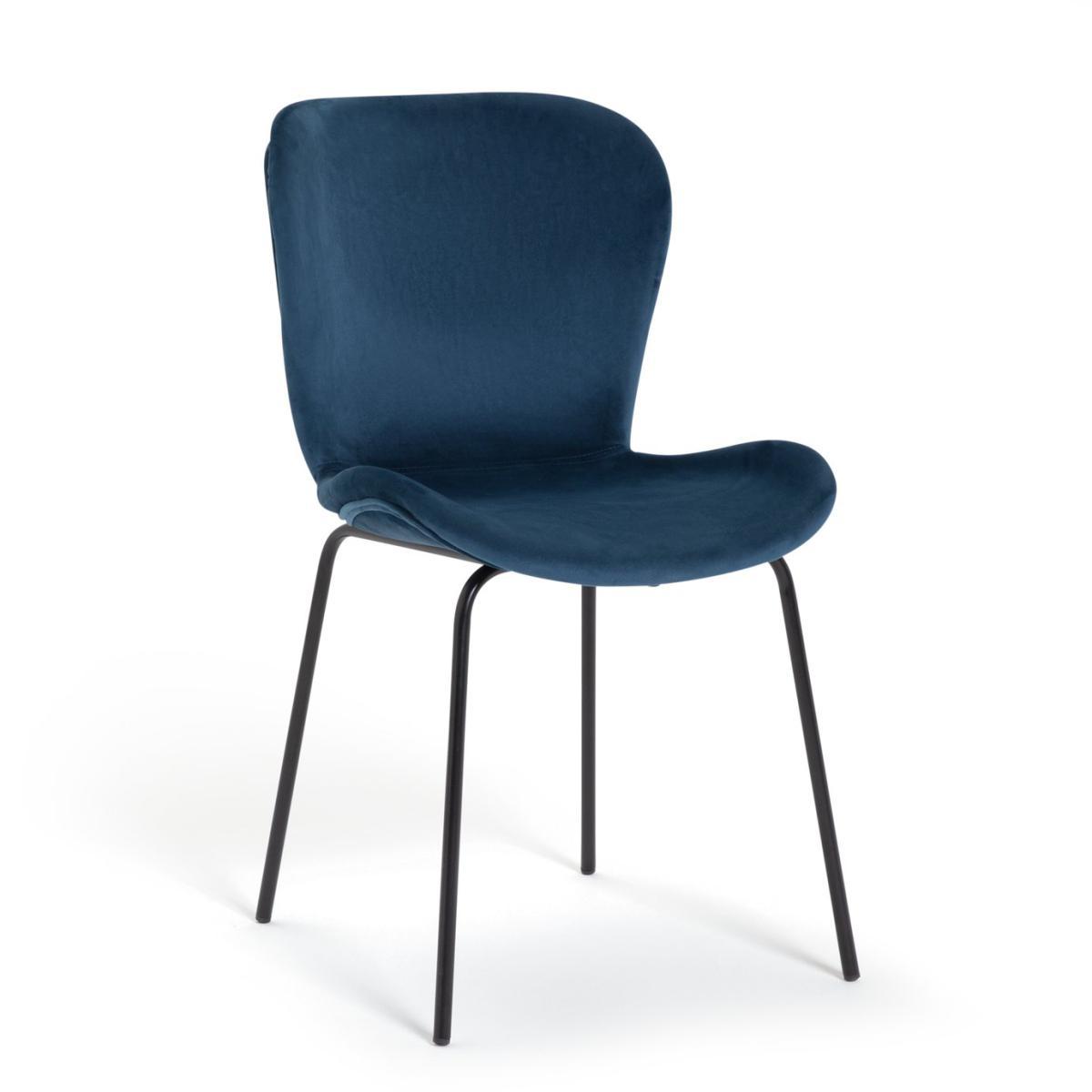 Habitat Etta Pair Velvet Blue Metal Leg Chairs