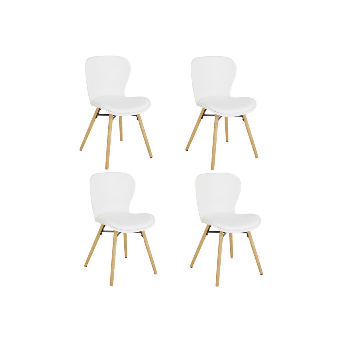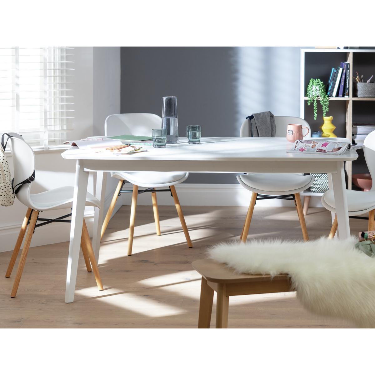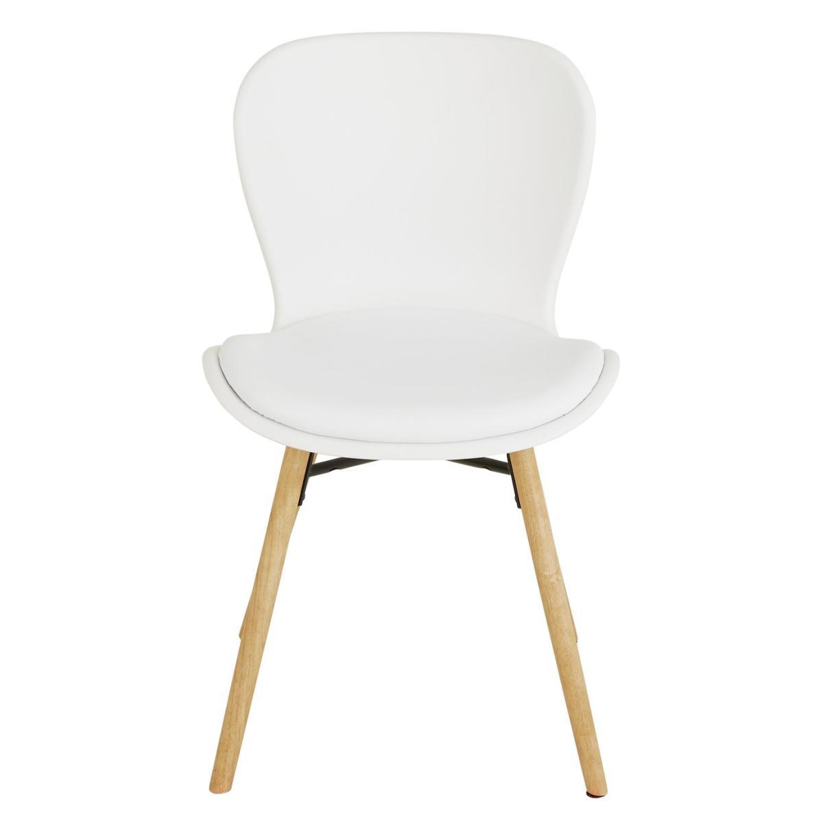 Curves in all the right place. In bright white, this shapely set of 4 dining chairs is classically cool. Comfy too. A scooped faux leather seat pad and high plastic backrest keeps you fully supported while you sit. With its figure hugging design and elegant rubberwood legs, this set brings a modern touch to your dining room. Dinner for 4? Pull up a pew. This versatile chair is available in a bunch of colours and finishes, just pick your favourite.