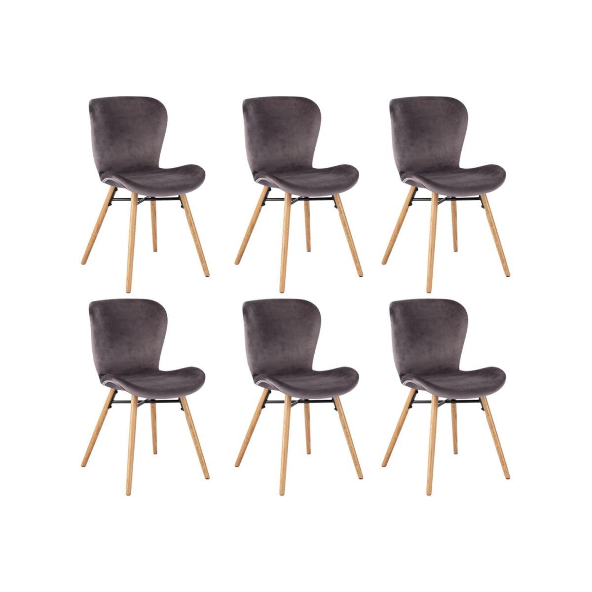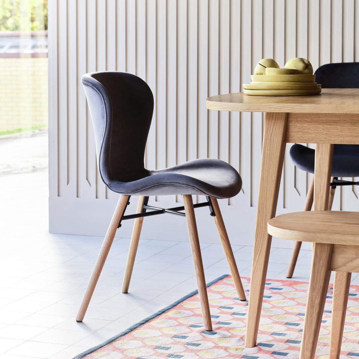 Curves in all the right place. Covered in grey velvet, this shapely set of 6 dining chairs is classically cool. Comfy too. A soft, scooped seat pad and high backrest keeps you fully supported while you sit. With its figure hugging design and elegant rubberwood legs, this set brings a modern touch to your dining room. Dinner for 6? Pull up a pew. This versatile chair is available in a bunch of colours and finishes, just pick your favourite.