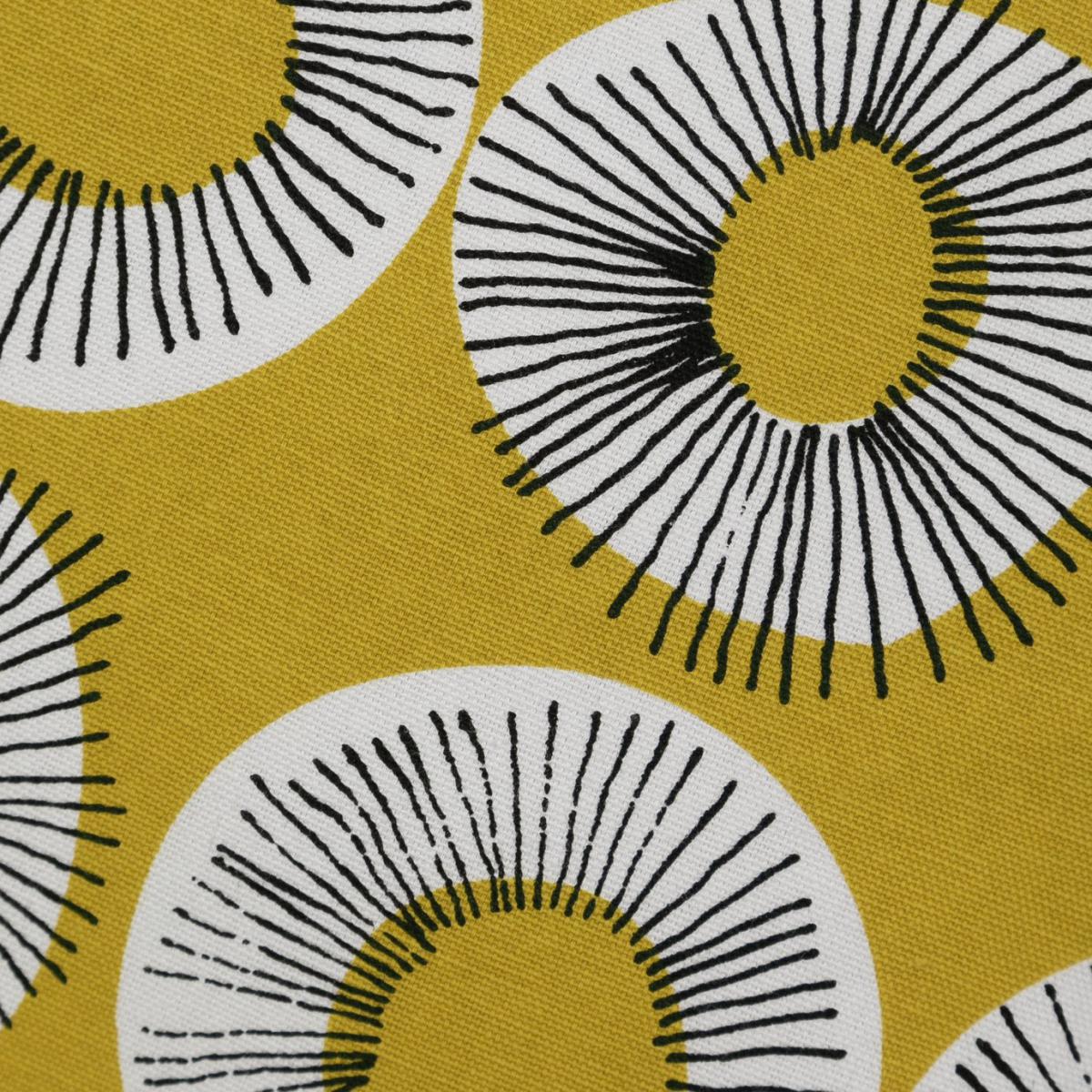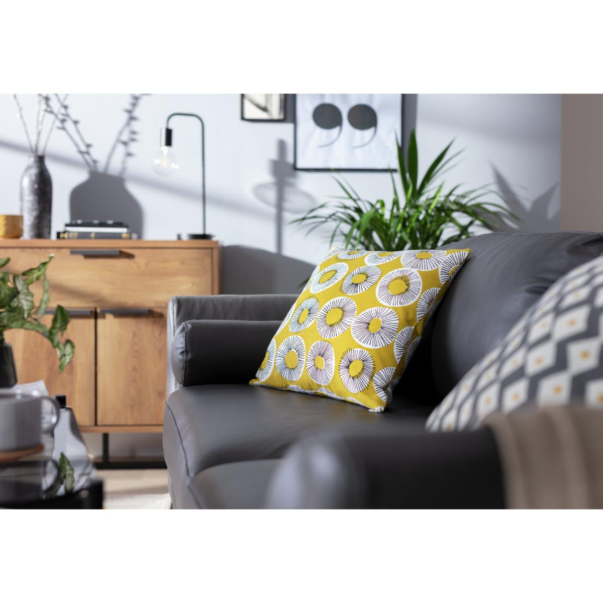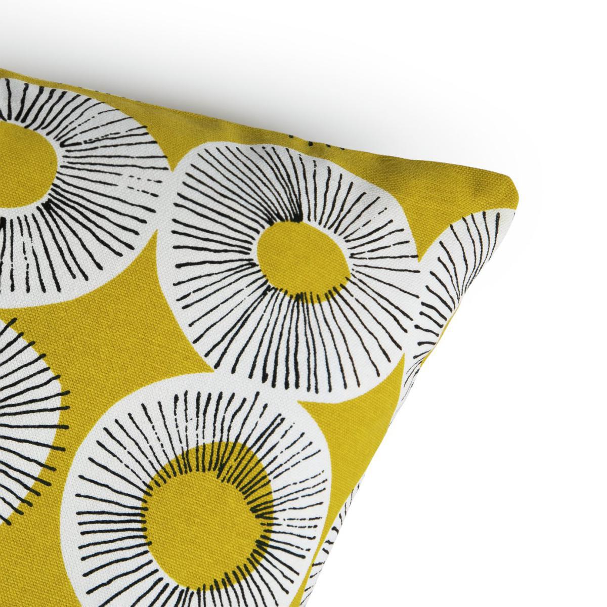A burst of sunshine. With its cheery yellow colour and a graphic, hand-drawn design, the Evelyn patterned cushion adds instant warmth to your space. It is made from 100% cotton and is supplied with a polyester-filled pad. Printed roller blinds and a shopper are also available in this design. A dash of mood-boosting colour.