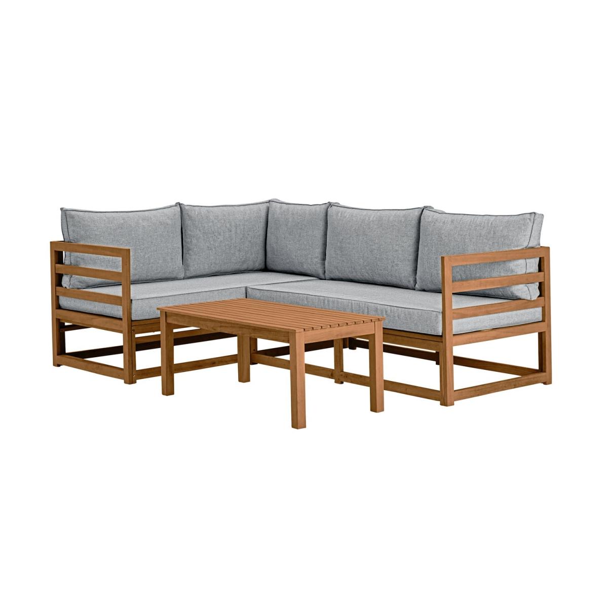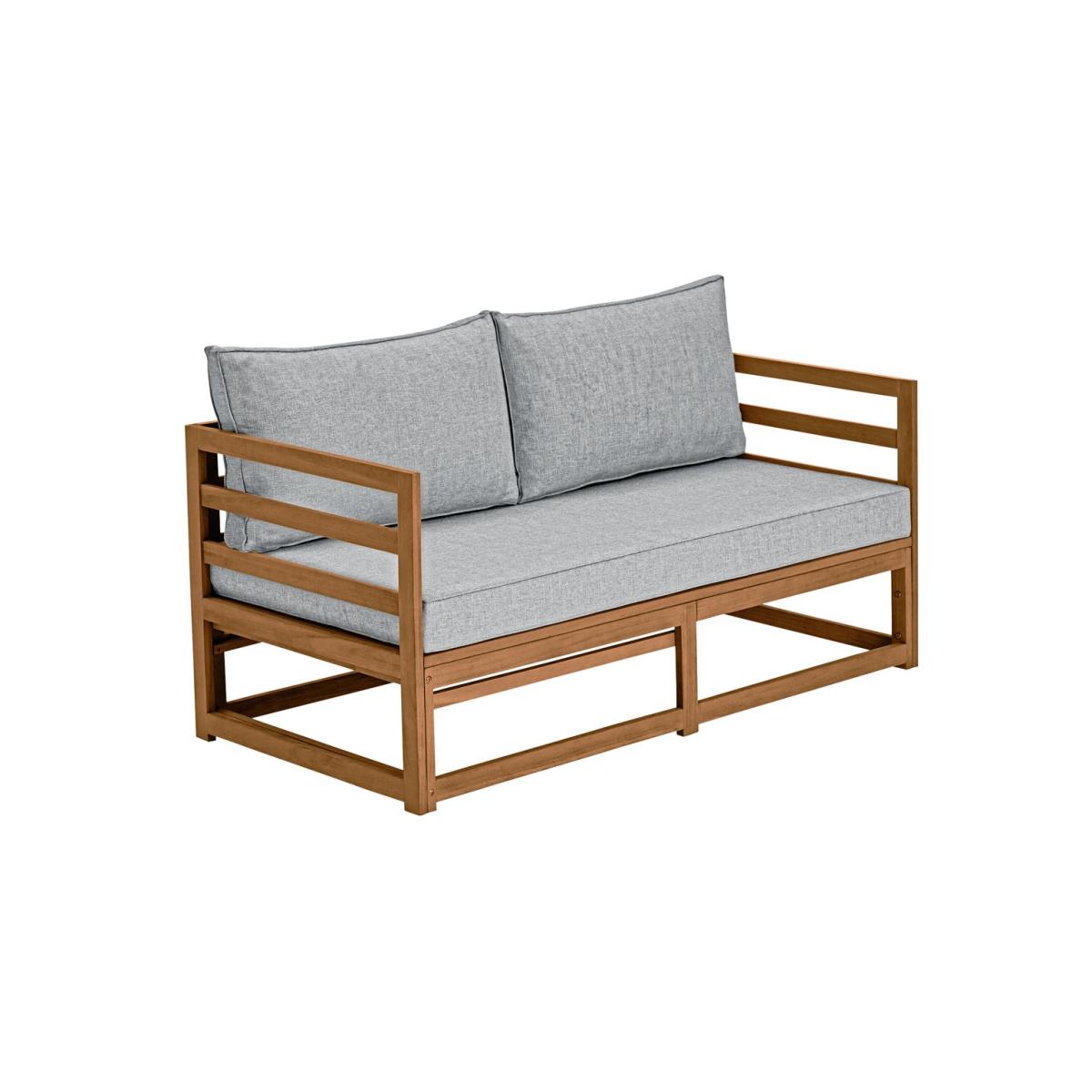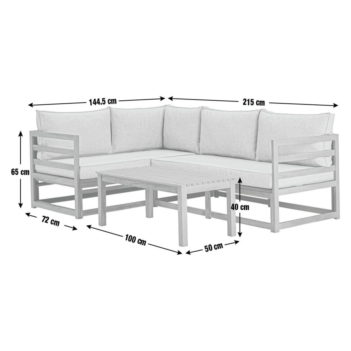 Flexible, fabulous and the perfect fit. Get ready to make the most of sunny days in the garden with the Evissa wooden garden sofa set. Crafted from whitewashed acacia wood, the spacious seating comfortably seats up to 5. Designed as 2 sofas or one that sits perfectly in corners so you can create a cosy nook or stylish lounging area. Sink into the soft grey firm cushions, rest drinks on the matching table and chill. Bring on the sunshine. Part of the Evissa collection. Parasol base not included. Parasol not included. Includes 7 cushions. General features: Set seats 5 people. Set made from acacia wood. Cover or store inside in winter months to prolong life of the products. Total weight 52kg. Garden table features: Acacia wood table top. Table size: H40, W50, L100cm. Chair features: Chair seat and back made from acacia wood. Size H65, W144.5, D72cm. Sofa features: Sofa size H65, W144.5. D215cm. 220kg maximum user weight per sofa. Cushion features: PolyCD and Grey cushions. Removable covers. Washable covers. Stain resistant. Remove cushions when not in use and store inside. Packaging information: Package 1 size H103, W52, D8cm. Package 1 weight 8.5kg. Package 2 size H145.5, W74.5, D41.5cm. Package 2 weight 25kg. Package 3 size H145.5, W74.5, D28.5cm. Package 3 weight 26kg. General Information: Packed flat - 2 people required. FSC certified meaning the materials used for this product are responsibly sourced. Manufacturer's 1 year guarantee.