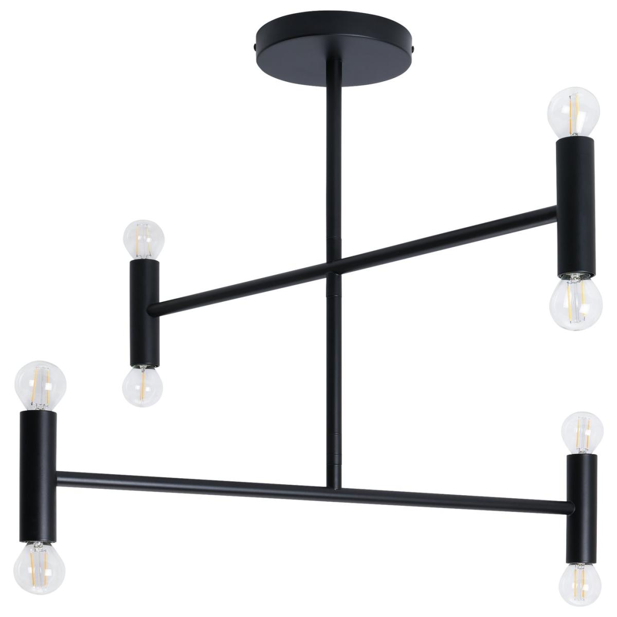 Doubly divine. A chandelier-style ceiling light with a starkly modern twist. Finished in black metal, its linear lines are designed to draw attention. A striking duo of arms suspended from a flush base, each hosting 4 exposed bulbs for that classic industrial look. You can rotate both arms, creating an intriguing design and shadow play that adds character to any interior. The bottom level rotating arms create a unique, intricately crafted design to your current decor. With a G45 2Wx. 8 filament bulbs. Dimensions: Size H51.8, D15cm, Diameter 63cm. Bulb Information: Bulbs required 8 x globe E14 small edison screw LED (included). Recommended maximum wattage: 2 watts. Can not be used with a dimmer switch. LED bulb only. Colour rendering index 80. Colour temperature 2700. K. Rated luminous flux 250 lumens. General Information: Metal. IP rating 20 - not suitable for bathroom use. Weight: 2.45kg. Self-assembly. Product is hard-wired into electrics. This lighting product is a class 2 fitting. We are excited to be welcoming some of our favourite HOME products into the Habitat range. Your product may arrive in Habitat or HOME packaging. Manufacturer's 1 year guarantee.