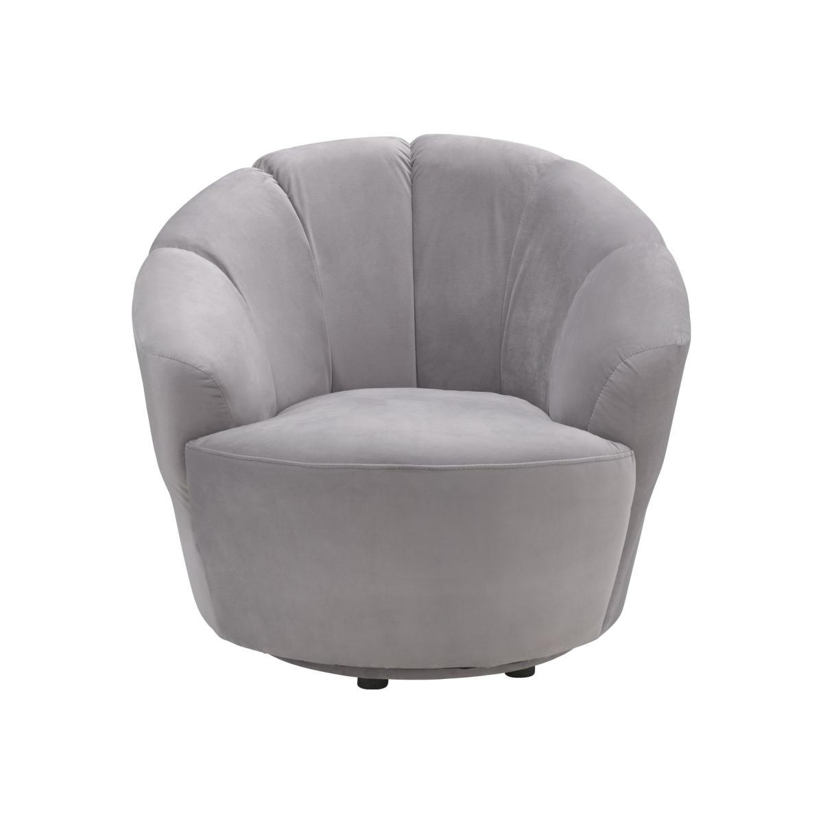 Clam-inspired comfort. With its scalloped back, Ezra makes a stunning statement piece. Its plush soft velvet-effect finish will add a wonderfully warm texture to your space. This gorgeous chair looks fabulous in the lounge or bedroom. Its finished with a swivel base, so why not take it for a spin?