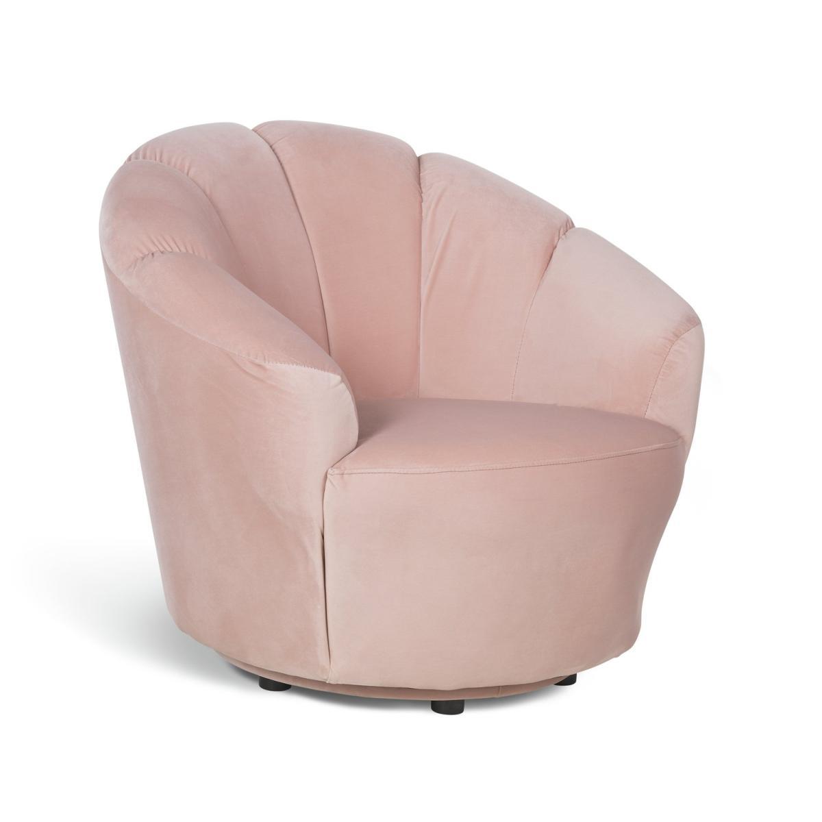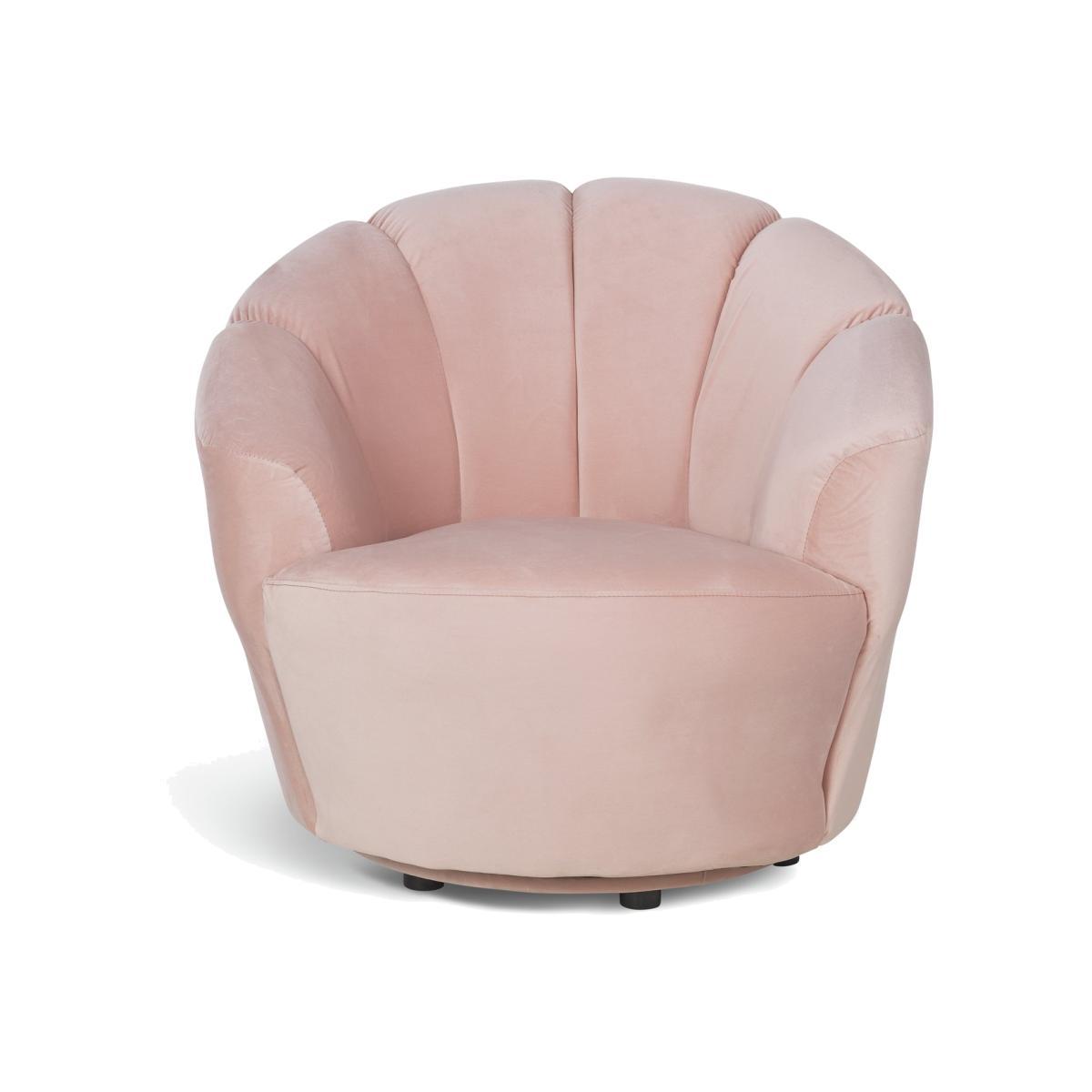 Clam-inspired comfort. With its scalloped back, Ezra makes a stunning statement piece. Its plush soft velvet-effect finish will add a wonderfully warm texture to your space. This gorgeous chair looks fabulous in the lounge or bedroom. Its finished with a swivel base, so why not take it for a spin?