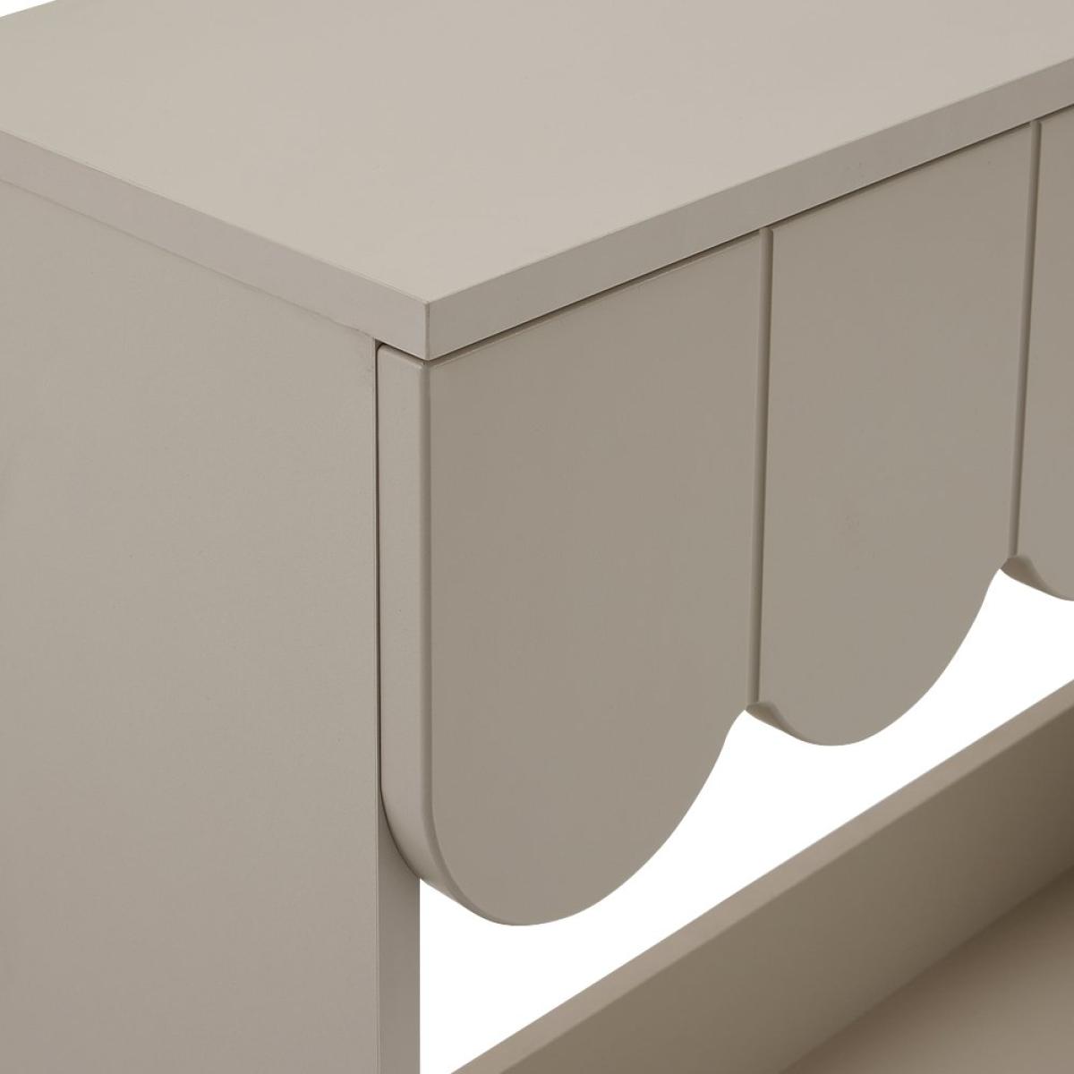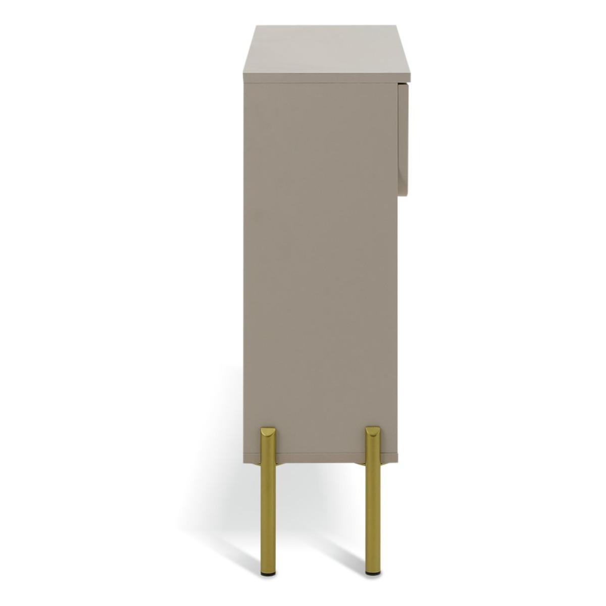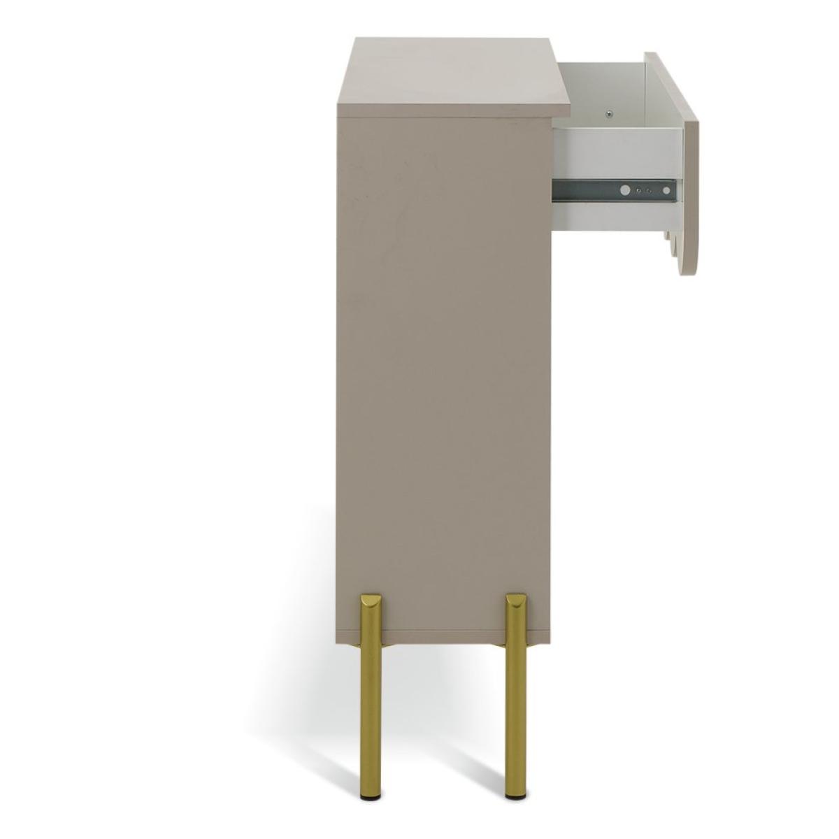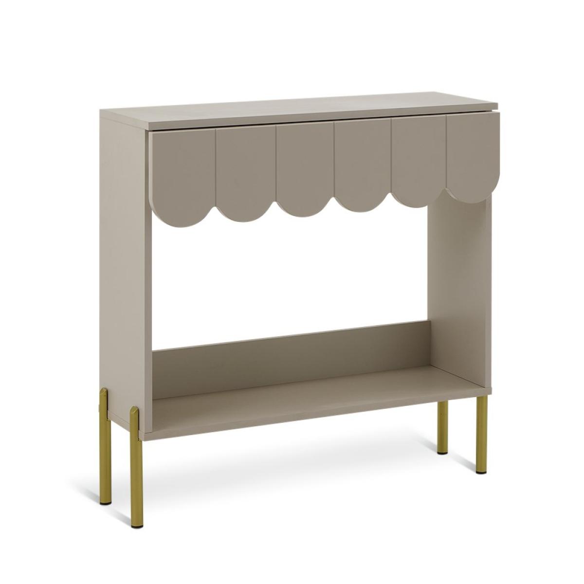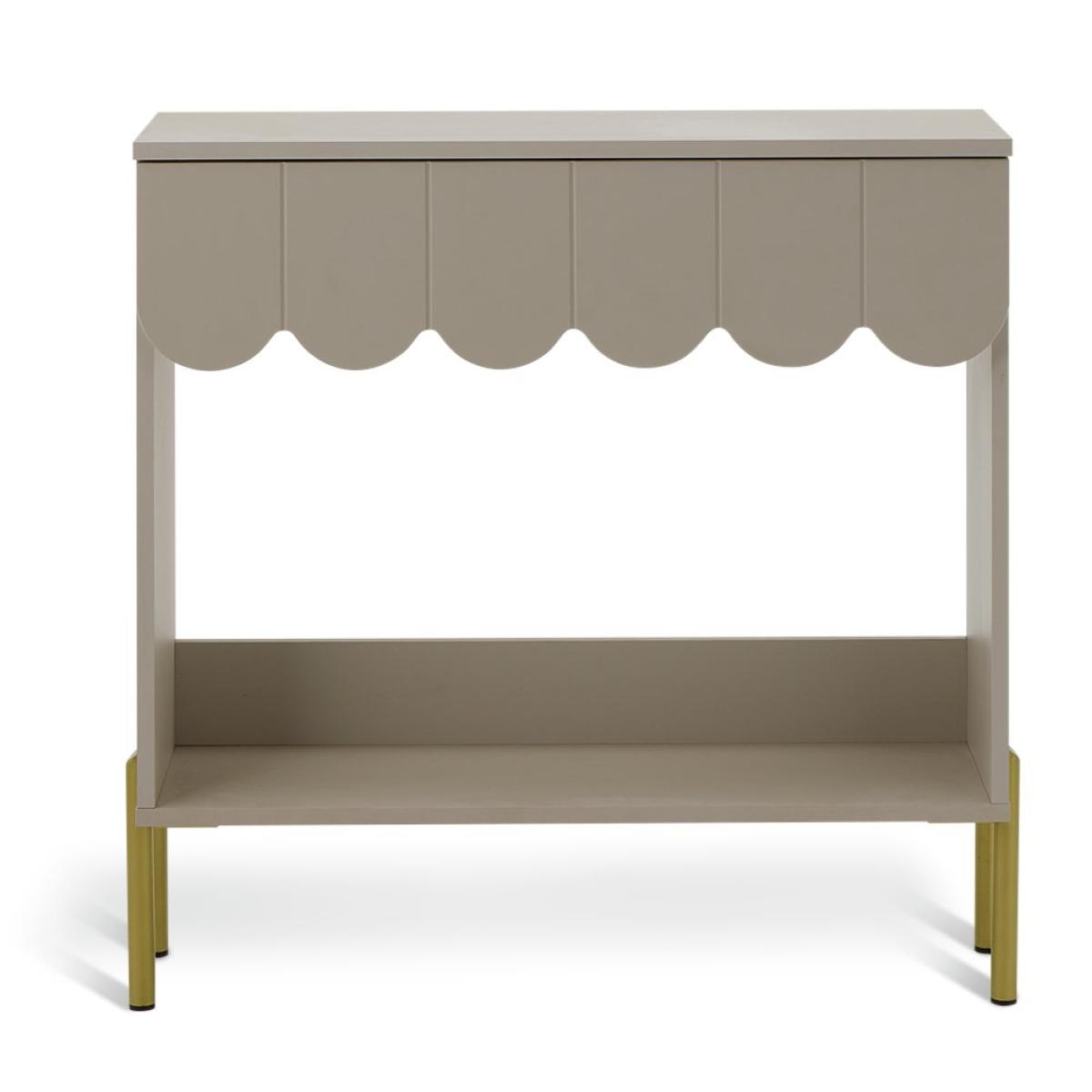 Stylish statement console table? Yes please. Fala's all about distinctive, standout features. From the neutral lacquered finish to the elegant, scalloped panelling, it's a decor-elevating piece of furniture. Finished with plenty of room on top, an open shelf and a spacious easy glide drawer, while golden feet add the final flourish. Part of the Fala collection. Size H 80.9, W 80.2, D 26.8cm. Made from particleboard and MDF with a foil finished chipboard finish. 1 drawer with metal runners. Weight 15kg. Self-assembly - 1 person recommended. Maximum load weight 5kg. Package Dimensions: Package 1 dimensions: H12.3, W114.1, D30cm. Package 1 weight: 16kg. General information: By choosing FSC certified products, you are supporting responsible management of the world's forests. Manufacturer's 2 year guarantee.