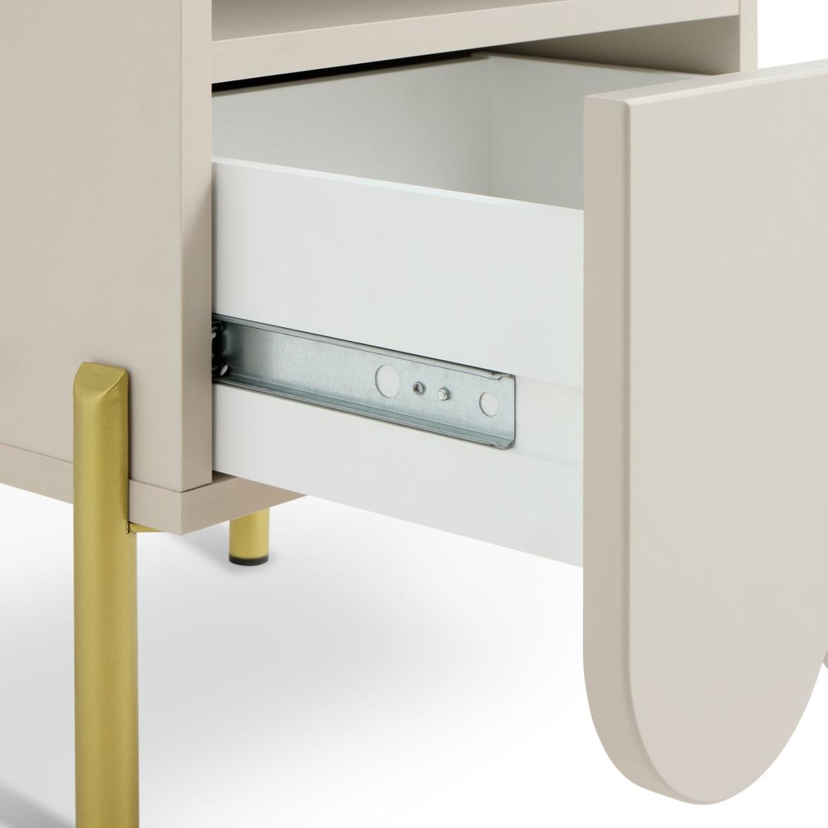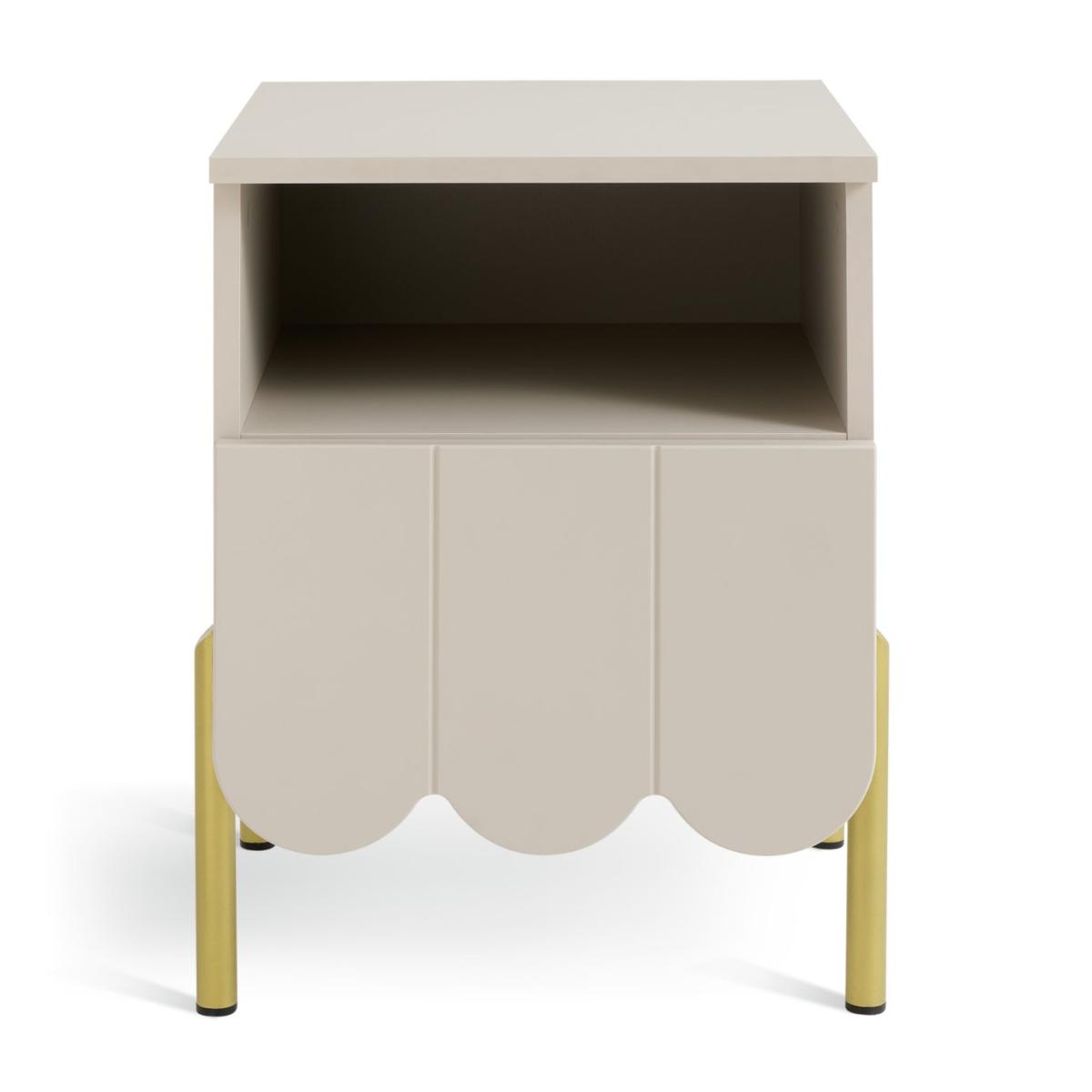 Stylish statement side table? Yes please. Fala's all about distinctive, standout features. From the neutral lacquered finish to the elegant, scalloped panelling, it's a decor-elevating piece of furniture. Finished 1 deep easy glide drawers, while golden feet add the final flourish. Part of the Fala collection. Size H 54, W 40, D 42cm. Made from particleboard and MDF with a foil finished chipboard finish. 1 drawer with metal runners. Weight 13kg. Self-assembly - 1 person recommended. Maximum load weight 5kg. Package Dimensions: Package 1 dimensions: H11, W74.9, D43.2cm. Package 1 weight: 14kg. General information: By choosing FSC certified products, you are supporting responsible management of the world's forests. Manufacturer's 2 year guarantee.