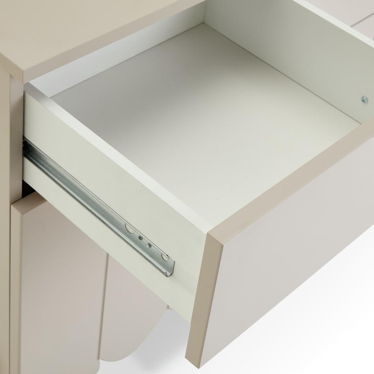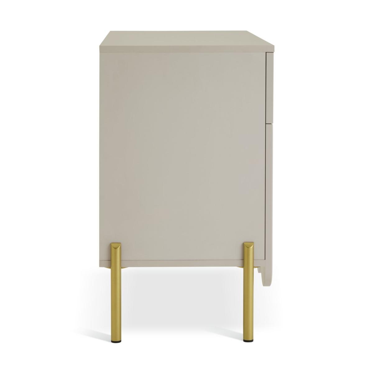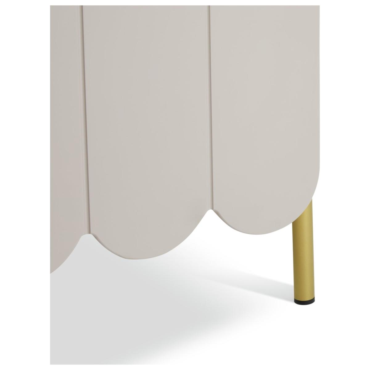 Stylish statement sideboard? Yes please. Fala's all about distinctive, standout features. From the neutral lacquered finish to the elegant, scalloped panelling, it's a decor-elevating piece of furniture. Finished with 2 roomy cupboards and 2 deep easy glide drawers, while golden feet add the final flourish. Part of the Fala collection. Made from particleboard with a laquered finish. Size H 71.9, W 80, D42cm. 2 drawers with metal runners. 2 doors. Weight 23.5kg. Self-assembly - 1 person recommended. Maximum load weight 20kg. If this product is over 60cm high it must be securely attached to the wall to prevent overturning. General information: Manufacturer's 2 year guarantee. FSC certified meaning the materials used for this product are responsibly sourced.