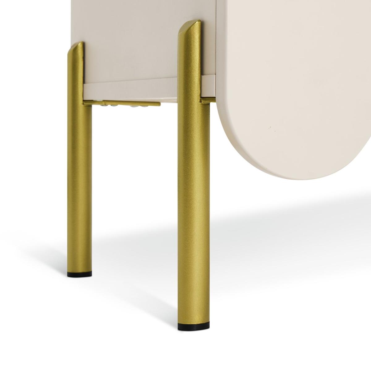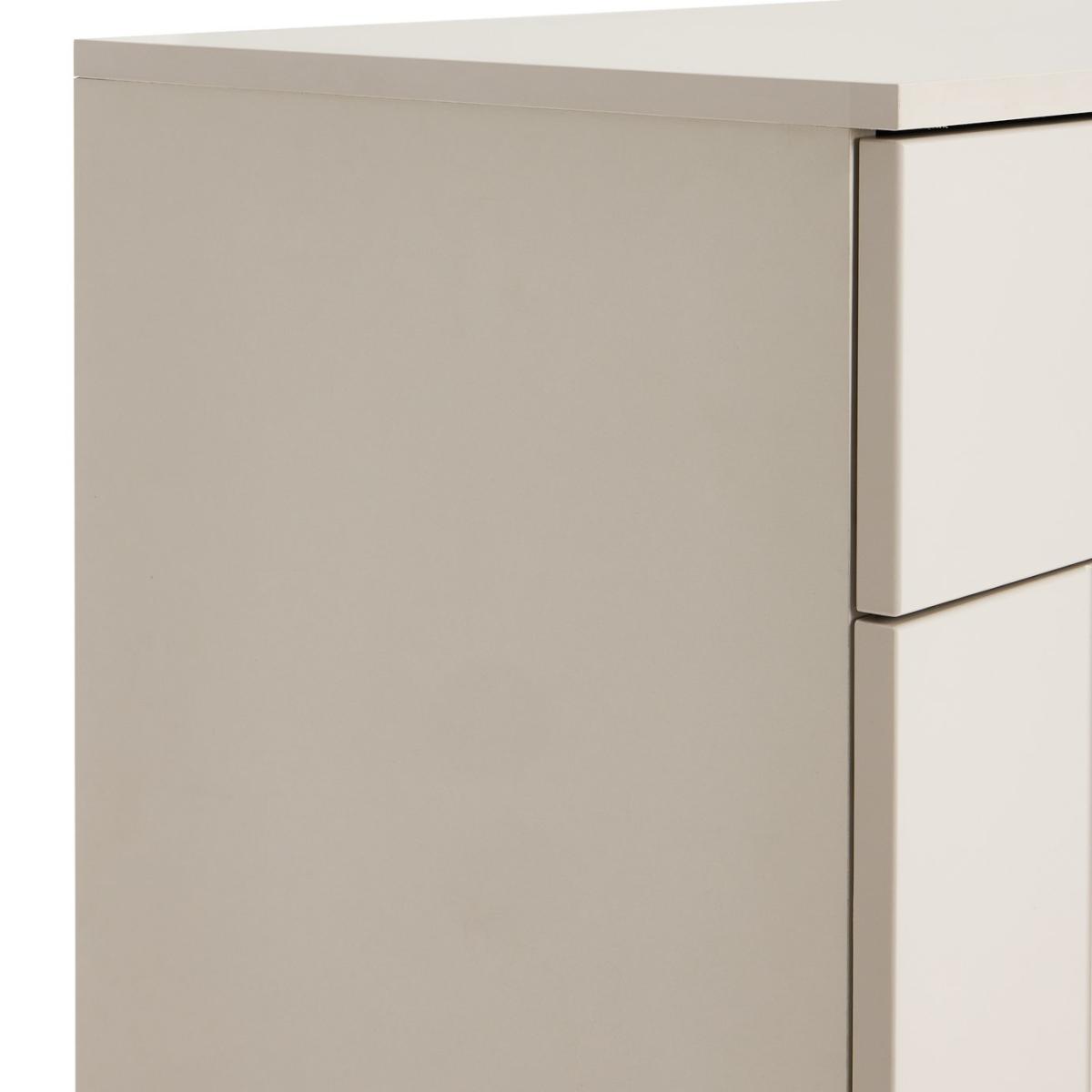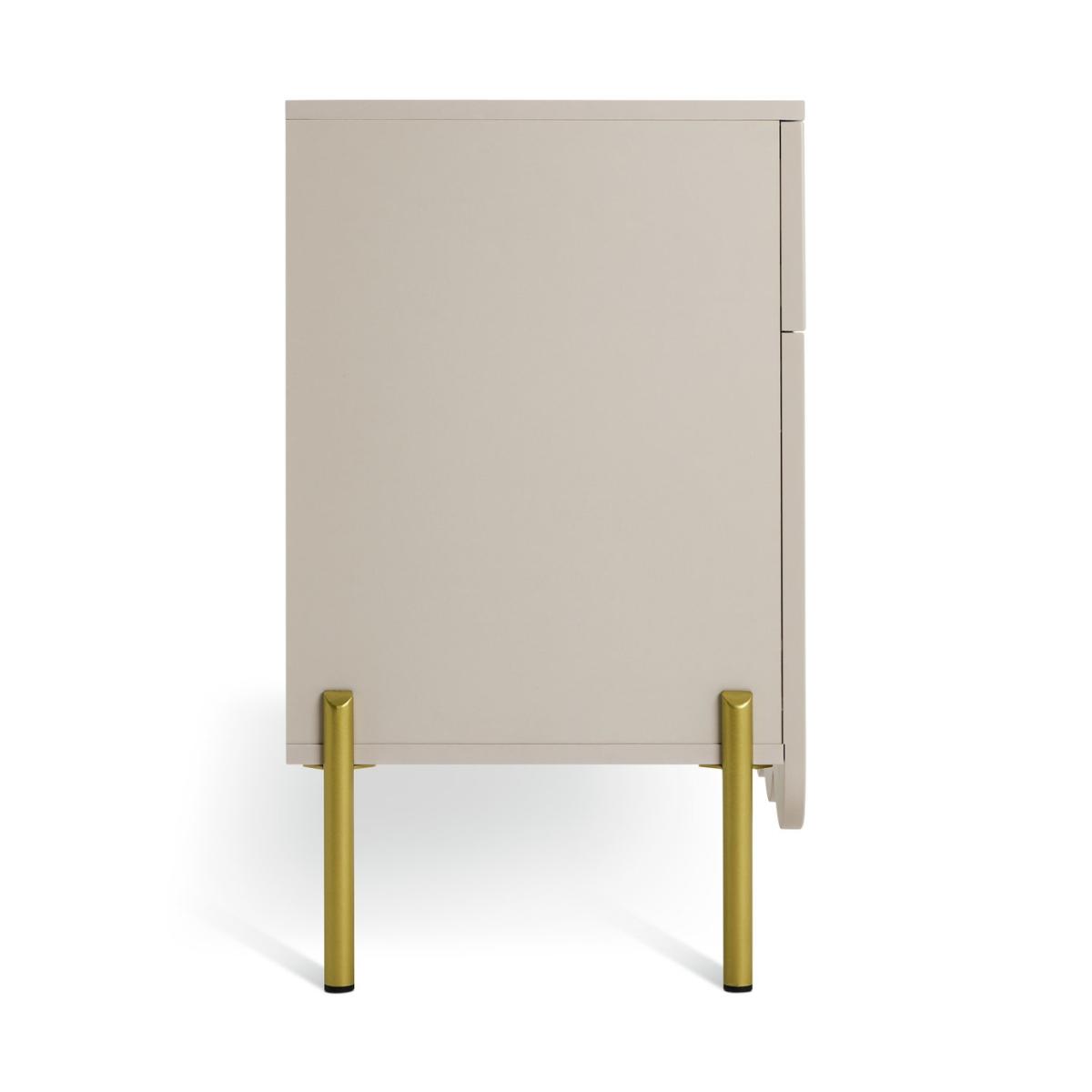 Stylish statement sideboard? Yes please. Fala's all about distinctive, standout features. From the neutral lacquered finish to the elegant, scalloped panelling, it's a decor-elevating piece of furniture. Finished with 3 roomy cupboards and 2 deep easy glide drawers, while golden feet add the final flourish. Part of the Fala collection. Made from particleboard and MDF with a foil finished chipboard finish. Size H 71.2, W 120, D42cm. Includes Bluetooth speakers. 2 drawers with metal runners. 3 doors. Weight 38kg. Self-assembly - 1 person recommended. Maximum load weight 15kg. If this product is over 60cm high it must be securely attached to the wall to prevent overturning. Package Dimensions: Package 1 dimensions: H12, W77.3, D43.1cm. Package 1 weight: 18.5kg. Package 2 dimensions: H6.9, W129.3, D45.2cm. Package 2 weight: 21.5kg. Manufacturer's 2 year guarantee.