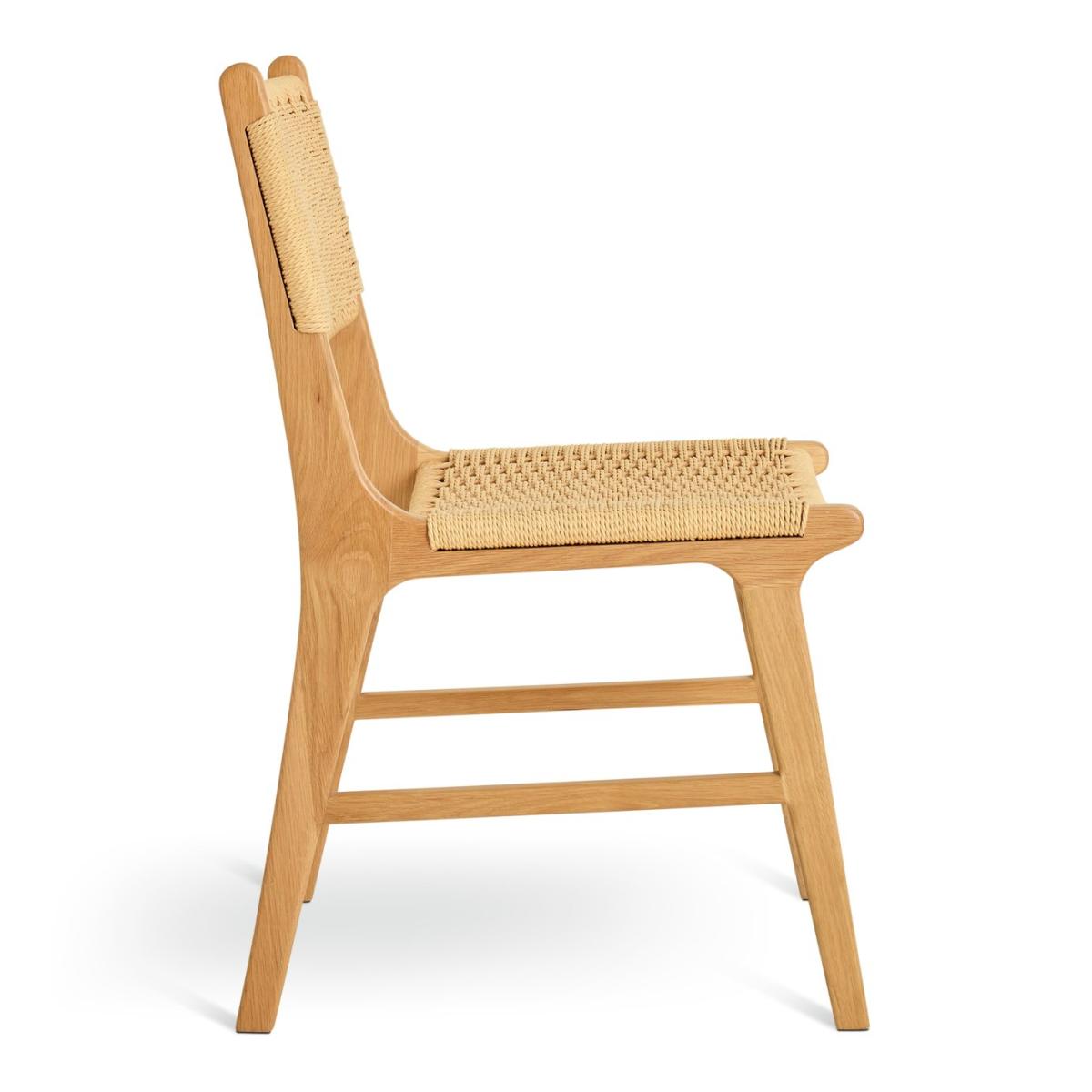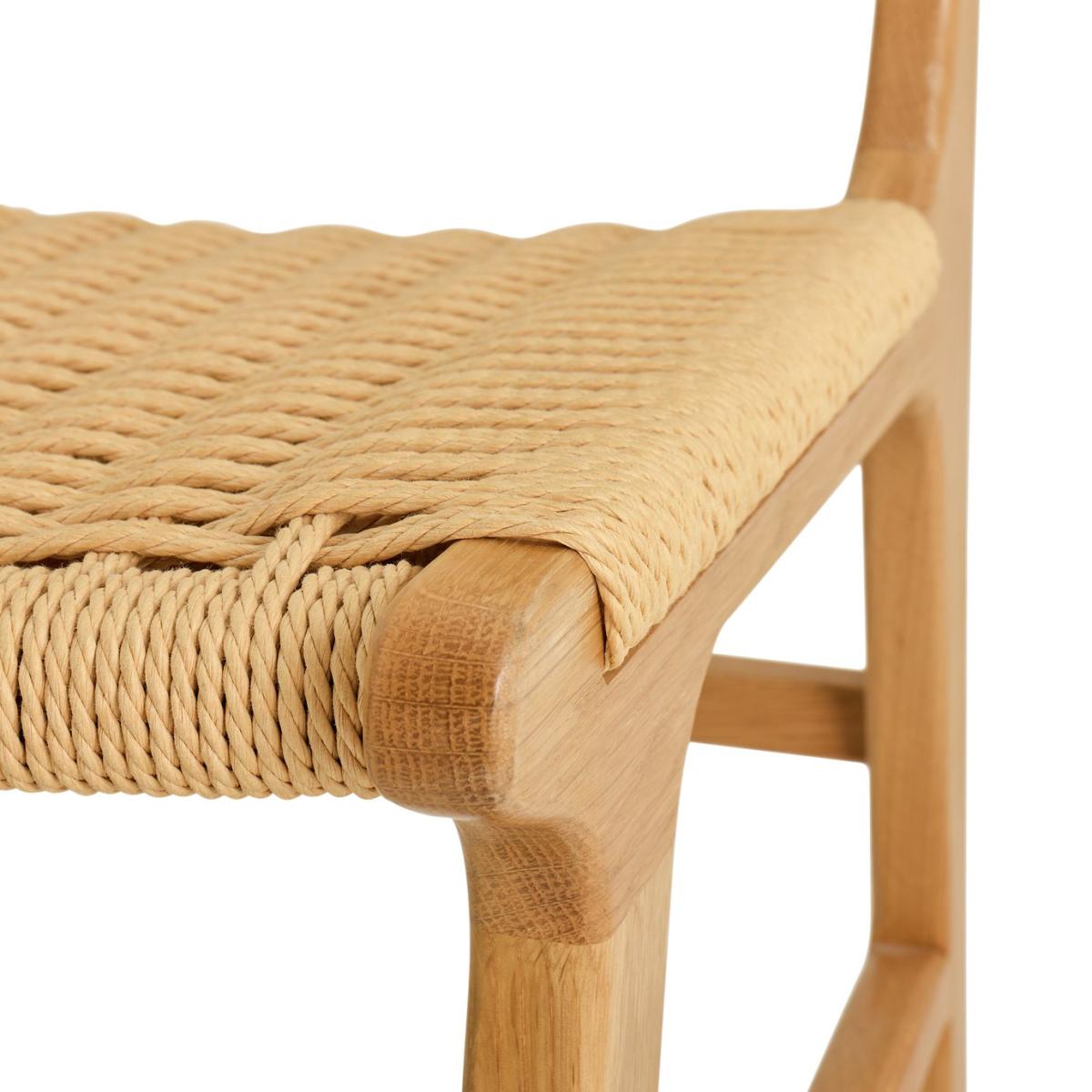 Craftsmanship at its best. This duo of Faro chairs is packed with delightful designer detail. Smooth, solid oak frames support paper woven rope seats and backrest. Think Boho style with a refined edge. 100% relaxing and effortlessly comfortable. Pair the set with any natural wood table for a relaxed dining experience. Part of the Faro collection. 2 chairs supplied. Size H84, W46, D56.5cm. Seat height 45.4cm. Solid wood frame with solid wood legs. Solid wood seat pad. Fully assembled - 1 person recommended. Max user weight per chair 100kg. Individual chair weight 10.8kg. Do not wash. Package Dimensions: Package size: H93, W48.5, D72.5cm. General information: By choosing FSC certified products, you are supporting responsible management of the world's forests. Manufacturer's 2 year guarantee.