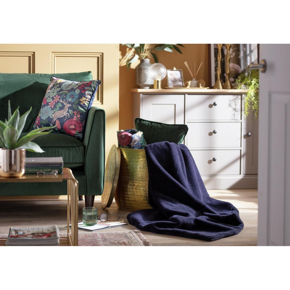 I love this navy faux fur throw for its cosy, inviting texture and versatile colour. It works particularly well in modern or contemporary interiors, adding a touch of luxe to living rooms or bedrooms. The navy shade makes it easy to incorporate into a variety of colour schemes, from neutral palettes to rich jewel tones. For styling, drape it casually over the arm of a sofa or fold it neatly on a bed to create layered, tactile interest. Using it as an accent piece alongside velvet cushions or layered textures can really elevate the overall look. Practical and stylish, it’s perfect for those cosy nights in or for adding a subtle pop of colour and comfort to your space.