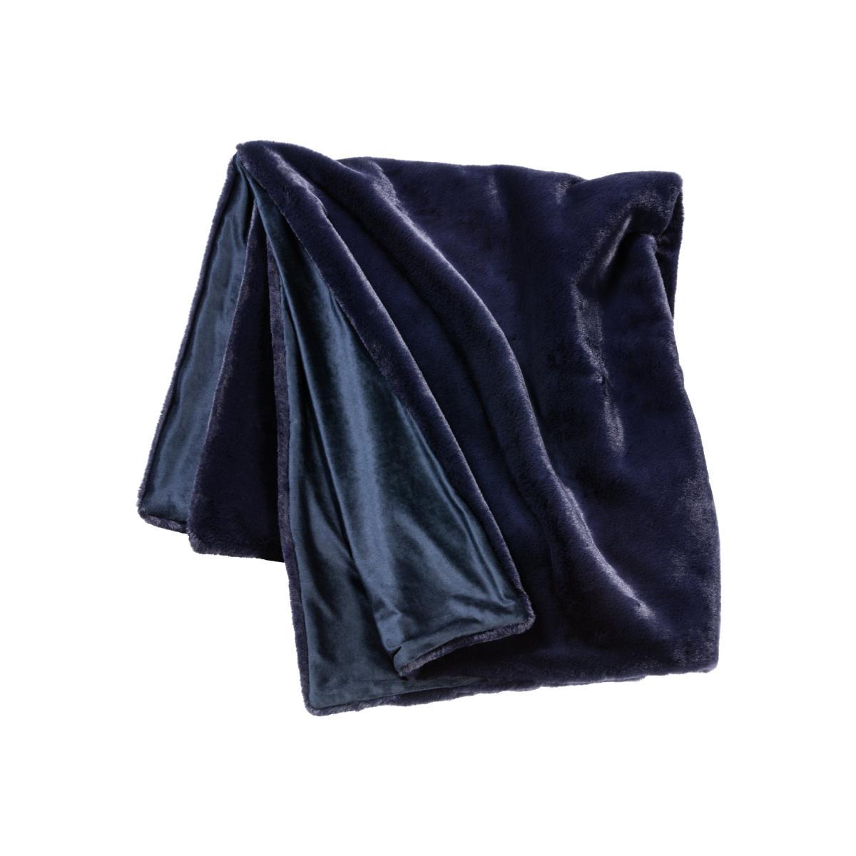 Hop in and snuggle up. Our faux fur throw is so silky and soft, you may never want to put it down. Luxurious in rich, deep blue it's very accommodating. Complements neutral or bright colour schemes as well as a modern or traditional decor. Drape it over your duvet to add texture and interest to the bed or have it as a spare comfy blanket. Movie night cuddles just moved up a notch.