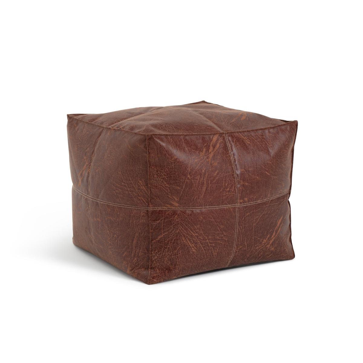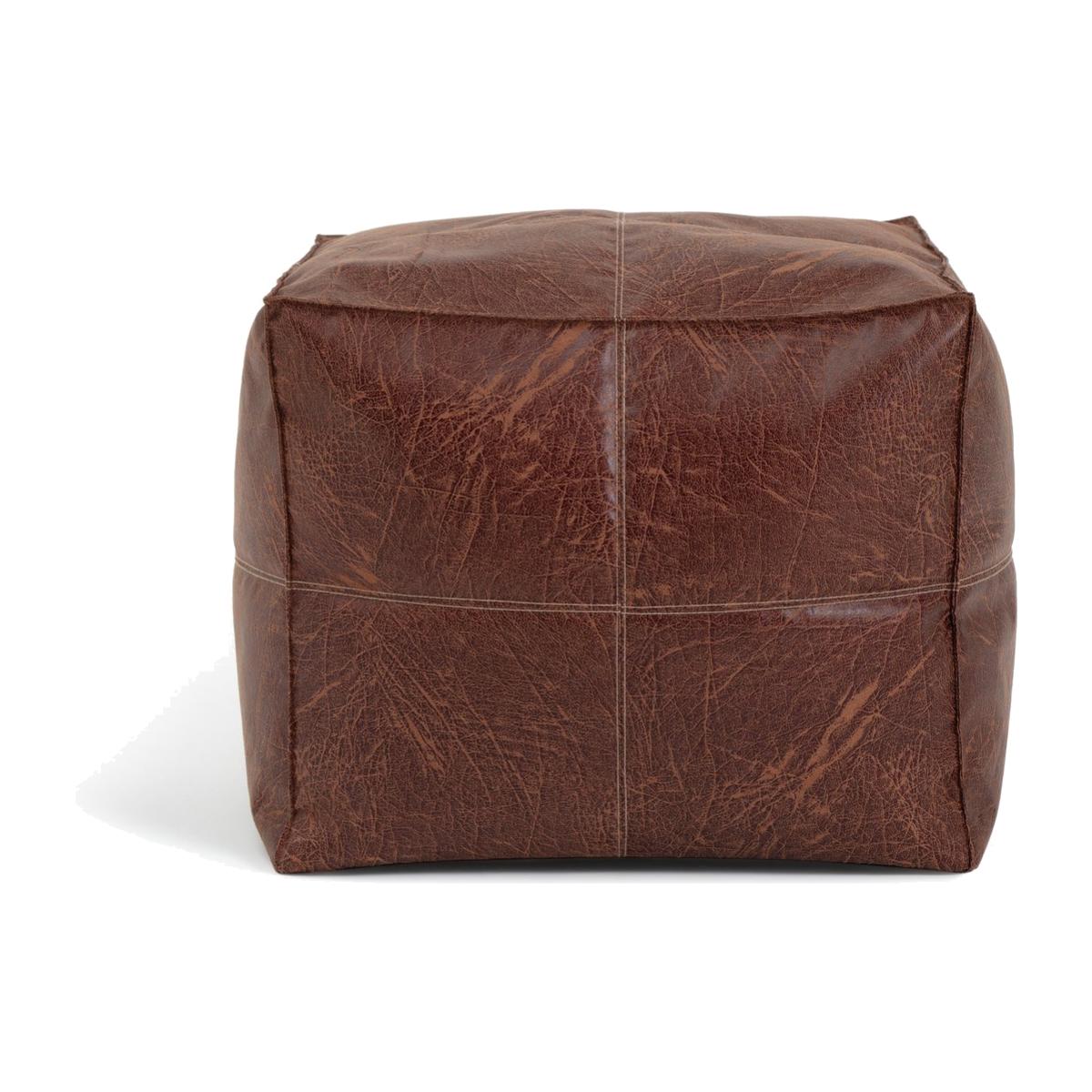 Eco-luxury for foot weary warriors. Rest your feet or take a seat on this fab distressed faux leather pouffe. Luxurious, stylish and practical, this fabric has it all. Each panel is neatly cut and the sewn edges left exposed. So on trend. The Eco-leather has been recycled and redyed. And the PU finish makes keeping it clean is a doddle. It's old word grandeur in modern world style.