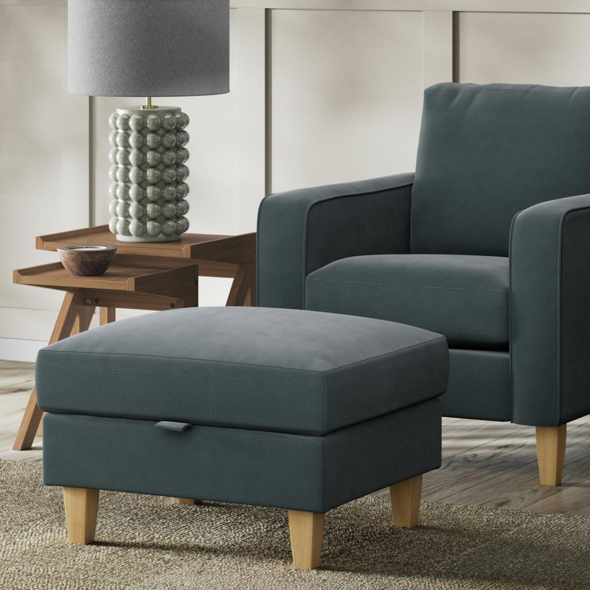When it's made for you, you know you'll love it. Whether you're resting your feet, using it as a seat, or making use of the storage space, the Felin footstool is soft and inviting. Upholstered in a velvety sheen Chenille, the Felin takes on a rich, soft, textured look with a padded lid which makes it versatile enough to sit with any sofa or chair. Offering relaxed comfort, Felin's high density foam seat cushion is further wrapped in fibre wrap to create the perfect balance of support, durability and recovery. Handmade to order in the UK. The Felin uses quality materials and traditional techniques for furniture that's unique to you. Available in a choice of sizes and fabrics including Aquaclean technology protection built into the yarn, which is easy to clean with just water. Part of the Felin collection. Material: Made from 100% polyester. Wooden feet. Fixed cushion(s) with foam fibre wrap filling. Dimensions: Size H47, W70, D61cm. Internal storage compartment H10, W63, D52cm. Storage capacity:35 litres. Weight: 14kg. General information: We do more than deliver your product, we unpack, set it up and take away the packaging. Manufactured in the UK using components sourced globally. Professional clean only. Hinged lid. Fully assembled - just add feet. Maximum individual user weight: 110kg. Manufacturer's 2 year guarantee. Packaged dimensions: Package size H36, W75, D66cm.