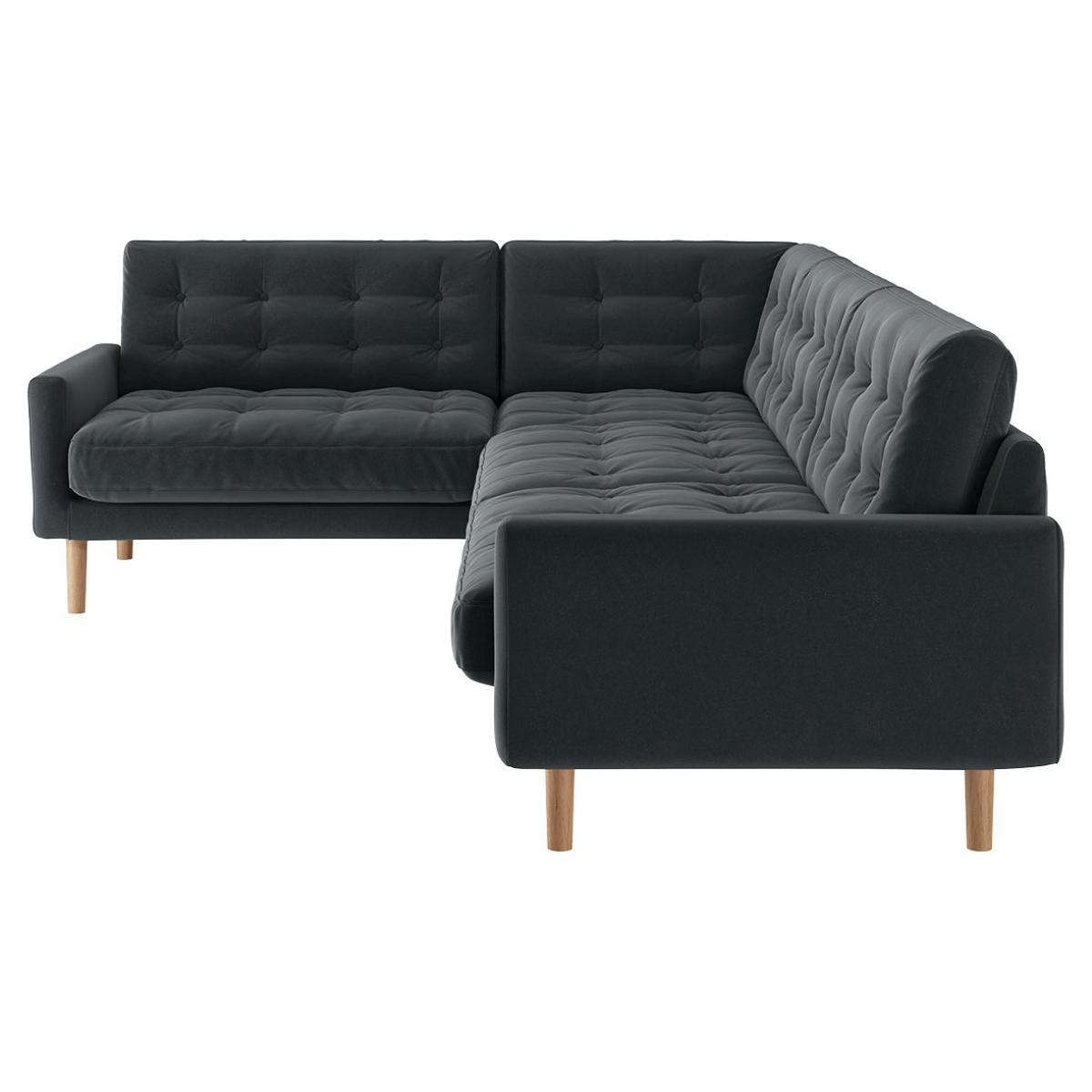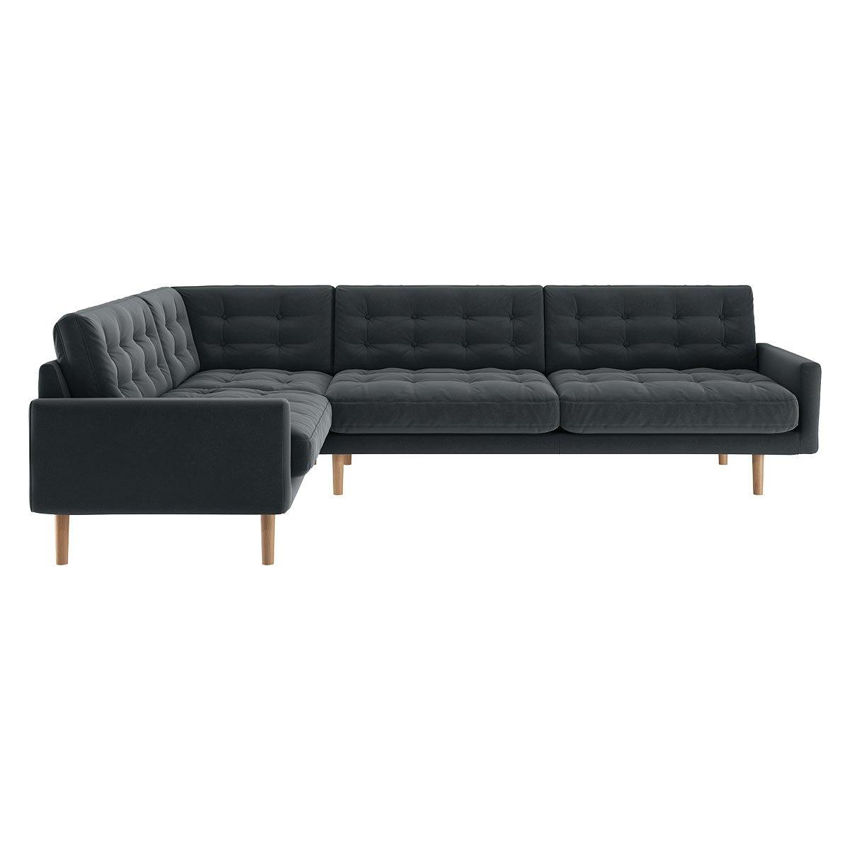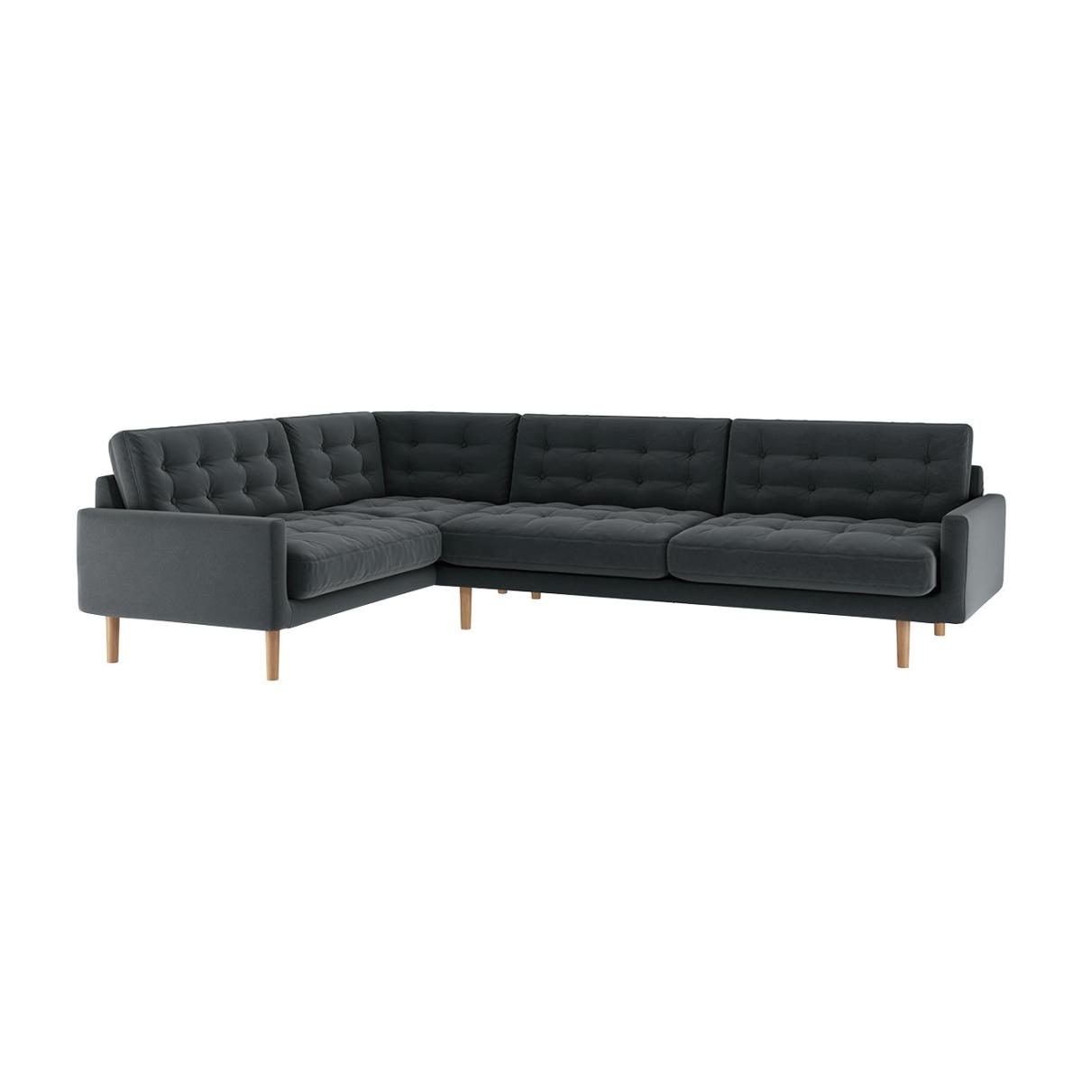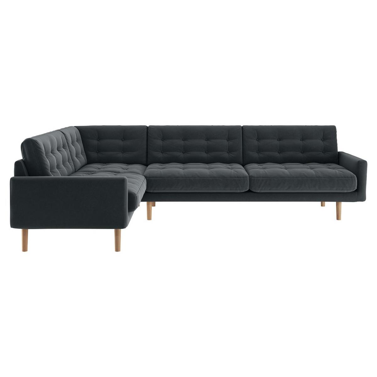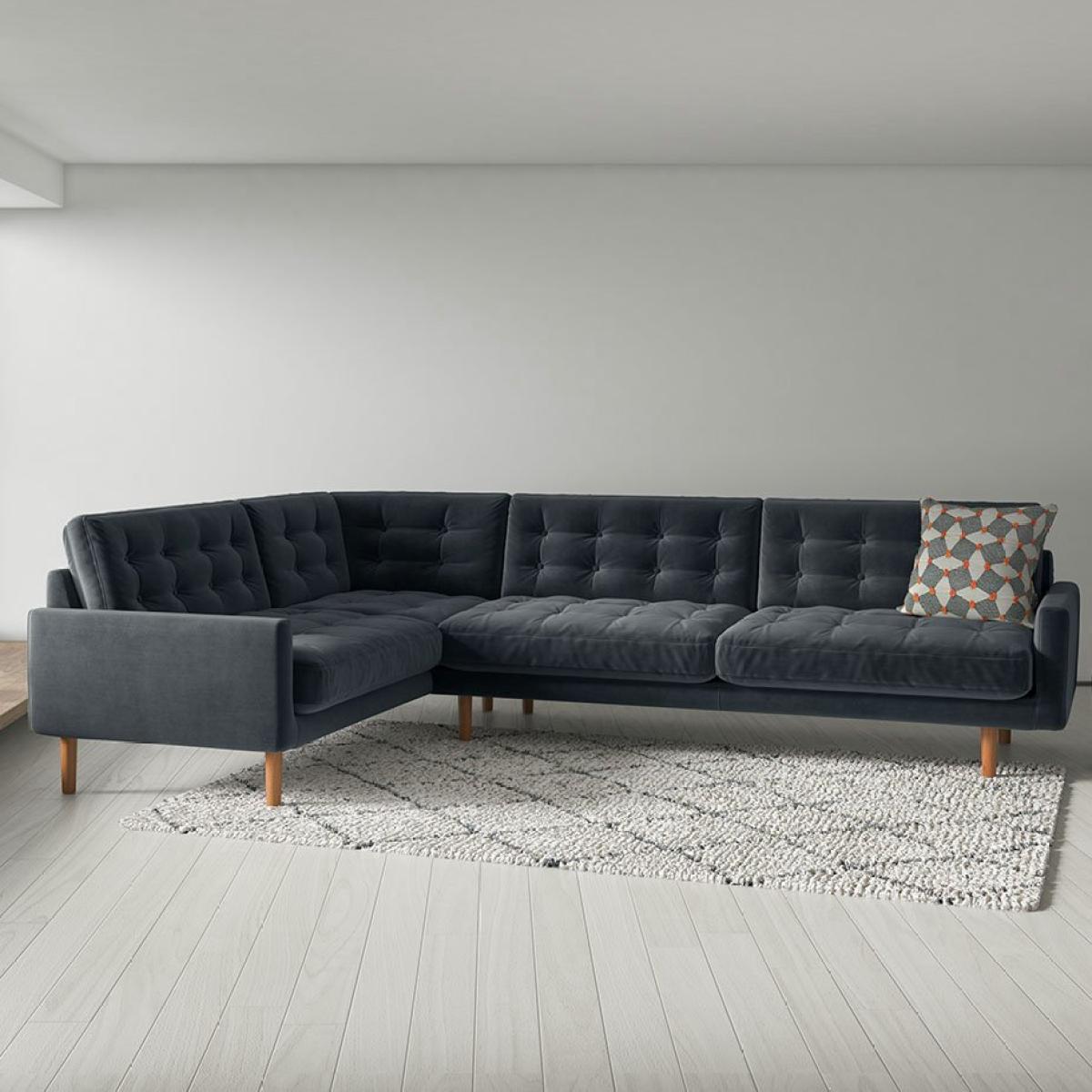Made in Italy, the Fenner velvet dark grey right-hand 4 seater corner sofa has slender cushioned arms and soft, feather-wrapped fibre seat and back cushions. The sumptuous sofa combines a classic box frame with loose covers for a softer look and has button detailing on its cushions, which acquire a relaxed, comfortably lived-in look over time. Exclusive to Habitat, the sofa's deep seat and thin frame create a large seating area. Part of the Fenner collection. Right hand corner. Material: Made from 86% cotton and 14% modal. Wooden feet. Fixed seats with feather and fibre topped foam filling. Fixed cushion(s) with feather and fibre filling. Dimensions: Size H79, longer width 298, shorter width 190, D190cm. Floor to seat height: 39cm. Depth of seat: 63cm. Height of seat back: 40cm. Packaged dimensions: Package size H55, W215, D95cm. Second package size H55, W195, D95cm. General information: Professional clean only. Plump cushions regularly to maintain shape. Self-assembly - just add feet. Maximum individual user weight: 120kg. Manufacturer's 10 year frame guarantee.