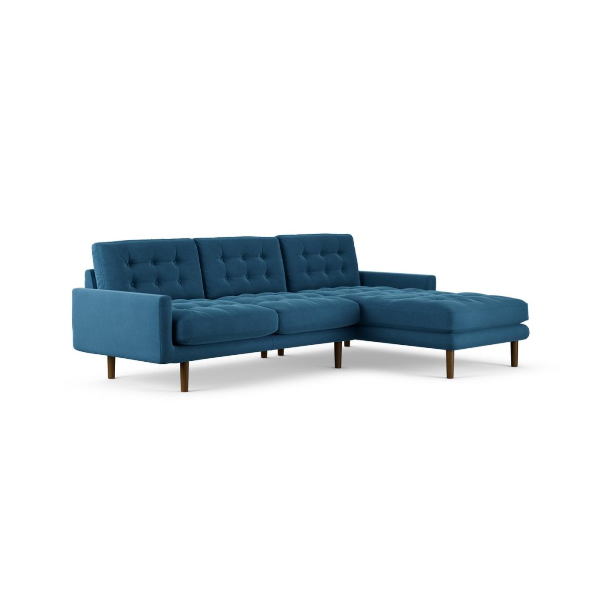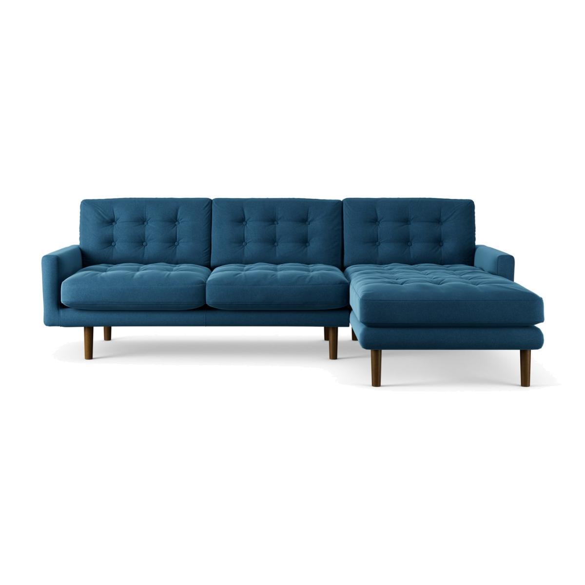 When it's made for you, you know you'll love it. The very popular Fenner 4-seater right hand chaise brings mid-century styling, combining hand buttoned deep sit soft seats and back cushions with a neat box frame shape. Upholstered in rich velvet, it takes on a luxe look. This sofa is finished with classically, slender tapered legs. Offering a more supportive seat, Fenner's cushions use high density foam, further wrapped in a thick quilted fibre wrap to create the perfect balance of support, durability and recovery. Handmade to order in the UK. The Fenner uses quality materials and traditional techniques for furniture that's unique to you. Available in a choice of sizes and fabrics including Aquaclean technology protection built into the yarn, which is easy to clean with just water. Part of the Fenner collection. Right hand corner. Material: Made from 100% recycled polyester. Wooden feet. Removable seats with fibre filling. Removable cushion(s) with fibre filling. Free fabric swatch available on this line. Dimensions: Size H85, longer width 249,. Floor to seat height: 47cm. Depth of seat: 59.5cm. Height of seat back: 40cm. Longer seating area width between arms: 226.5cm. Height of arm rest: 53cm. Weight: 66kg. Packaged dimensions: Package size H90, W174, D93cm. Second package size H90, W91, D169cm. General information: FSC certified meaning the materials used for this product are responsibly sourced. Your seat cushions may feel a little firm on delivery, they are brand new and will soften with regular use over the next few months. We do more than deliver your product, we unpack, set it up and take away the packaging. Manufactured in the UK using components sourced globally. Professional clean only. Manufacturer's 15 year frame guarantee.