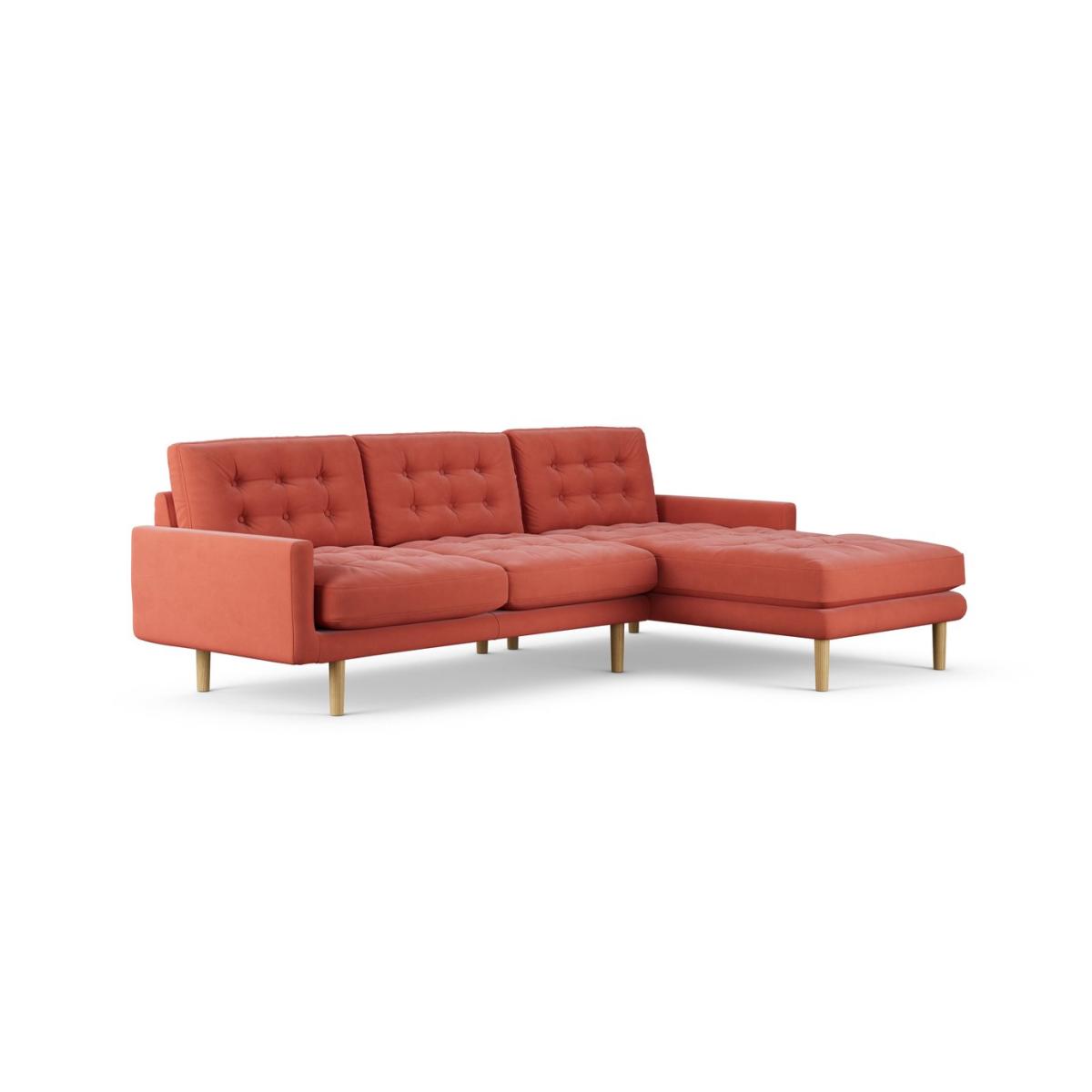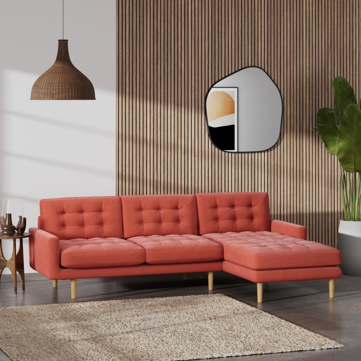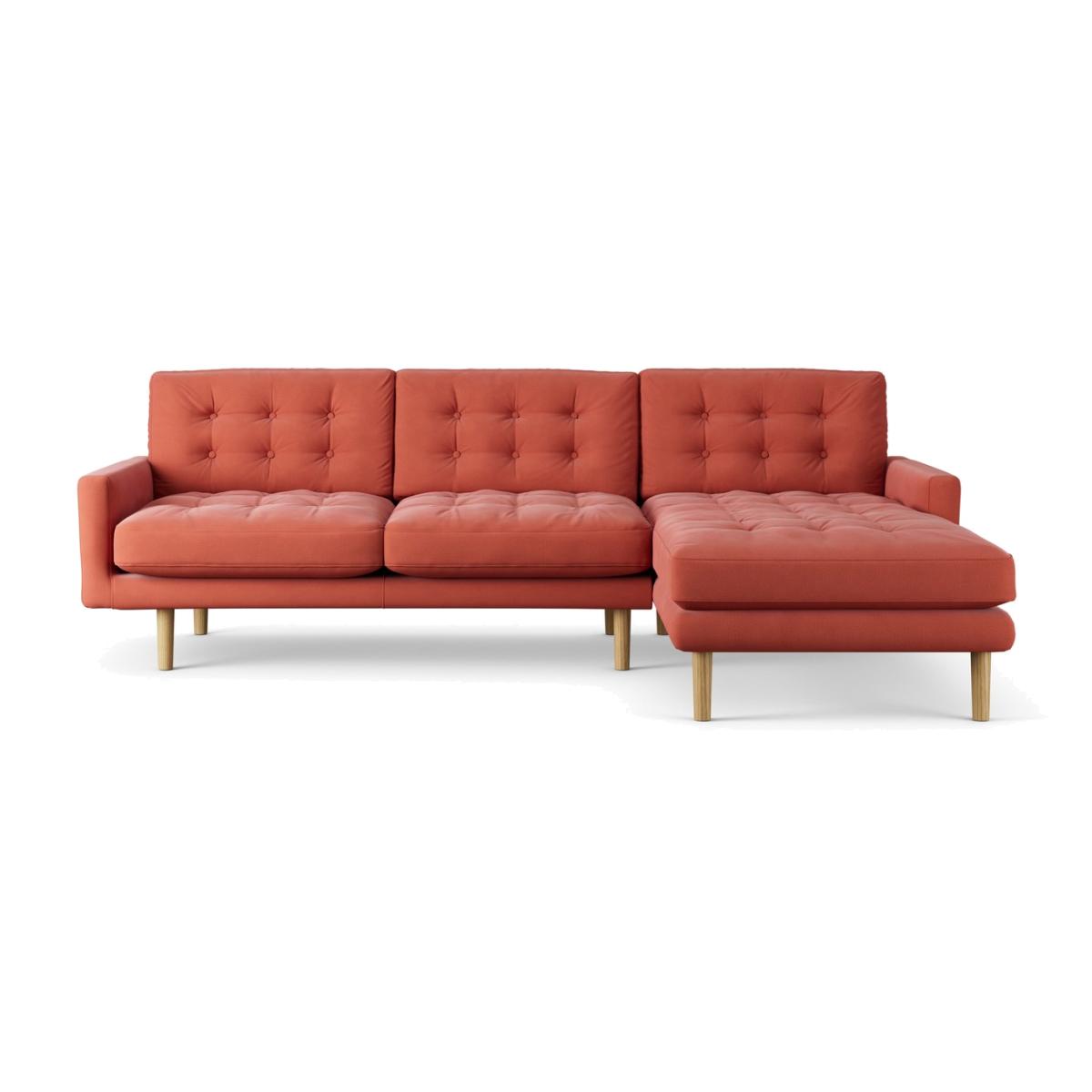 When it's made for you, you know you'll love it. The very popular Fenner 4-seater right hand chaise brings mid-century styling, combining hand buttoned deep sit soft seats and back cushions with a neat box frame shape. Upholstered in a velvety sheen chenille, the Fenner takes on a rich, soft, textured look. This sofa is finished with classically, slender tapered legs. Offering a more supportive seat, Fenner's cushions use high density foam, further wrapped in a thick quilted fibre wrap to create the perfect balance of support, durability and recovery. Handmade to order in the UK. The Fenner uses quality materials and traditional techniques for furniture that's unique to you. Available in a choice of sizes and fabrics including Aquaclean technology protection built into the yarn, which is easy to clean with just water. Part of the Fenner collection. Right hand corner. Material: Made from 100% polyester. Wooden feet. Removable seats with fibre filling. Removable cushion(s) with fibre filling. Free fabric swatch available on this line. Dimensions: Size H85, longer width 249,. Floor to seat height: 47cm. Depth of seat: 59.5cm. Height of seat back: 40cm. Longer seating area width between arms: 226.5cm. Height of arm rest: 53cm. Weight: 66kg. Packaged dimensions: Package size H90, W174, D93cm. Second package size H90, W91, D169cm. General information: FSC certified meaning the materials used for this product are responsibly sourced. Your seat cushions may feel a little firm on delivery, they are brand new and will soften with regular use over the next few months. We do more than deliver your product, we unpack, set it up and take away the packaging. Manufactured in the UK using components sourced globally. Professional clean only. Manufacturer's 15 year frame guarantee.