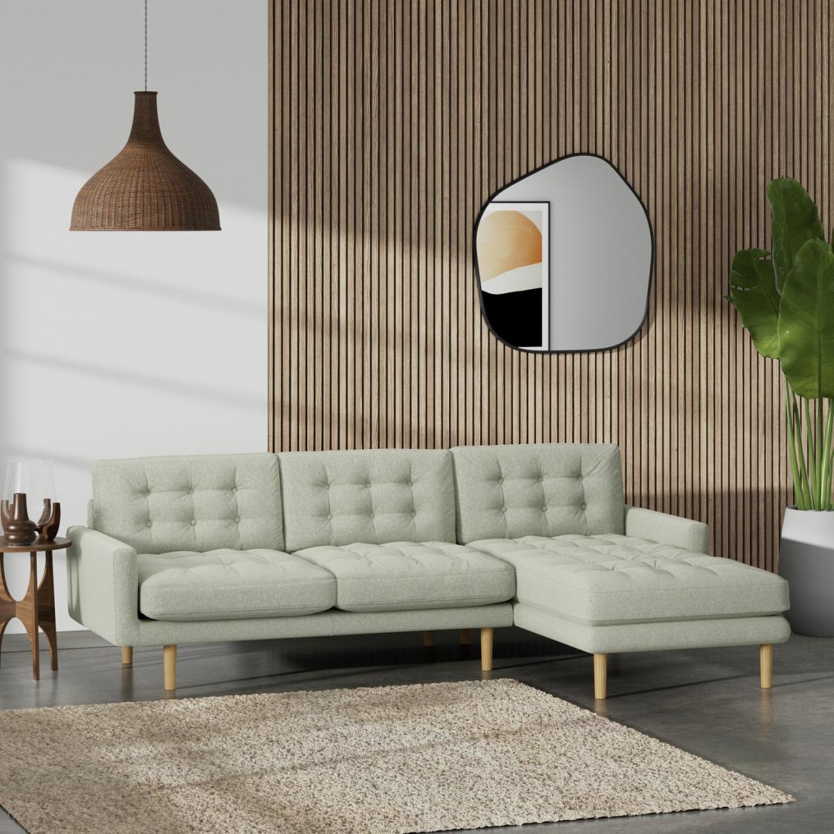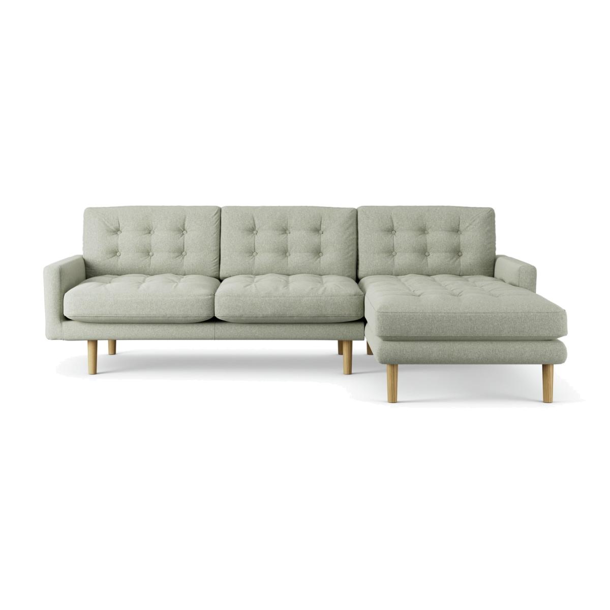 When it's made for you, you know you'll love it. The very popular Fenner 4-seater right hand chaise brings mid-century styling, combining hand buttoned deep sit soft seats and back cushions with a neat box frame shape. Upholstered in a contemporary Flat Weave, the Fenner has a smooth but tonal look. This sofa is finished with classically, slender tapered legs. Offering a more supportive seat, Fenner's cushions use high density foam, further wrapped in a thick quilted fibre wrap to create the perfect balance of support, durability and recovery. Handmade to order in the UK. The Fenner uses quality materials and traditional techniques for furniture that's unique to you. Available in a choice of sizes and fabrics including Aquaclean technology protection built into the yarn, which is easy to clean with just water. Part of the Fenner collection. Right hand corner. Material: Made from 100% polyester. Wooden feet. Removable seats with fibre filling. Removable cushion(s) with fibre filling. Free fabric swatch available on this line. Dimensions: Size H85, longer width 249,. Floor to seat height: 47cm. Depth of seat: 59.5cm. Height of seat back: 40cm. Longer seating area width between arms: 226.5cm. Height of arm rest: 53cm. Weight: 66kg. Packaged dimensions: Package size H90, W174, D93cm. Second package size H90, W91, D169cm. General information: Your seat cushions may feel a little firm on delivery, they are brand new and will soften with regular use over the next few months. We do more than deliver your product, we unpack, set it up and take away the packaging. Manufactured in the UK using components sourced globally. Professional clean only. Manufacturer's 15 year frame guarantee.