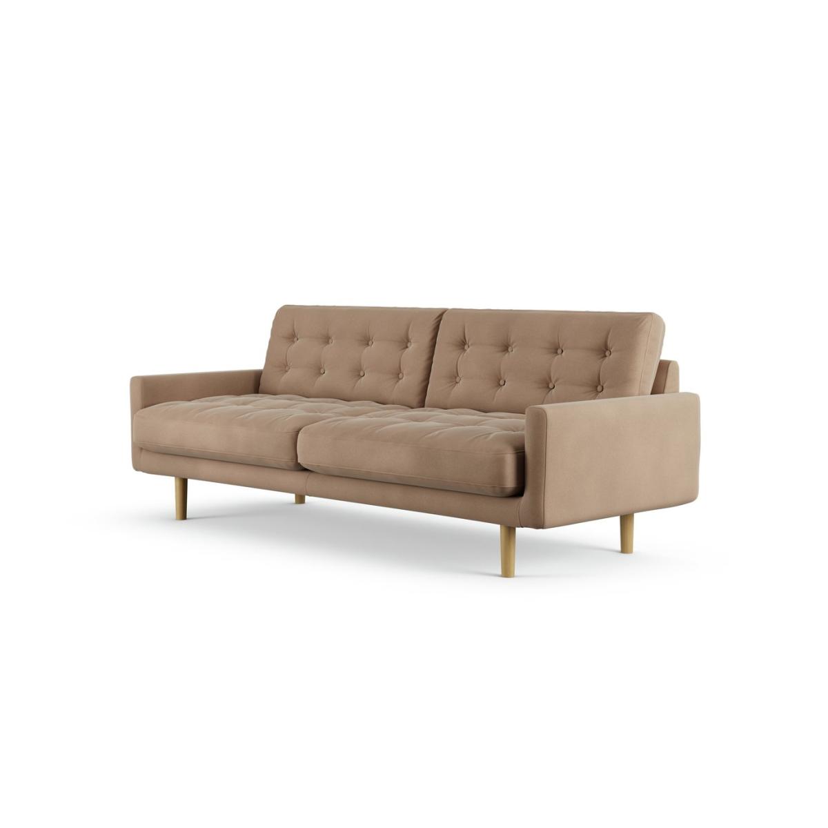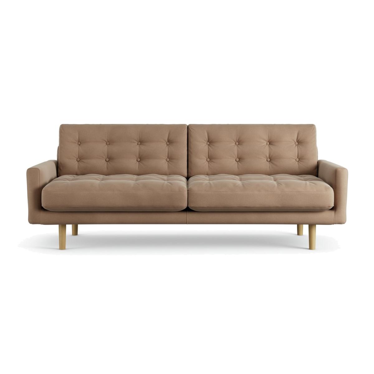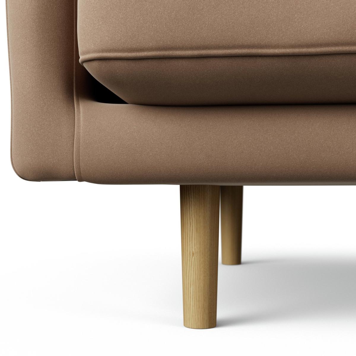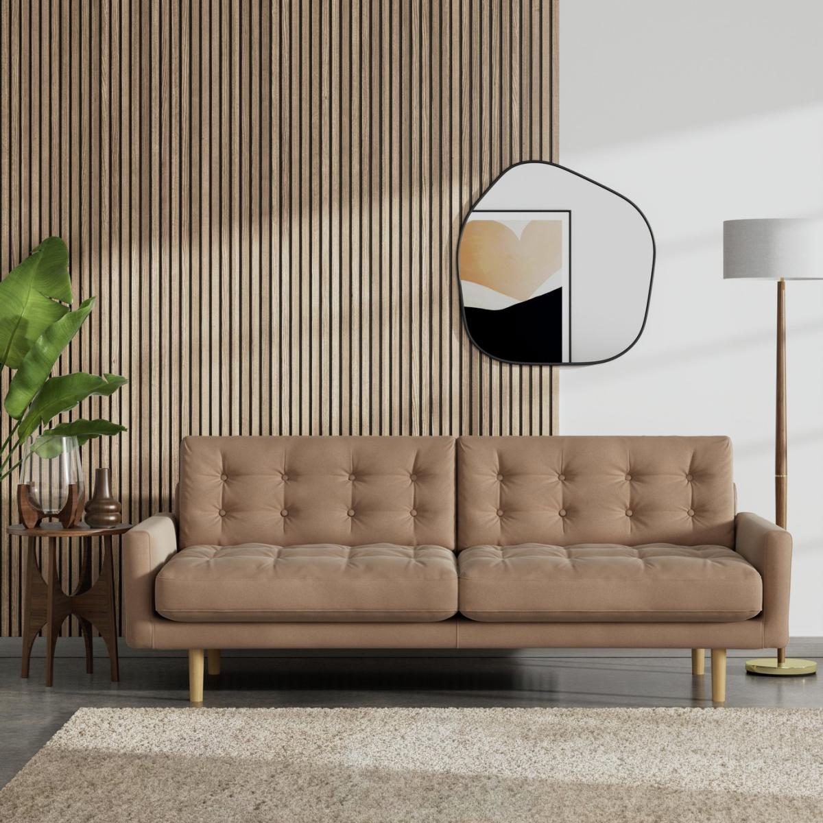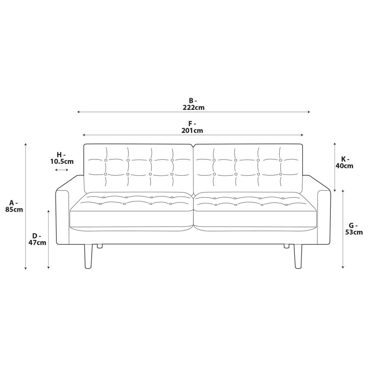 When it's made for you, you know you'll love it. The very popular Fenner 3-seater sofa brings mid-century styling, combining hand buttoned deep sit soft seats and back cushions with a neat box frame shape. Upholstered in rich velvet, it takes on a luxe look. This sofa is finished with classically, slender tapered legs. Offering a more supportive seat, Fenner's cushions use high density foam, further wrapped in a thick quilted fibre wrap to create the perfect balance of support, durability and recovery. Handmade to order in the UK. The Fenner uses quality materials and traditional techniques for furniture that's unique to you. Available in a choice of sizes and fabrics including Aquaclean technology protection built into the yarn, which is easy to clean with just water. Part of the Fenner collection. Material: Made from 100% recycled polyester. Wooden feet - ash. Removable seats with fibre filling. Removable cushion(s) with fibre filling. Free fabric swatch available on this line. Dimensions: Size H85, W222, D87cm. Floor to seat height: 47cm. Depth of seat: 59.5cm. Height of seat back: 40cm. Width of seating area between arms: 201cm. Height of arm rest: 53cm. Weight: 48kg. Packaged dimensions: Package size H90, W227, D93cm. General information: We do more than deliver your product, we unpack, set it up and take away the packaging. Manufactured in the UK using components sourced globally. Professional clean only. Plump cushions regularly to maintain shape. Manufacturer's 15 year frame guarantee.