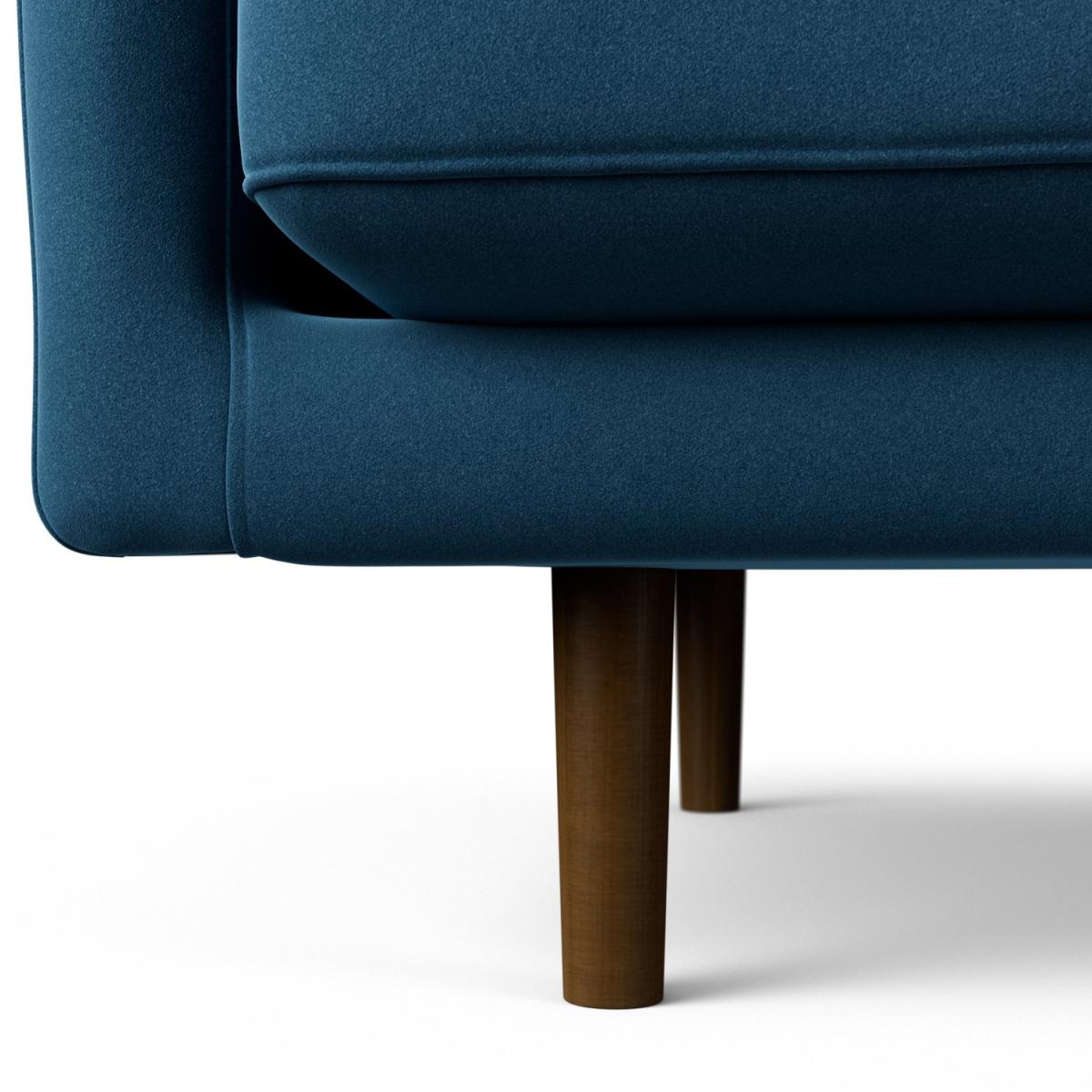 When it's made for you, you know you'll love it. The very popular Fenner armchair brings mid-century styling, combining hand buttoned deep sit soft seats and back cushions with a neat box frame shape. Upholstered in rich velvet, it takes on a luxe look. This sofa is finished with classically, slender tapered legs. Offering a more supportive seat, Fenners cushions use high density foam, further wrapped in a thick quilted fibre wrap to create the perfect balance of support, durability and recovery. Handmade to order in the UK. The Fenner uses quality materials and traditional techniques for furniture thats unique to you. Available in a choice of sizes and fabrics including Aquaclean technology protection built into the yarn, which is easy to clean with just water. Part of the Fenner collection. Material: Made from 100% recycled polyester. Wooden feet. Removable seat with fibre filling. Removable cushion(s) with fibre filling. Dimensions: Size H85, W94, D87cm. Floor to seat height: 47cm. Depth of seat: 59.5cm. Height of seat back: 66cm. Width of seating area between arms: 74cm. Height of arm rest: 53cm. Weight: 19kg. Packaged dimensions: Package size H90, W99, D93cm. General information: FSC certified meaning the materials used for this product are responsibly sourced. We do more than deliver your product, we unpack, set it up and take away the packaging. Manufactured in the UK using components sourced globally. Professional clean only. Plump cushions regularly to maintain shape. Manufacturer's 15 year frame guarantee.