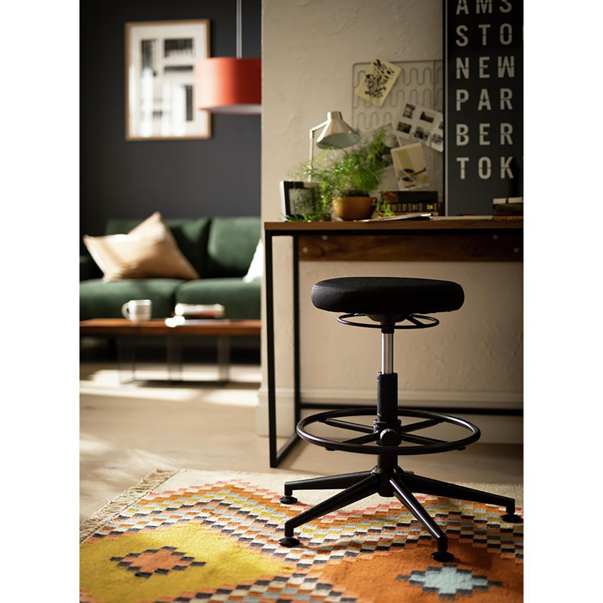 A cool stool. With its smart dark looks this industrial style stool does the business. Spending hours at your desk? The ergonomic design is good for your back. You can adjust the height, so get yourself comfy. Perch on the cushioned black fabric seat and pop your feet on the handsome black metal support. Excellent. You're ready to go to work.