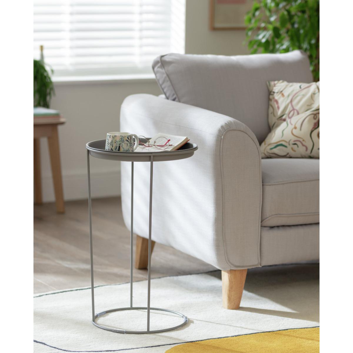 Unique and chic with a practical heart. This C-shaped side table is perfect for modern interiors. In a cool grey tone and with an industrial look, the Habitat Finley is full of character. The tray-like surface sits on top of a streamlined base and gives you the perfect place to pop your drinks and nibbles of an evening. Better than that, the table top tray lifts off for passing snacks around and easy cleaning afterwards - the epitome of stylish functionality. What a sleek chap.