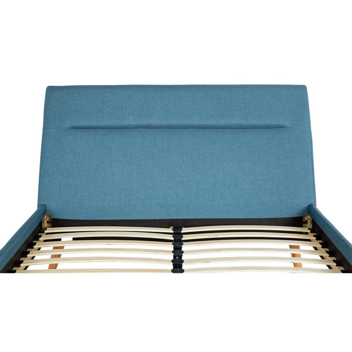 I love this bed frame for its bold teal colour, which can add a vibrant focal point to both contemporary and eclectic interiors. It works particularly well in minimalist bedrooms where the pop of colour can be the statement feature or in mid-century inspired spaces, pairing nicely with natural woods and neutral tones. Practical styling tips include keeping bedding understated to highlight the bed’s colour or layering with textured textiles for added warmth. Its clean lines and tapered legs lend themselves well to a sleek, modern look, but it can also be softened with cosy throws and decorative cushions. This piece is versatile enough to work in a variety of schemes, providing both style and practicality.