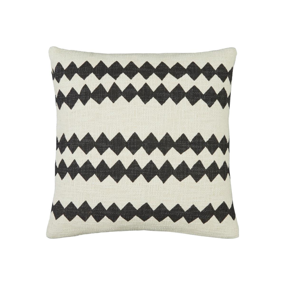 Simple and understated, the Fisola black zig zag printed 45 x 45cm cushion will give instant impact to any room in the house. Designed in our in-house studio and made in India from 100% cotton, this cushion has a graphic black zig zag print against a neutral slub cotton background. It comes with a plump cushion pad for extra cosiness. Add Fisola to sofas, armchairs and beds for a modern twist and pair together with the Fisola clay brown cushion. Cover 100% cotton. Filling 100% polyester. Size L45, W45cm.