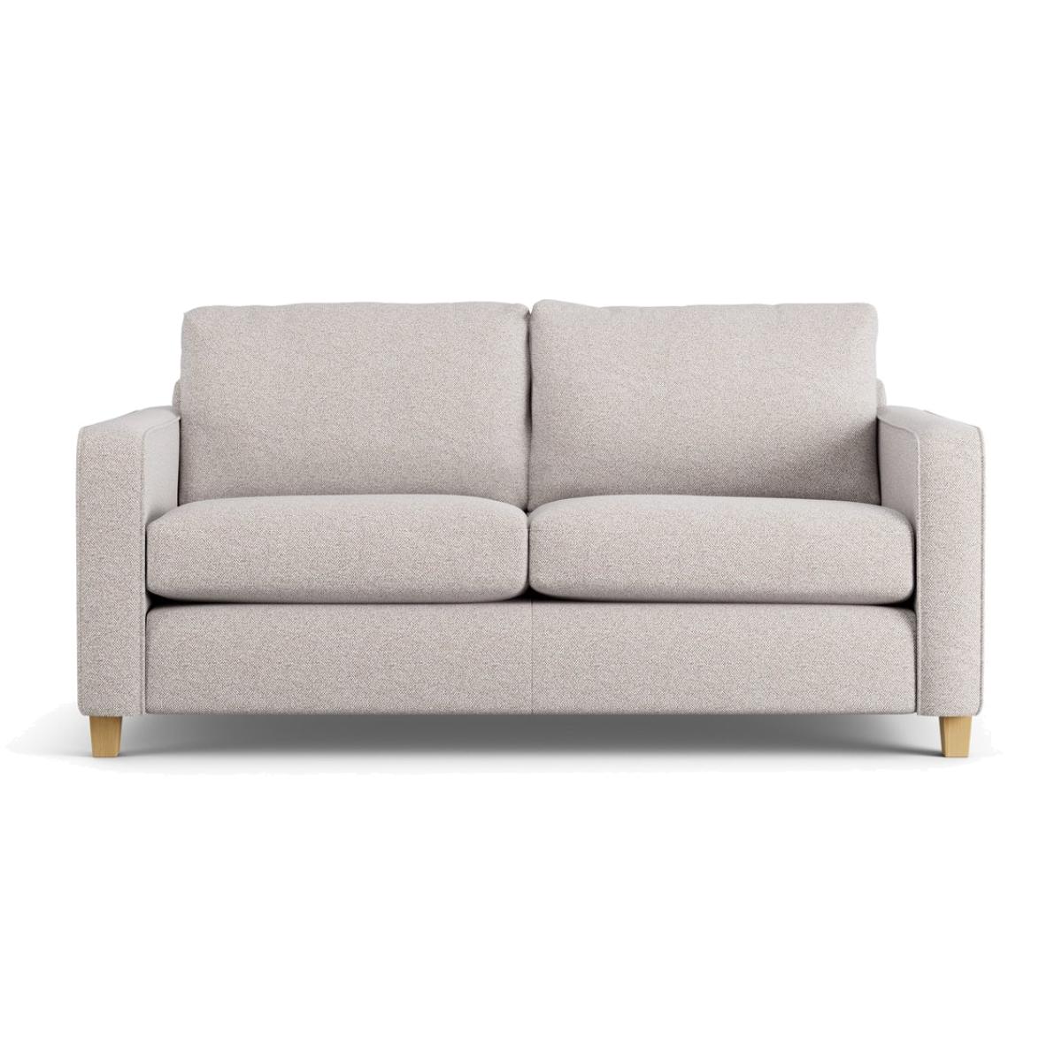 When it's made for you, you know you'll love it. More seat, less arm, more style, less fuss. The clean lines of the Flint 2-seater sofa are neat and compact. The supportive, firm seats and plump back cushions are made for relaxing. Upholstered in a contemporary Textured Weave, it has a smooth but tonal look. With piping detailing for a tailored finish. And it's the perfect occasional guest bed. With a three-fold mechanism that turns it into a small double in minutes. Part of the Flint collection. Material: Made from 100% polyester. Wooden feet. Removable seats with foam fibre wrap filling. Removable cushion(s) with foam fibre wrap filling. Free fabric swatch available on this line. Dimensions: Size H88, W176, D90cm (Depth as bed 183cm). Size of sleeping area W133, L183cm. Mattress depth: 6cm. Floor to seat height: 46cm. Depth of seat: 58cm. Height of seat back: 47cm. Width of seating area between arms: 150cm. Height of arm rest: 58cm. Weight: 58kg. Packaged dimensions: Package size H64, W181, D95cm. General information: FSC certified meaning the materials used for this product are responsibly sourced. Your seat cushions may feel a little firm on delivery, they are brand new and will soften with regular use over the next few months. We do more than deliver your product, we unpack, set it up and take away the packaging. Manufactured in the UK using components sourced globally. Professional clean only. Suitable for occasional use. Plump cushions regularly to maintain shape. Manufacturer's 2 year frame guarantee.