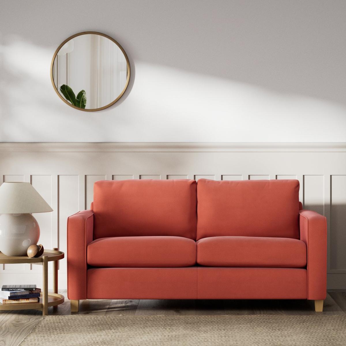 When it's made for you, you know you'll love it. More seat, less arm, more style, less fuss. The clean lines of the Flint 2-seater sofa are neat and compact. The supportive, firm seats and plump back cushions are made for relaxing. Upholstered in a contemporary Chenille, it has a smooth but tonal look. With piping detailing for a tailored finish. And it's the perfect occasional guest bed. With a three-fold mechanism that turns it into a small double in minutes. Part of the Flint collection. Material: Made from 100% polyester. Wooden feet. Removable seats with foam fibre wrap filling. Removable cushion(s) with foam fibre wrap filling. Free fabric swatch available on this line. Dimensions: Size H88, W176, D90cm (Depth as bed 183cm). Size of sleeping area W133, L183cm. Mattress depth: 6cm. Floor to seat height: 46cm. Depth of seat: 58cm. Height of seat back: 47cm. Width of seating area between arms: 150cm. Height of arm rest: 58cm. Weight: 58kg. Packaged dimensions: Package size H64, W181, D95cm. General information: FSC certified meaning the materials used for this product are responsibly sourced. Your seat cushions may feel a little firm on delivery, they are brand new and will soften with regular use over the next few months. We do more than deliver your product, we unpack, set it up and take away the packaging. Manufactured in the UK using components sourced globally. Professional clean only. Suitable for occasional use. Plump cushions regularly to maintain shape. Manufacturer's 2 year frame guarantee.