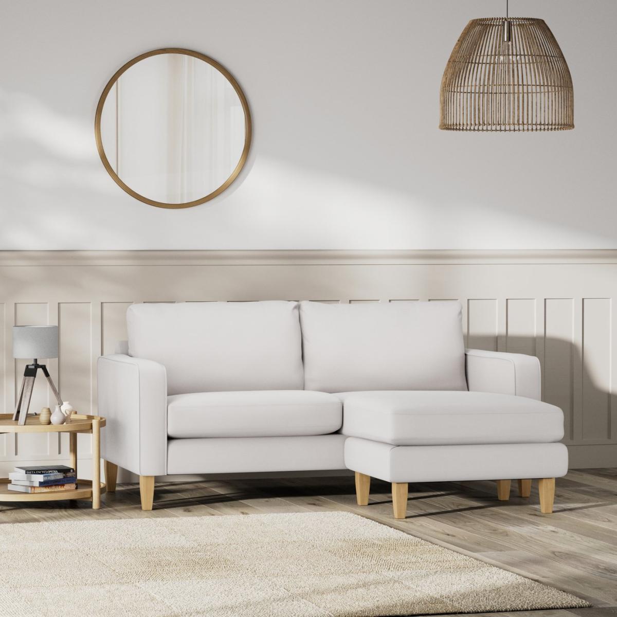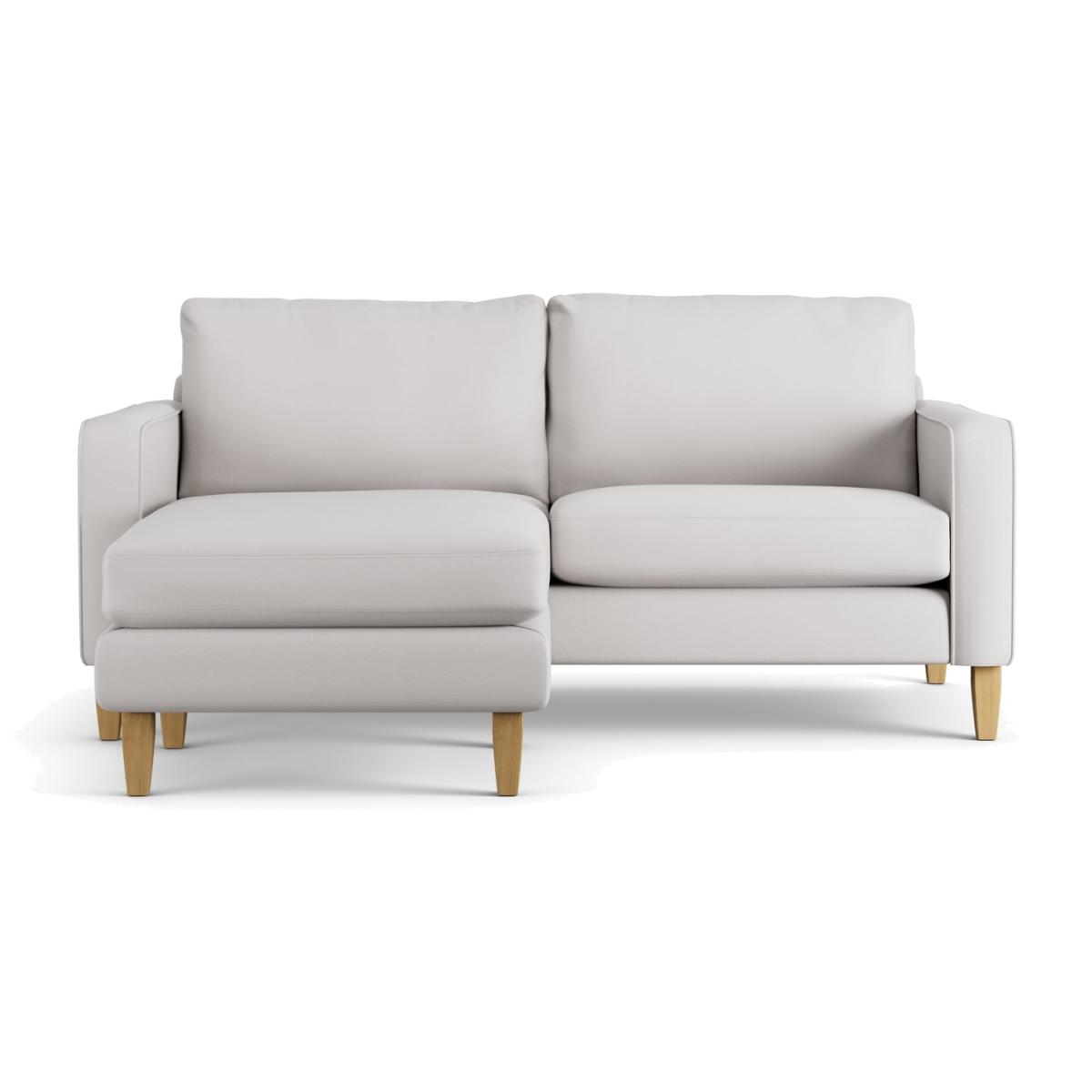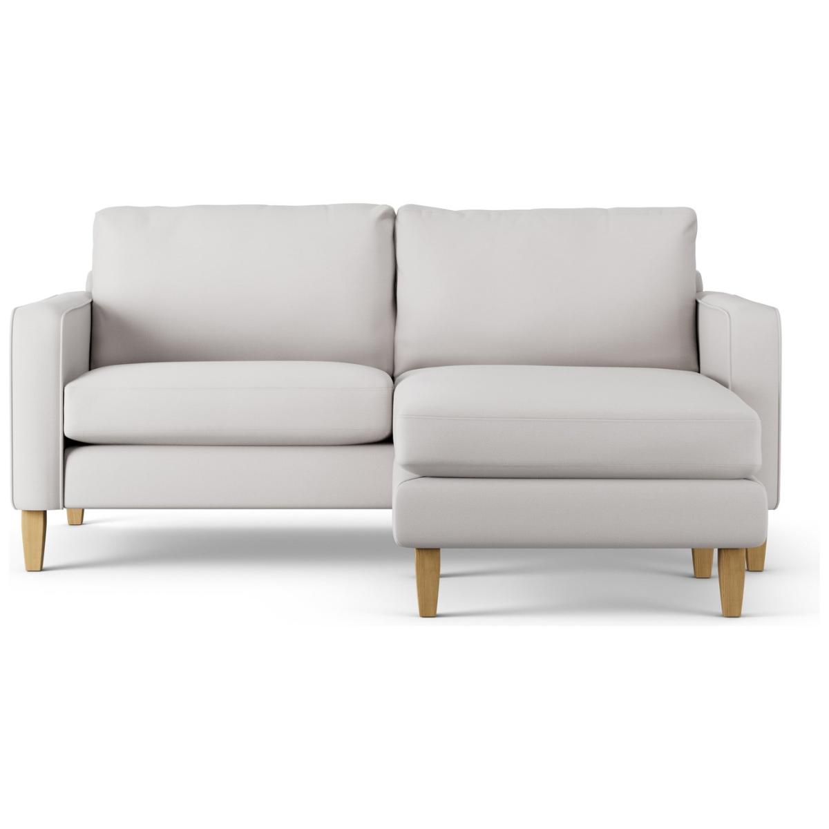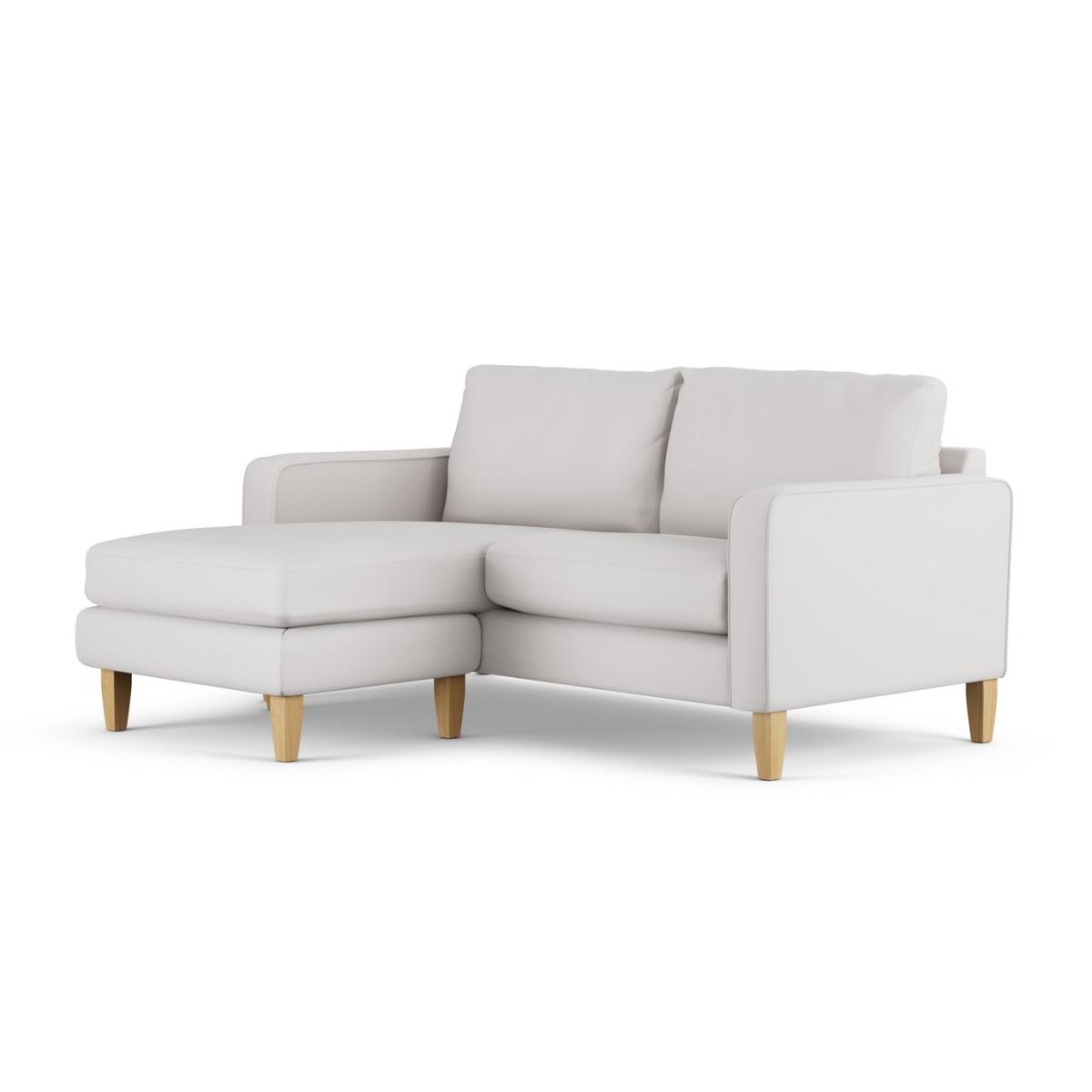 When it's made for you, you know you'll love it. More seat, less arm, more style, less fuss. The clean lines of the Flint 3-seater chaise are neat and compact. The supportive, firm seats and plump back cushions are made for relaxing. Upholstered in a contemporary Aquaclean Chenille, the Flint has a smooth but tonal look. With piping detailing for a tailored finish. Flint comes with a detached footstool which you can place either of the sofa to create a reversible chaise. Offering a more supportive seat, the Flint's cushions use high density foam core wrapped in fibre wadding to create the perfect balance of support, durability and recovery. Hand made to order in the UK, the Flint uses quality materials and traditional techniques for furniture that's unique to you. Available in a choice of sizes and fabrics including Aquaclean technology protection built into the yarn, which is easy to clean with just water. Part of the Flint collection. Reversible corner. Material: Made from 100% polyester. Wooden feet. Removable seats with foam fibre wrap filling. Removable cushion(s) with foam fibre wrap filling. Dimensions: Size H89, longer width 191,. Floor to seat height: 49cm. Depth of seat: 58cm. Height of seat back: 47cm. Longer seating area width between arms: 166cm. Height of arm rest: 65cm. Weight: 60kg. Packaged dimensions: Package size H94, W196, D95cm. General information: FSC certified meaning the materials used for this product are responsibly sourced. Your seat cushions may feel a little firm on delivery, they are brand new and will soften with regular use over the next few months. We do more than deliver your product, we unpack, set it up and take away the packaging. Manufactured in the UK using components sourced globally. Professional clean only. Plump cushions regularly to maintain shape. Manufacturer's 15 year frame guarantee.